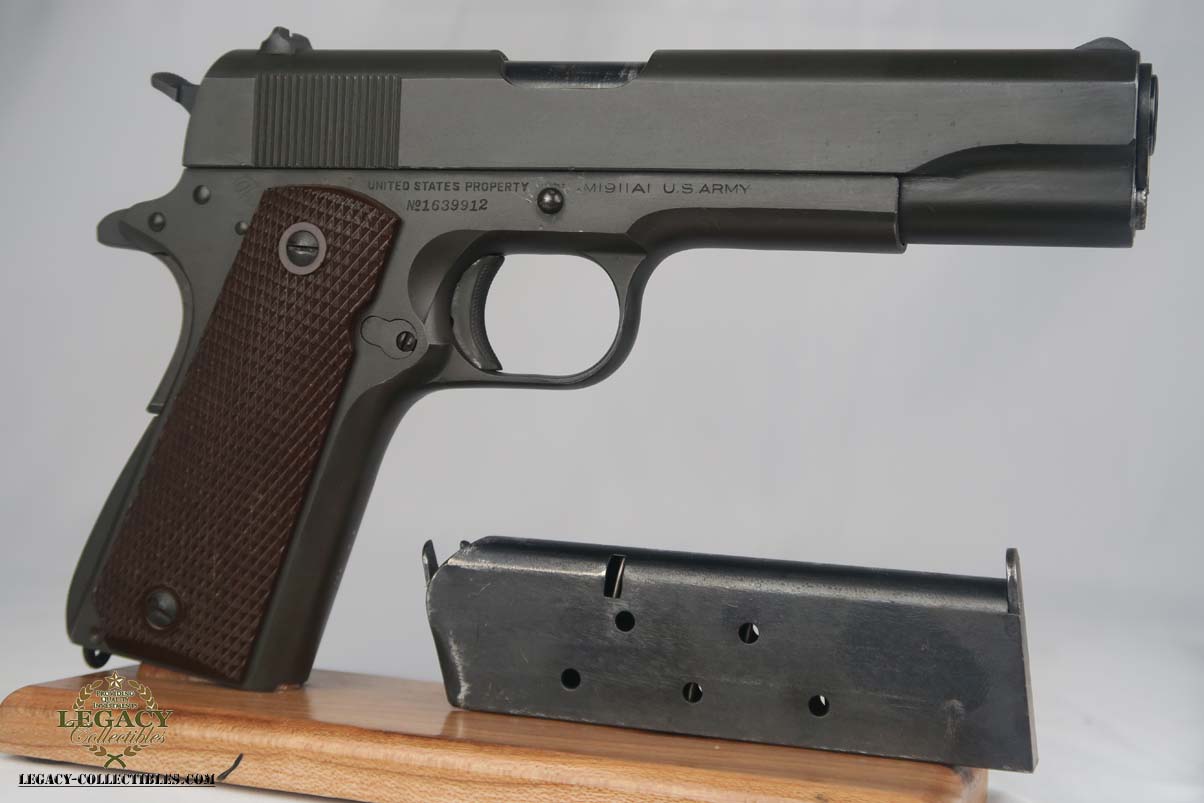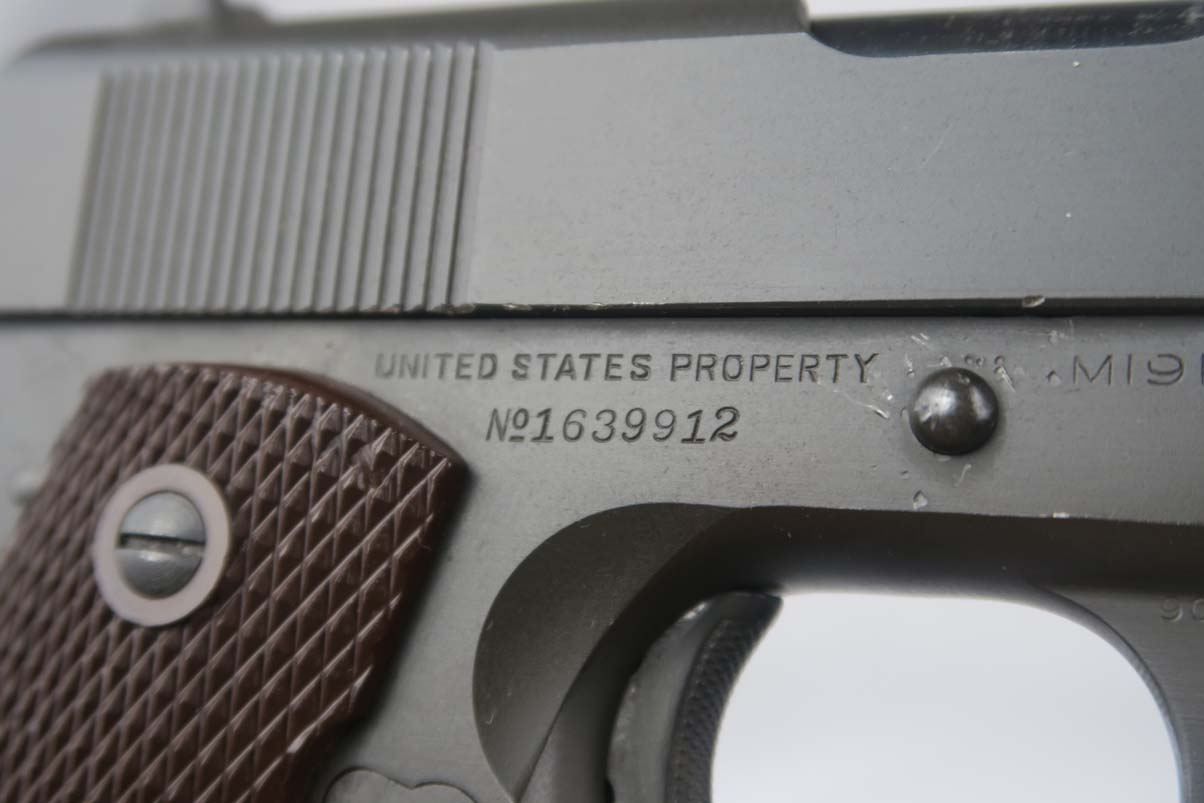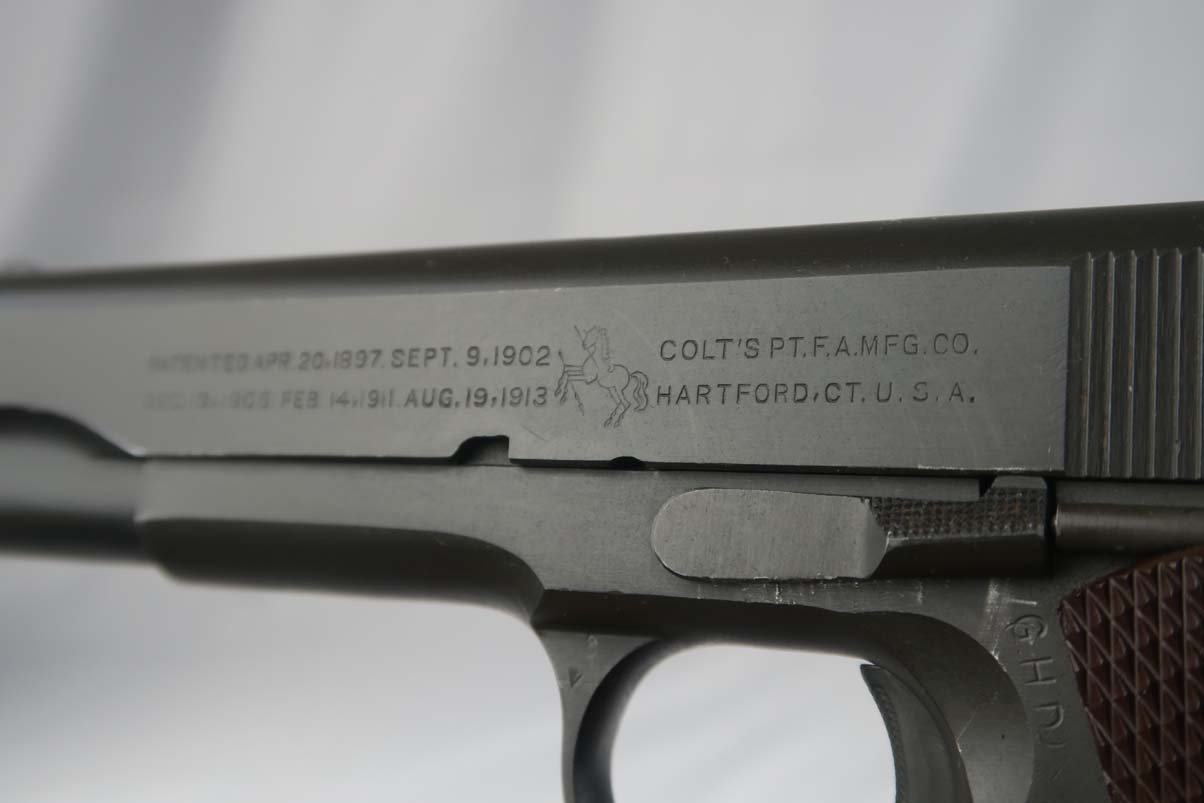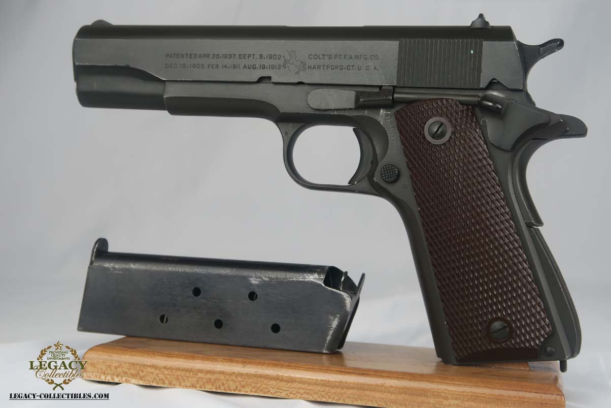3/8/17 – This is a WWII era Colt M1911A1, dated to a 1944 year of manufacture by serial.  If it weren’t for the couple of dings on the front strap, I would be calling this a mint-condition pistol – it’s gorgeous.  It is properly proofed, including the GHD inspectors mark, P on frame and slide, and crossed cannons cartouche on right side of the frame.  The barrel is also correctly marked for this date (P, Colt .45 auto).  ‘L’ marked magazine and minty grips.  The bore is in very good shape, with just a little frosting but would shoot fine.  Overall, an excellent WWII example for a Colt 1911.