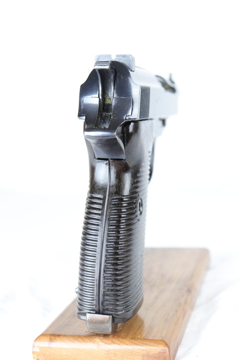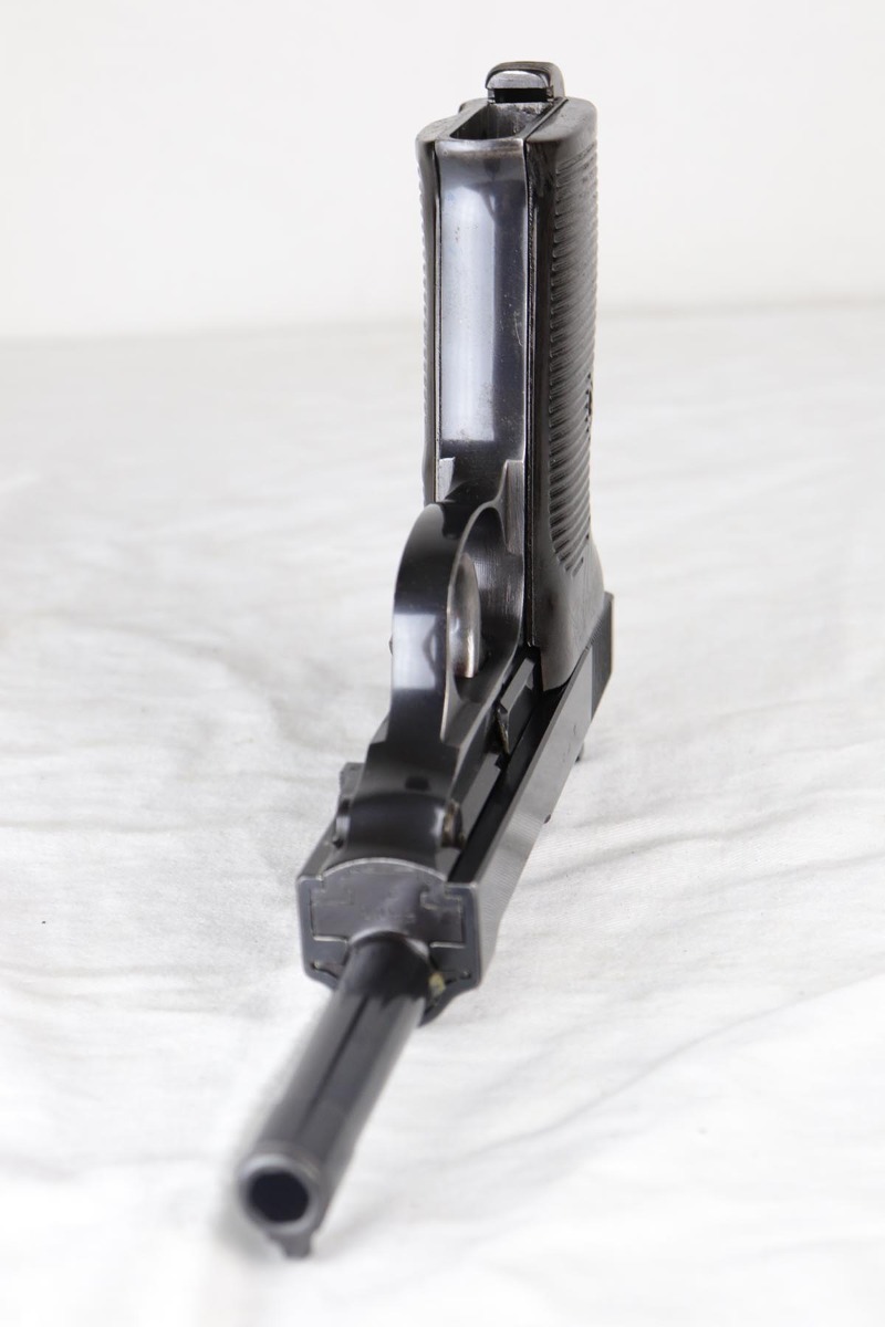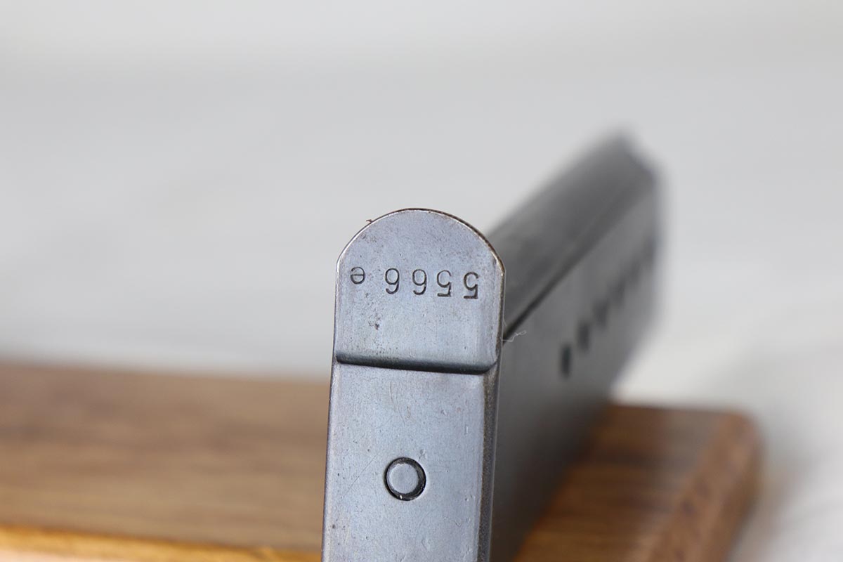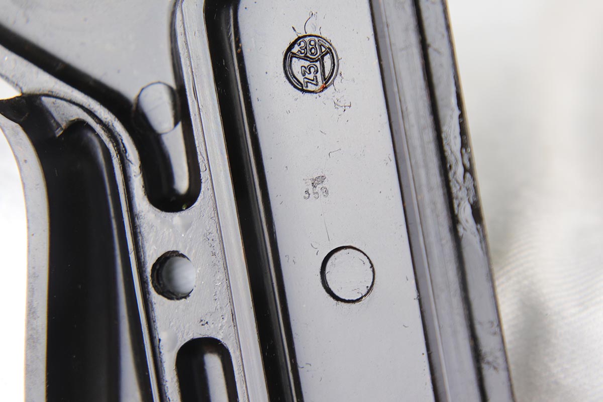 3/29/18 – This is an absolutely gorgeous example of an early high-polish variant of an ‘ac 41’ coded Walther P.38, that is all matching including the magazine. The gun retains 98% of its original high luster blue with excellent bore and grips. There is just the slightest amount of high edge holster wear. All the markings and waffenamts are crisp. Decocker works perfectly. Matched locking block as well. Sear and the locking block are correctly “in the white”.