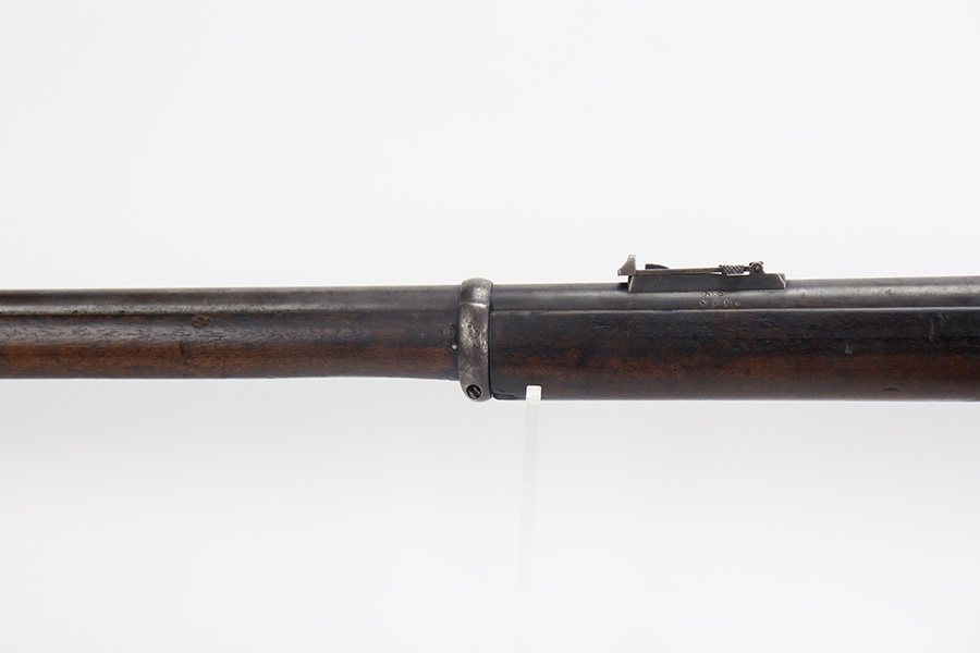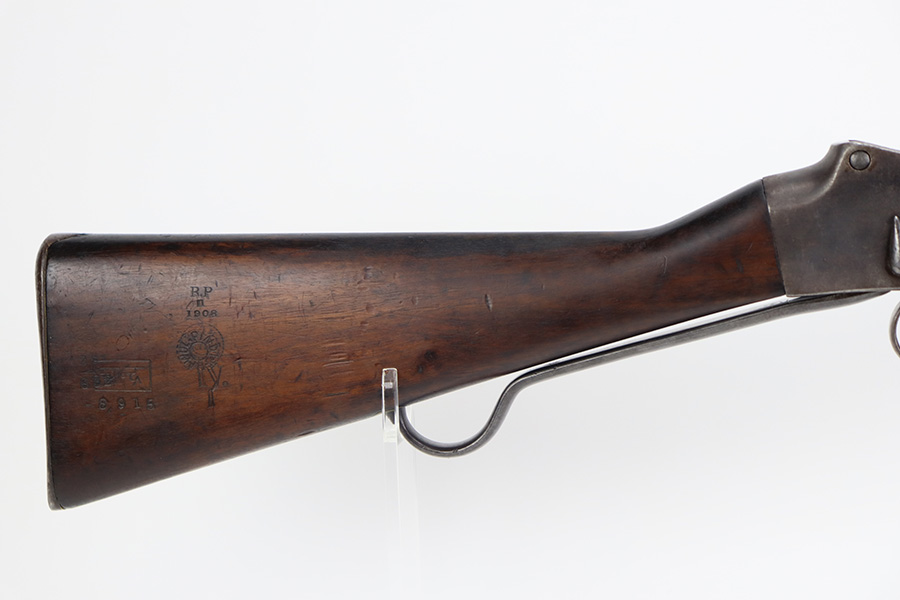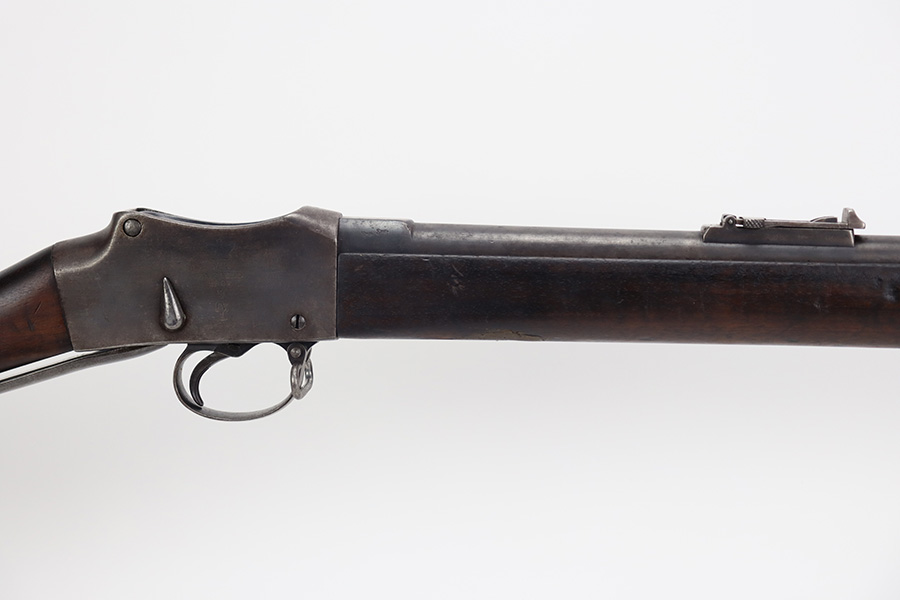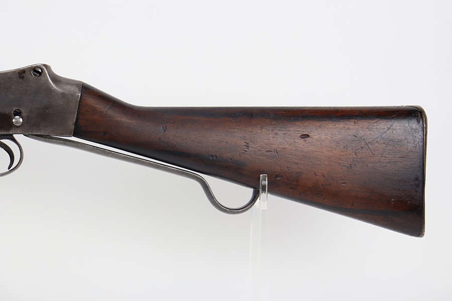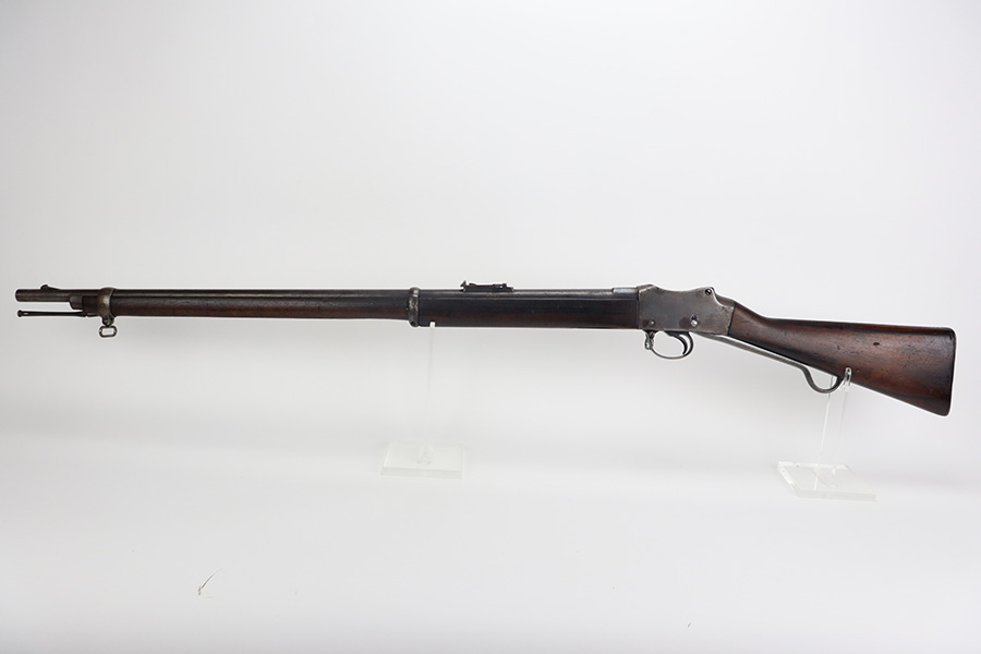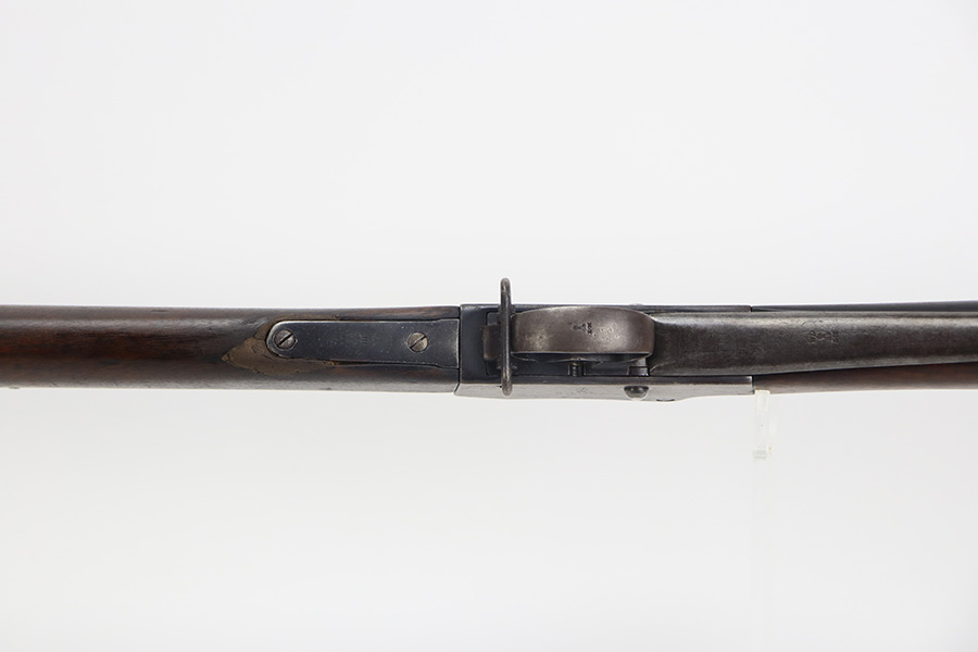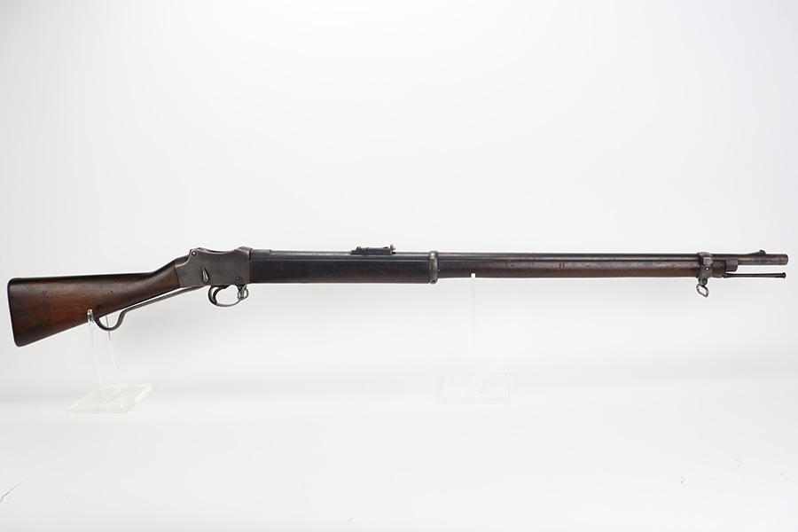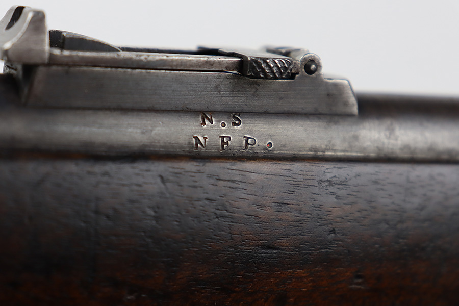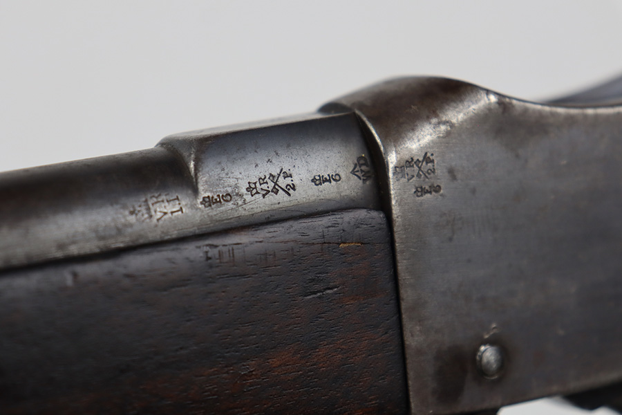 10/03/23 – Up for sale is a Nepalese-issued Martini-Henry Mk IV chambered in .577/450. These rifles were transferred from British Royal Arsenals to the Nepalese and then later imported into the US. The rifle is in good shape for its age but has lost the majority of its original metal finish. The loading ramp maintains its original dark finish. The rest of the metal is covered in a fine patina with no signs of active rust or corrosion. The right side of the receiver is marked with a crown, “Enfield 1887, IV. 1.” The rifle has British proof stamps marked throughout, and below the rear sight is stamped N.S. NEP to signify it was transferred to the Nepalese. The bore looks great for its age and still has sharp rifling but is frosted over and on the darker side. The wood furniture is in great shape with the only blemish being a repair on the fore-end where it meets the receiver on the bottom. There are unit information stamped on the right side of the stock which gives the history of this rifle.