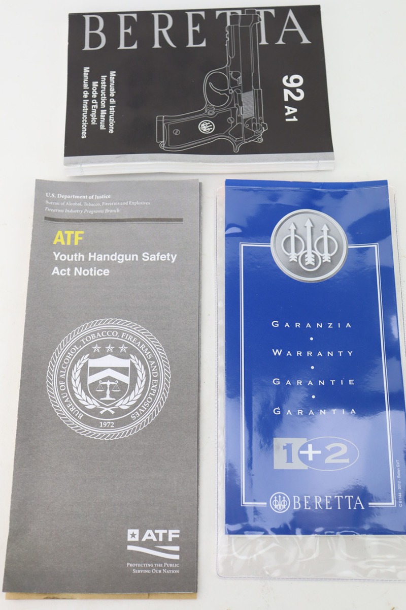 02/12/2024 – Up for sale is a very nice Beretta 92A1 in like-new condition. The finish on the handgun is excellent with very minimal wear. The gun comes with 3 17 round magazines and the original hard case. The bore is bright but there is debris and buildup from being fired.