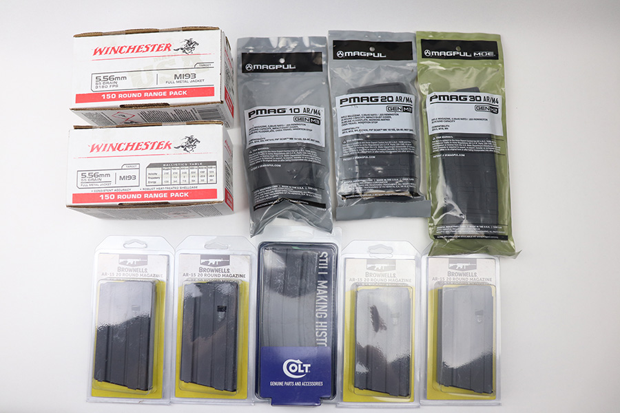 5/18/21 – This is a NIB Colt M4 Carbine in unfired condition. The listing includes the original manual, gun lock, Colt 30 round magazine, 3 Magpul spare magazines (10rd, 20rd & 30rd), 5 Brownell magazines, and 300 rounds of Winchester FMJ 5.56 ammunition. The gun is model number LE6920 and has a 16 inch chrome lined barrel. The original box is present and has the serial of the rifle on multiple labels.