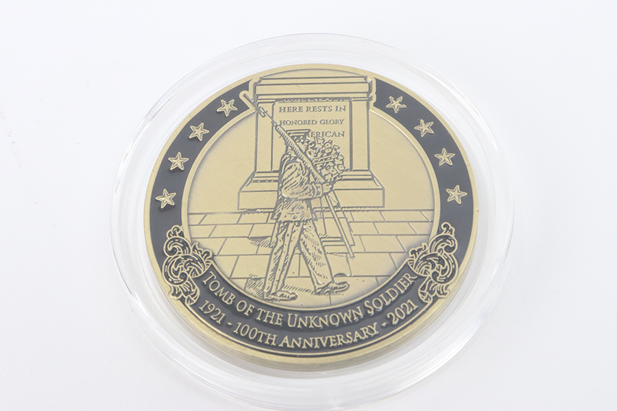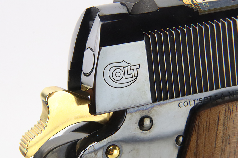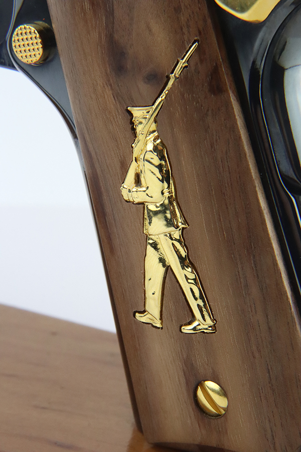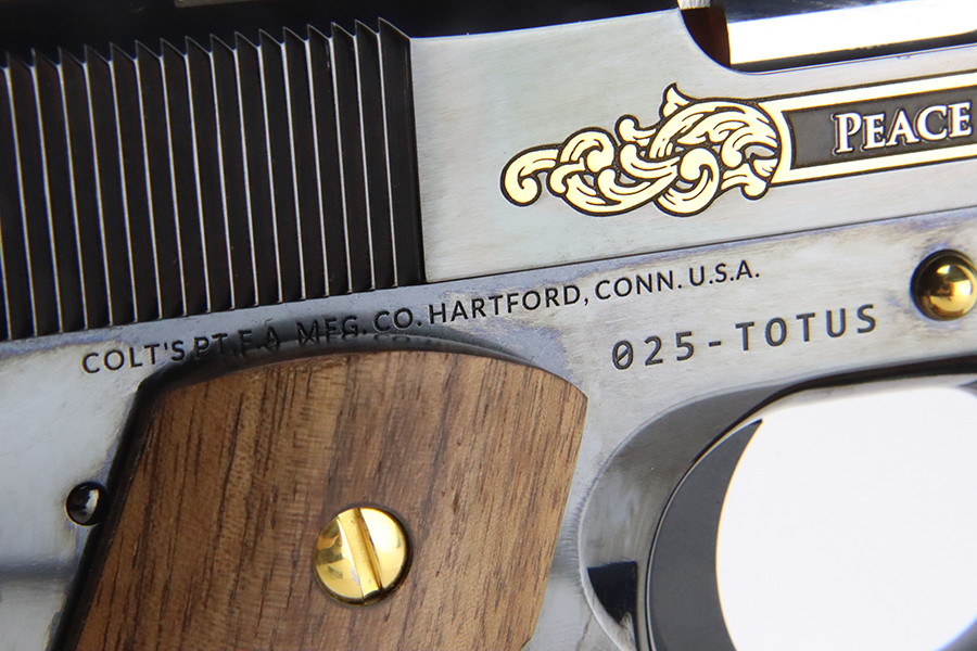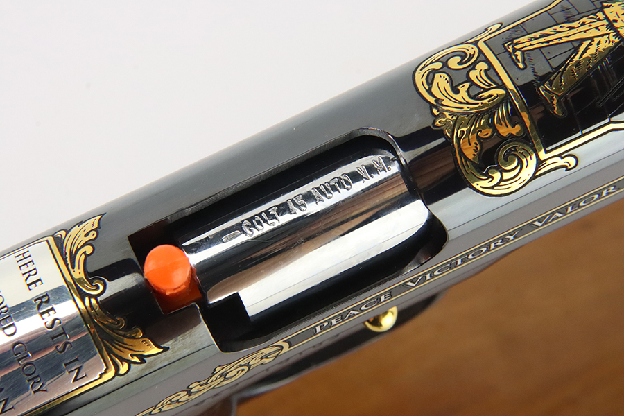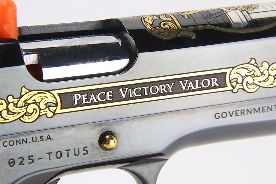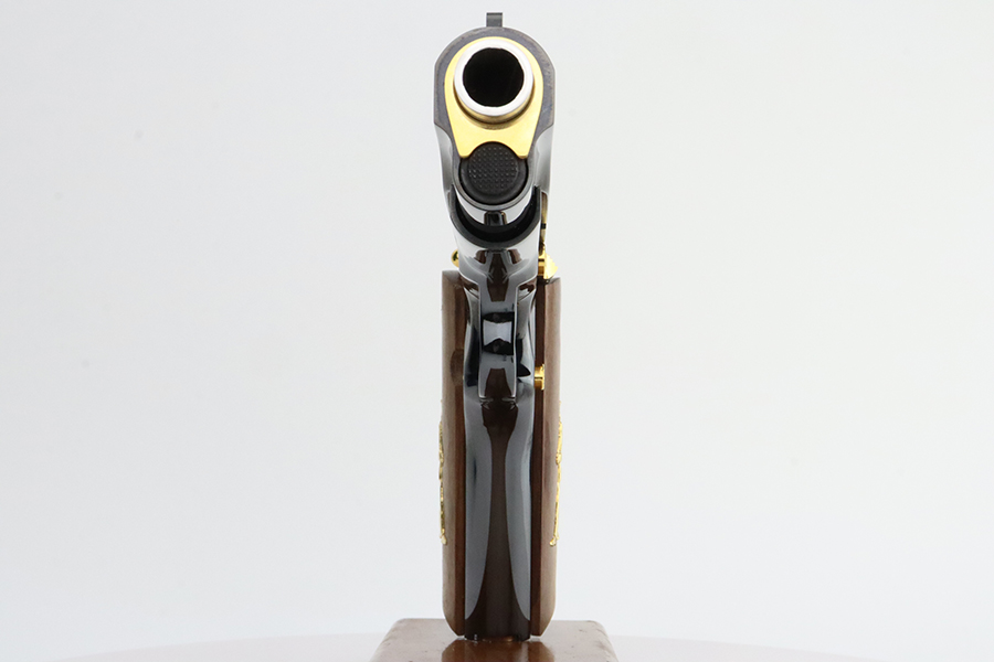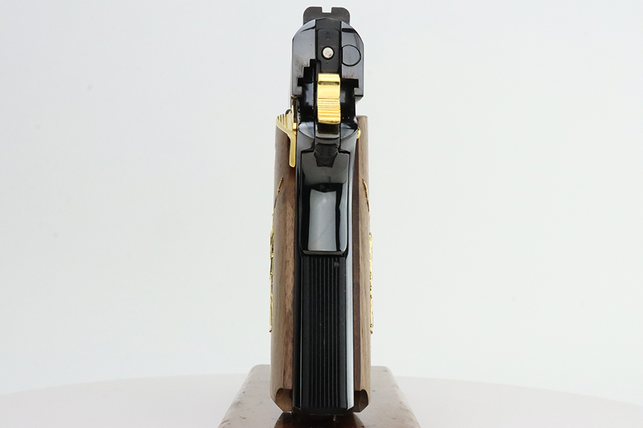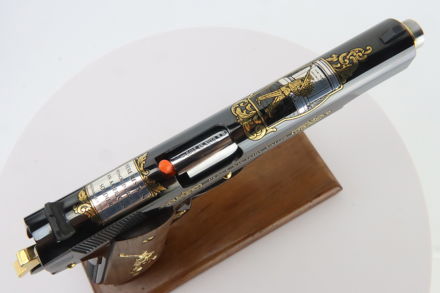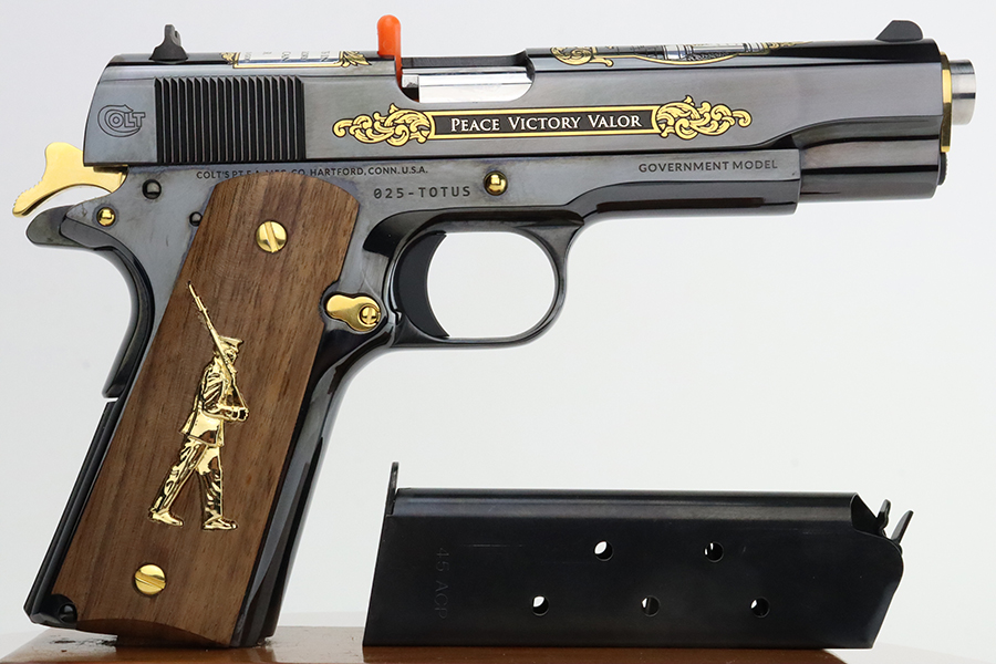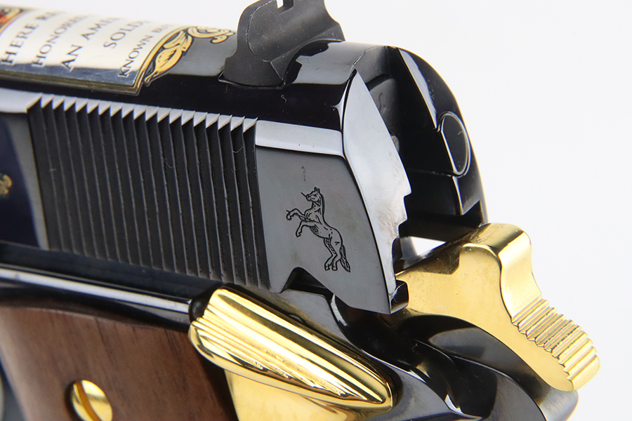 2/9/24 – This is a NIB Colt Government Model 1911 “Tomb of the Unknown Soldier”, the 25th made out of only 500! Our consignor bought this new and never fired it, in fact the slide has never even been racked. Comes with all the extras from the factory, including the matching serialized box, matching gold plated coin inside plastic container, spare wood checkered grips, one 8 round magazine, owner’s manual, lock, and oil.