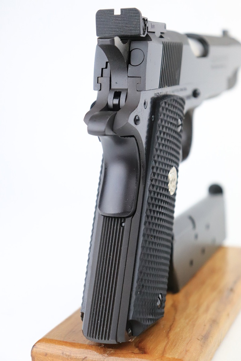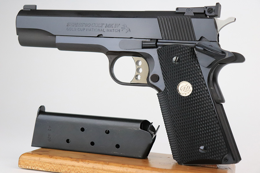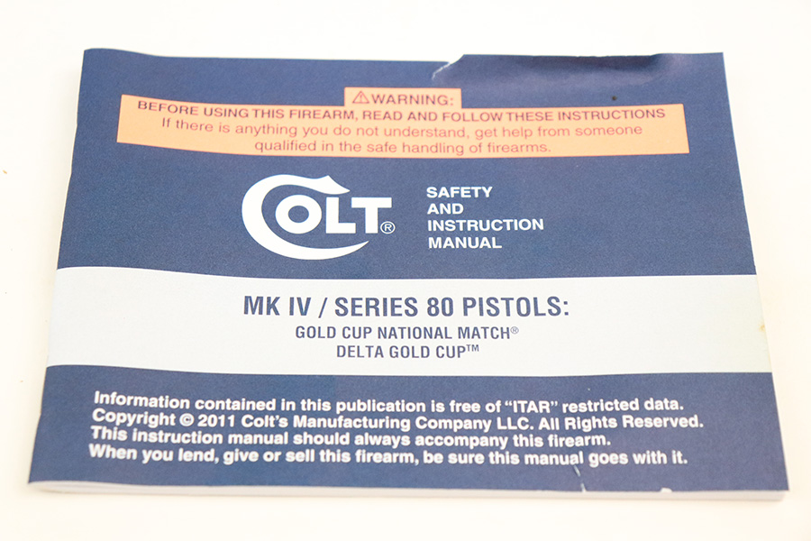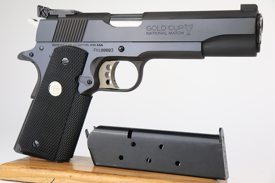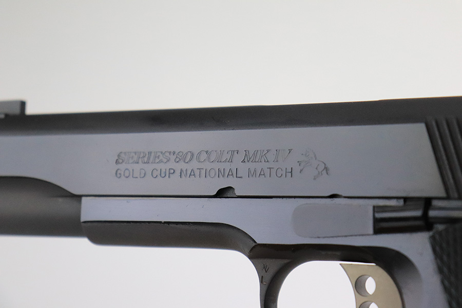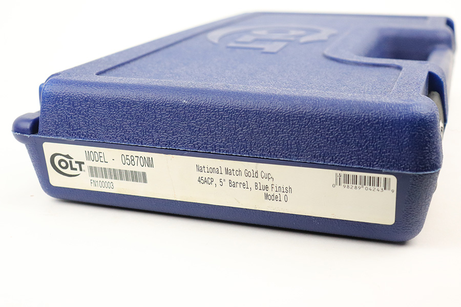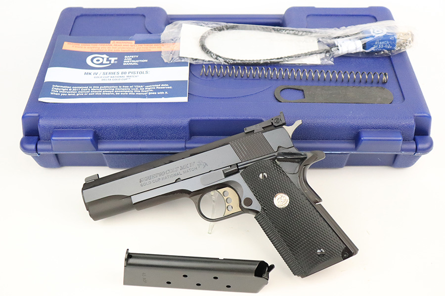 6/9/22 – This is a NIB Colt Series 80 MK IV Gold Cup National Match from 2011. Our consignor bought this one factory new and never fired it. It features an adjustable wide trigger, NM barrel, adjustable target sights and checkered, wrap-around grips. The box retains the original manual and basic paperwork. Can’t be upgraded. FFL required.