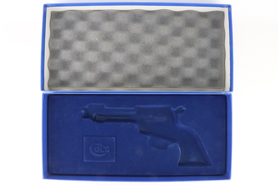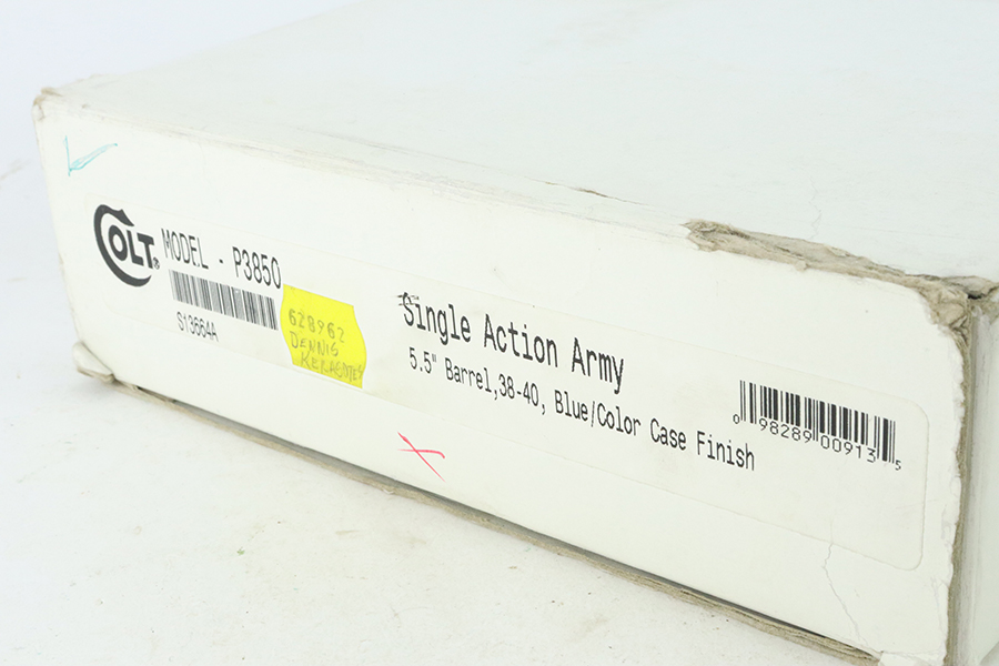 05/23/2024 – For sale is a new in box Colt Single Action Army “Late 3rd Generation” made in 1996 chambered in .38-40. This revolver is in excellent condition with gorgeous polished bluing on the trigger guard, cylinder, and barrel. The frame and hammer have an amazing case hardened finish applied. The plastic grips are clean and in great shape. The bore is mirror bright and the barrel measures 5.5″. This revolver comes in its original hard case and outer sleeve.