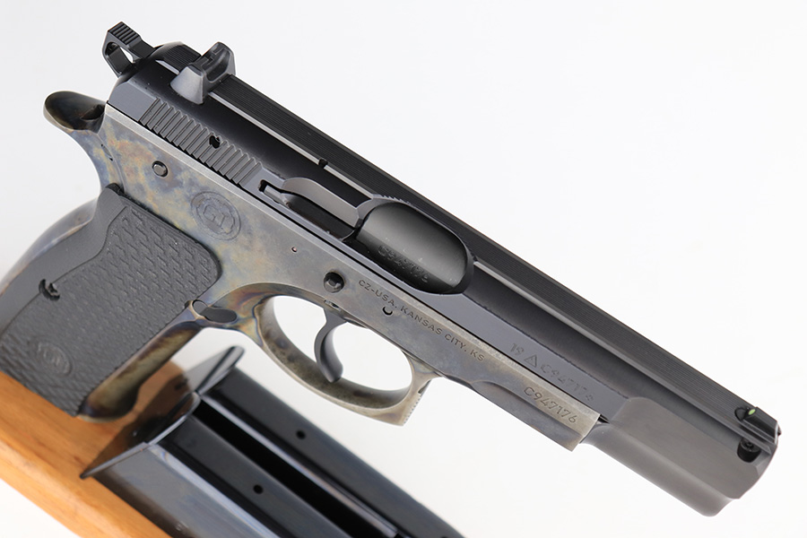 3/18/24 – This is a new-in-box example of a beautiful CZ 75 B, made in collaboration with Guncrafter Industries in 2019. It has a gorgeous case-colored frame and comes with its original matching-numbered hard case, owners manual, and two magazines. The gun is unfired with no signs of wear or use. Factory-new bore.