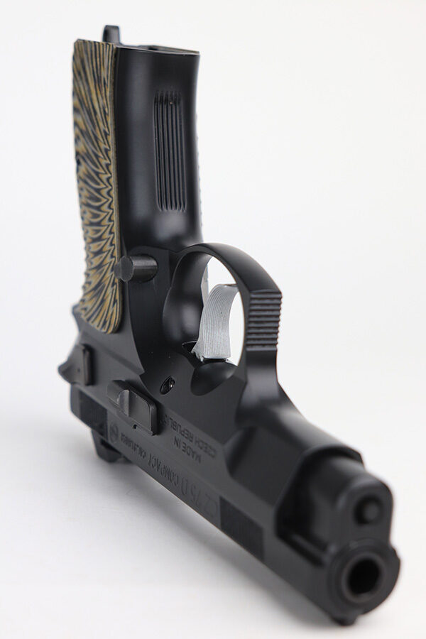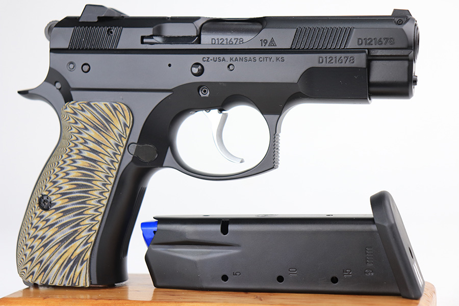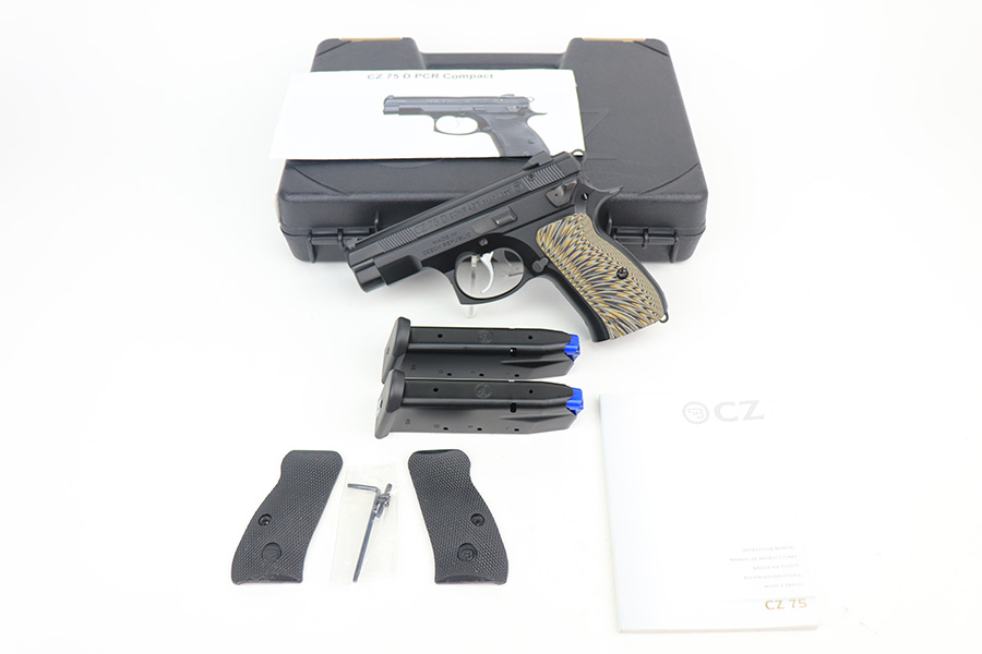 12/28/21 – This is a new-in-box example of a CZ Model 75D PCR Compact Semi Auto Pistol, chambered in 9mm. It comes with the original matching-numbered factory hard case, owners manual, two 15-rd magazines, a set of really nice aftermarket Coolhand Grips (in Coyote color), and the original set of black plastic grips. The gun is in like-new condition with no signs of wear. Bore is mint. From the CZ website: “The PCR name stands for ‘Police Czech Republic,’ the group for whom the model was originally designed. Nearly identical in size to the CZ 75 Compact, it weighs in at a full 1/4 pound lighter owing to its forged aluminum frame, making it more comfortable for everyday carry. Very similar to the P-01, the PCR uses the same alloy frame minus the light rail, making it even more concealable. Equipped with a decocking lever, the PCR is designed to be decocked before holstering. After decocking, the trigger pull is much like that of a double action revolver. While there is no need to flip a safety lever off, the relatively longer and heavier trigger pull for the first round requires the conscious decision to pull the trigger before firing. Other additions to the PCR include rubber grip panels, serrated front and back straps for improved handling and a loaded chamber indicator.”