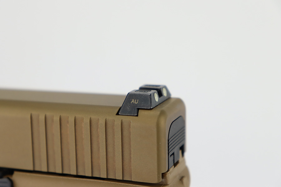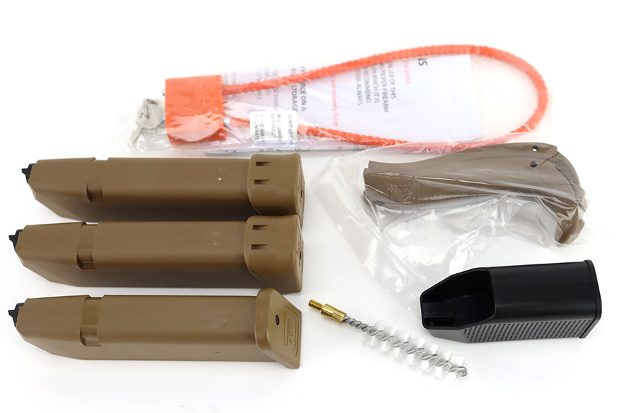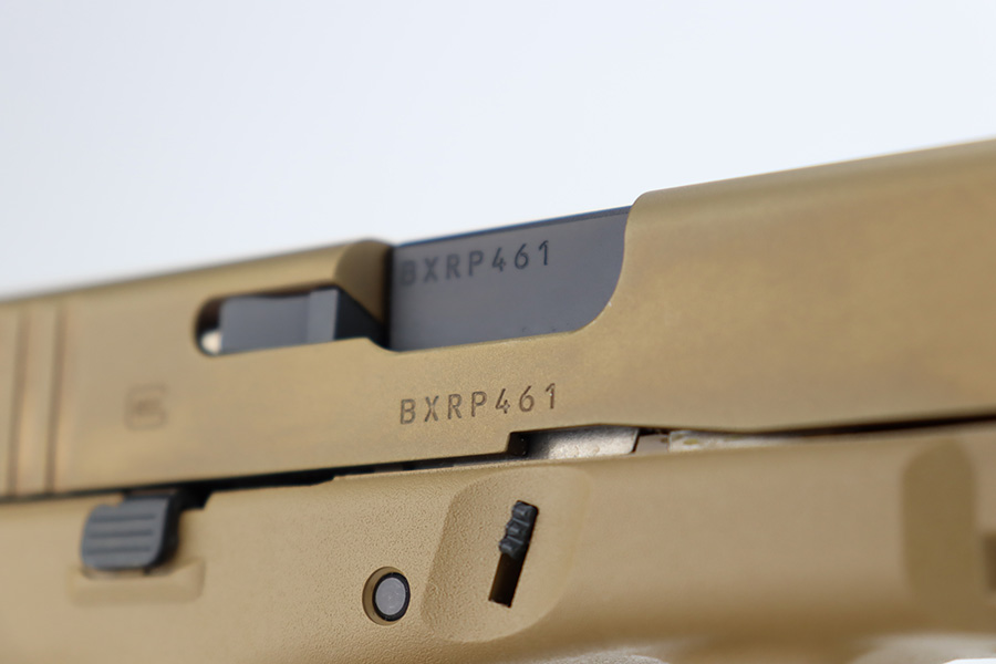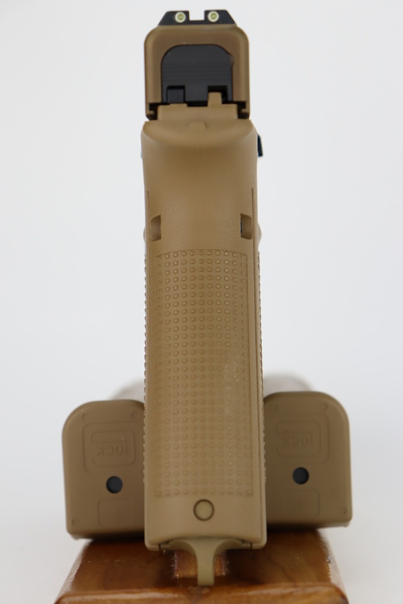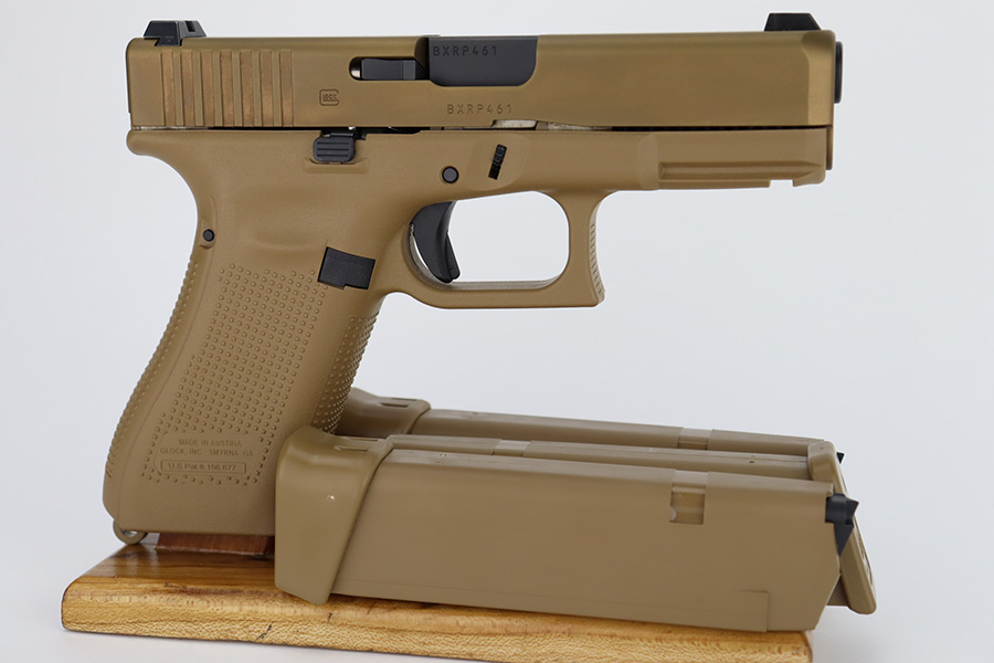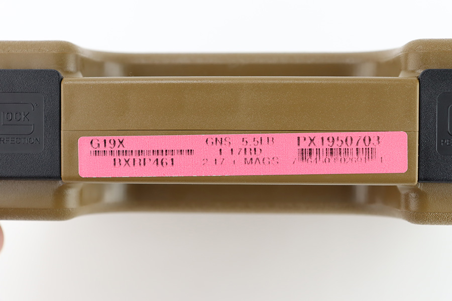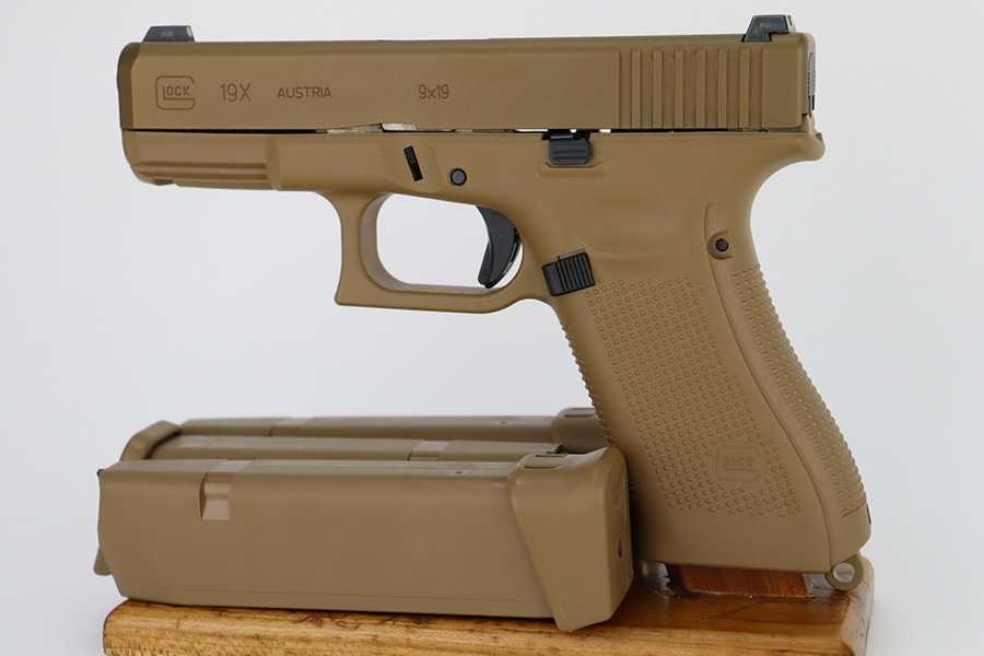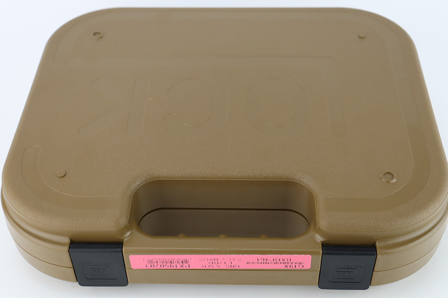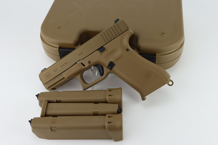 12/11/23 – This is an unfired example of a Gen 5 Glock 19X, chambered in 9mm. Comes in a coyote tan cerakote finish. It comes with its original matching-numbered hard case, sales papers, owners manual, gun lock, cleaning rod with brush, three magazines, spare grips, and a speed loading tool. The gun is new with no signs of wear or use. Factory-new bore.