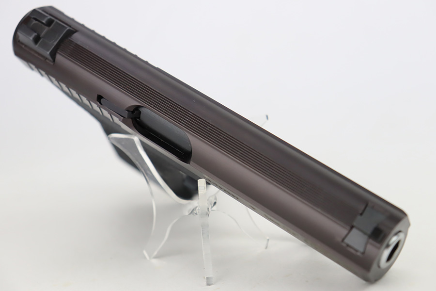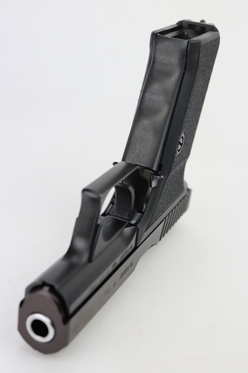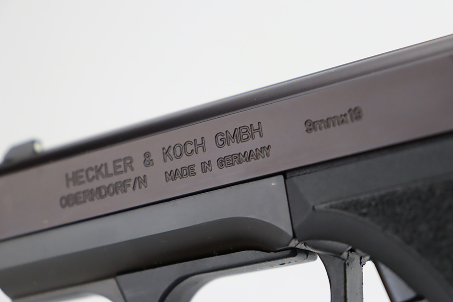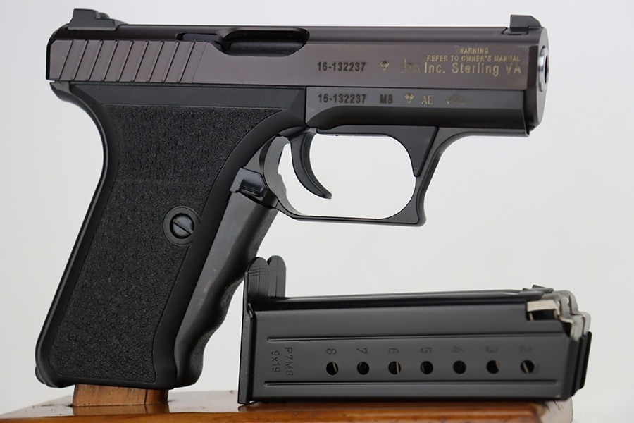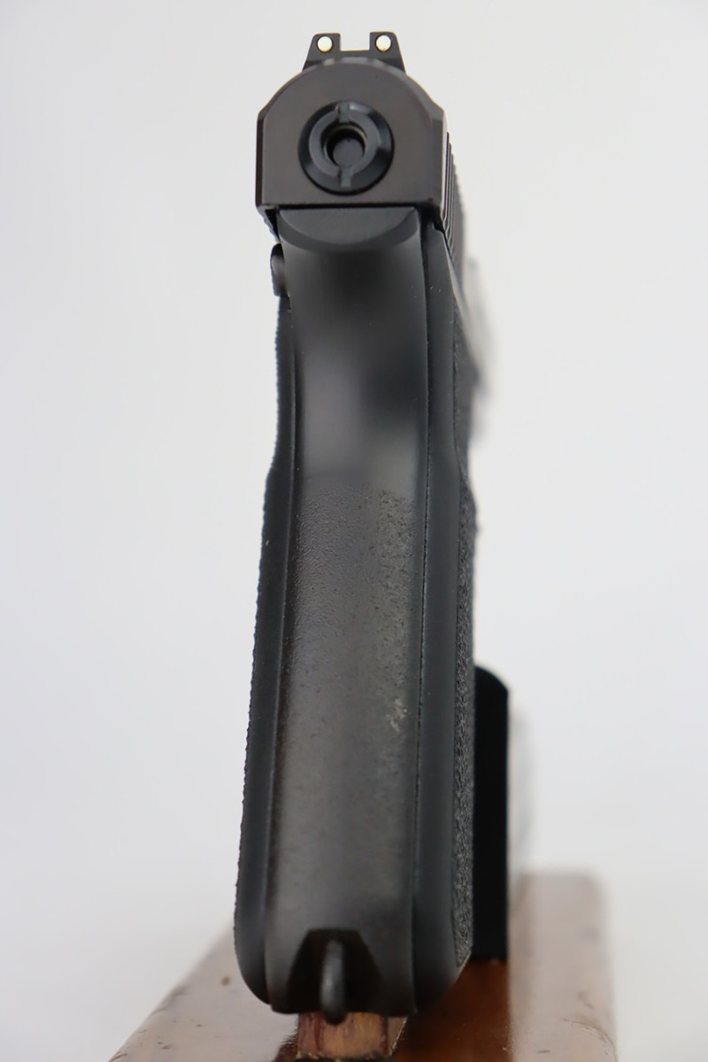 9/26/23 – This is a mint Heckler & Koch P7M8 in the original, matching box. The gun is in like-new condition with hardly any sign of use. The factory hard case is numbered and matching to the gun, and includes the original scraper, brush, warranty card, spare magazine and a 10/93 dated manual. Pistol is also date coded (AE) to 2004. FFL required. NOTE: The box has the original matching HK label on it, but the serial stamped in the plastic is off by several thousand.