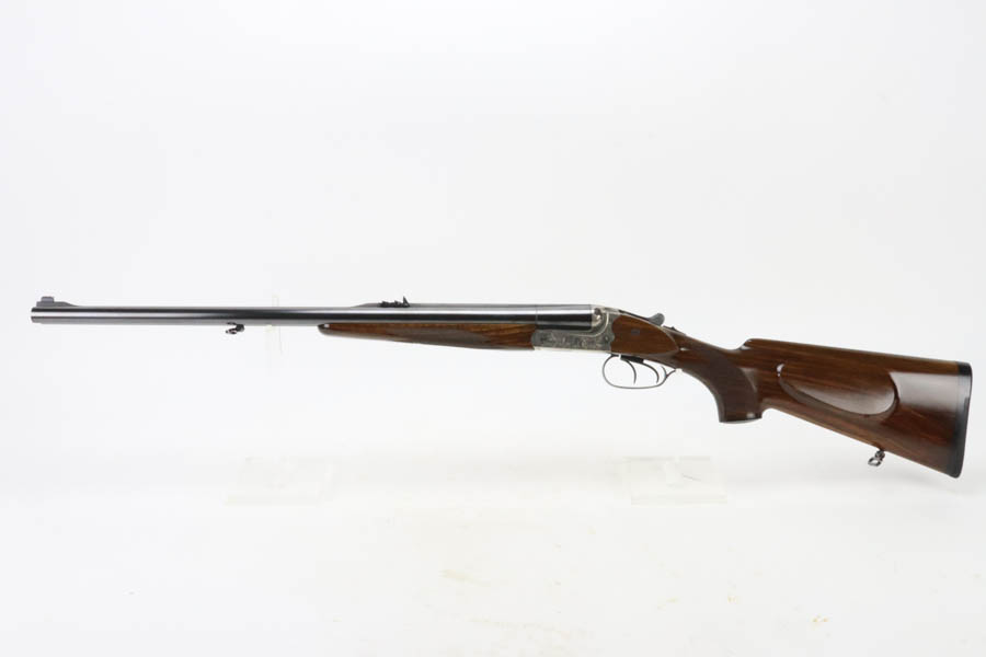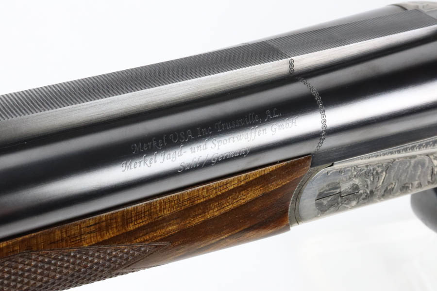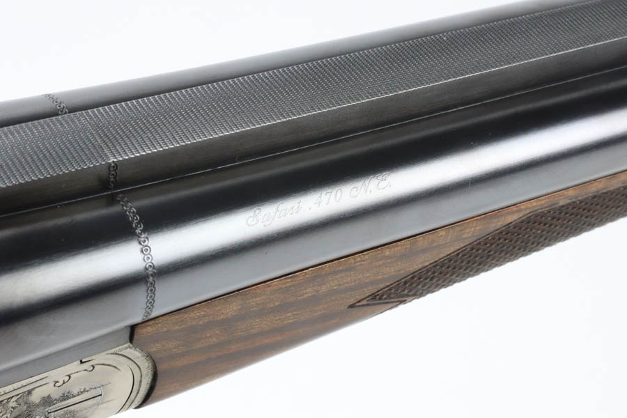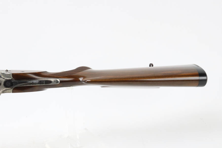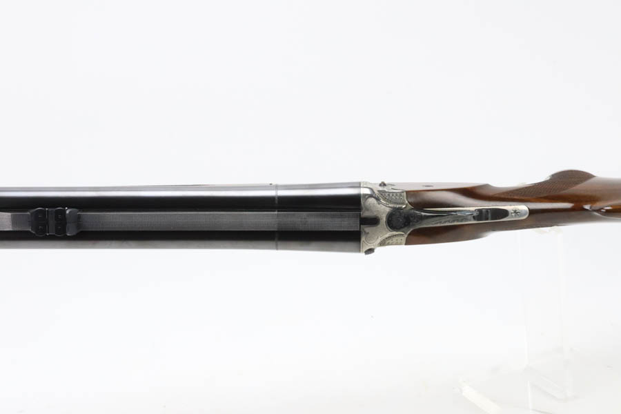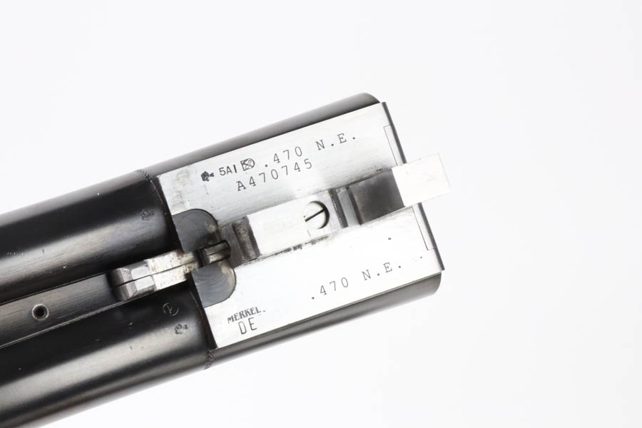 07/02/2024 – For sale is a Merkl Jagd-und Sportwaffen Safari rifle chambered in .470 Nitro Express. This double barreled rifle is in excellent condition and looks brand new. The barrel has fantastic, deep bluing on the barrel, lever, and trigger guard. The receiver is polished and nicely engraved with an elephant on the left and a rhino on the right. The forestock and stock are excellent. The bore is mirror bright on both barrels. The rifle comes with its original factory box and two .470 Nitro Express snap caps. The rifle has matching serial numbers on the forestock, barrel, and receiver.