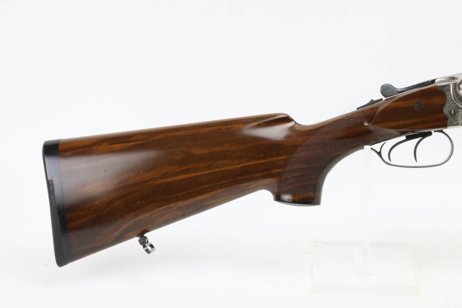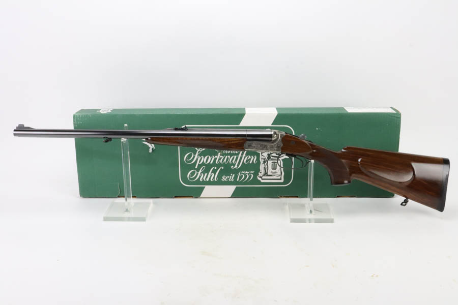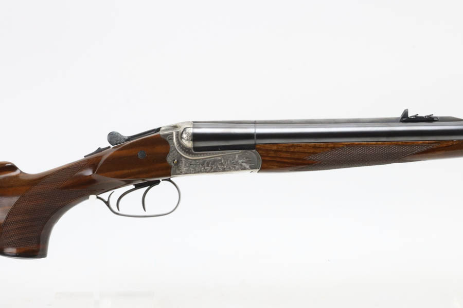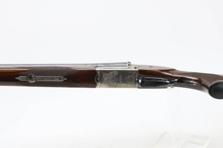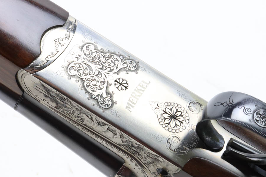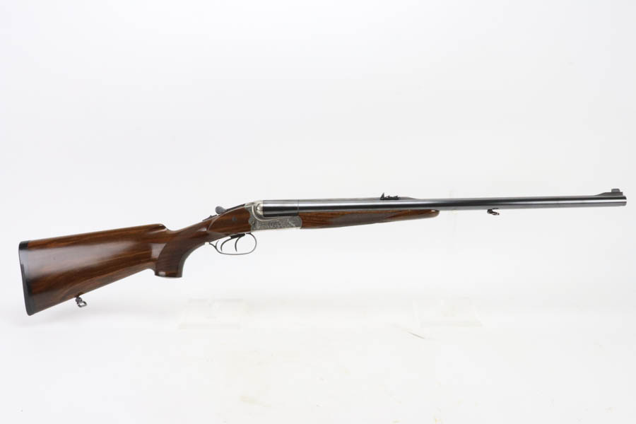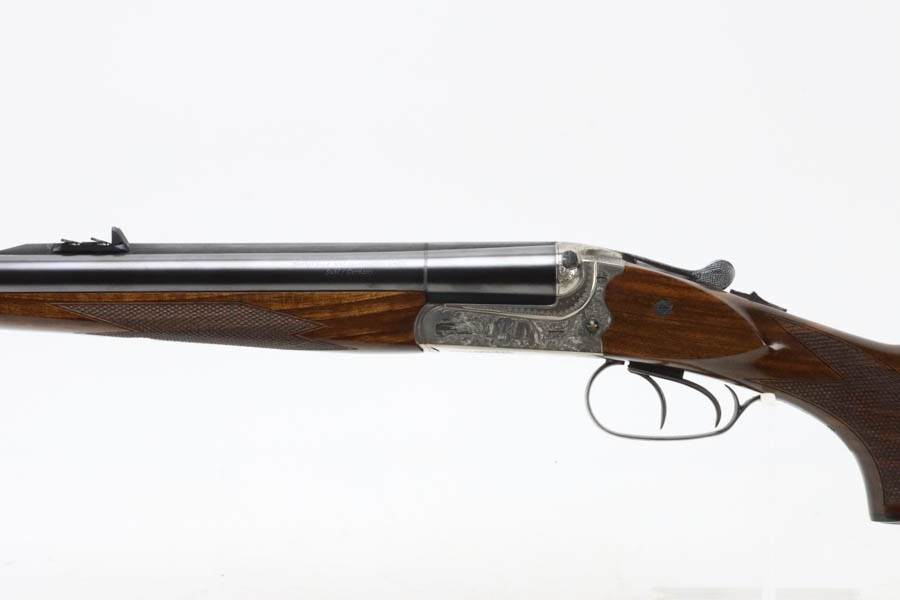 07/02/2024 – For sale is a Merkl Jagd-und Sportwaffen Safari rifle chambered in .470 Nitro Express. This double barreled rifle is in excellent condition and looks brand new. The barrel has fantastic, deep bluing on the barrel, lever, and trigger guard. The receiver is polished and nicely engraved with an elephant on the left and a rhino on the right. The forestock and stock are excellent. The bore is mirror bright on both barrels. The rifle comes with its original factory box and two .470 Nitro Express snap caps. The rifle has matching serial numbers on the forestock, barrel, and receiver.