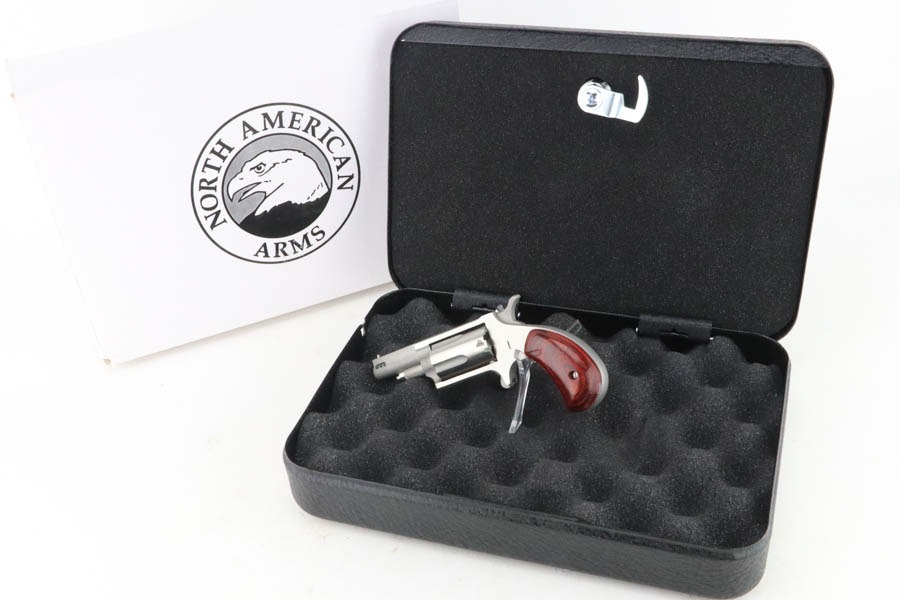 10/24/24 – This is a new-in-box North American Arms 22M P revolver, chambered in .22 Magnum. Functional porting with a 1 5/8 inch barrel. Stainless finish with wood grips. Comes with its original box, safe, owners manual, and all of its original accessories. New condition with no signs of wear or use. Manufacturer SKU NAA-22M-P.
