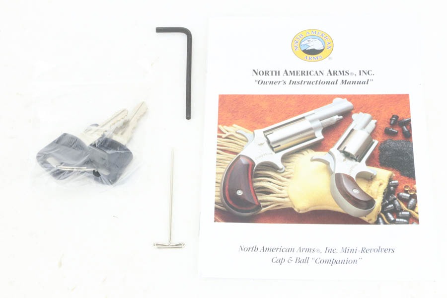 10/24/24 – This is a new-in-box North American Arms Super Cap & Ball revolver, chambered in .22 / #11 Percussion. Black Powder only, so no FFL required. Stainless finish with wood grips. Comes with its original box, safe, owners manual, and all of its original accessories. New condition with no signs of wear or use. Manufacturer SKU NAA-22M-CBK. We have 2 available in the exact same condition. You may not receive the exact gun shown in the photos.