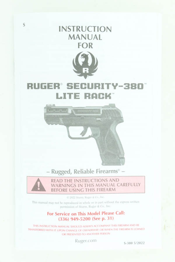 10/25/24 – This is a new-in-box Ruger Security-380 Lite Rack pistol, chambered in .380 ACP. Comes in its original box with all of its extras. The gun is in like-new condition with no signs of use or wear. All-black finish. Manufacturer SKU 03839.