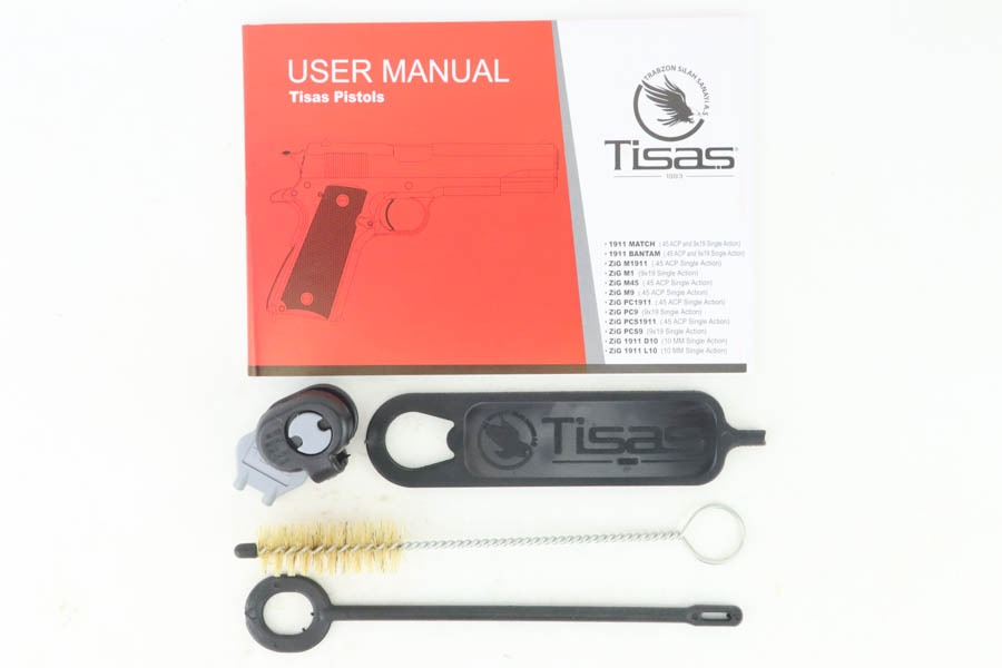 10/24/24 – This is a new-in-box TISAS 1911 A1 Service 45 Pistol, chambered in .45 ACP. All-black finish with black grips. Comes in its original box with all of its extras. The gun is in like-new condition with no signs of use or wear. Manufacturer SKU 713135218539. We have 2 available in the exact same condition. You may not receive the exact gun shown in the photos.