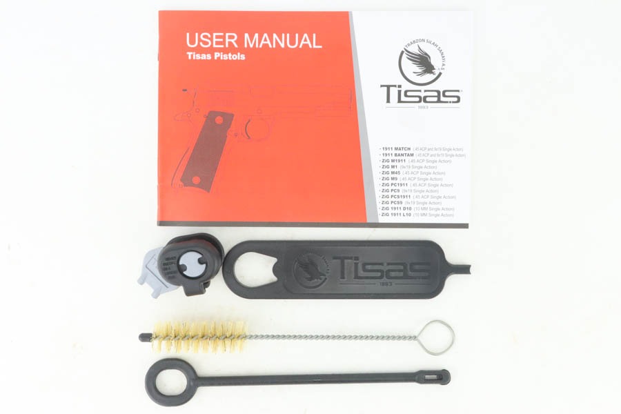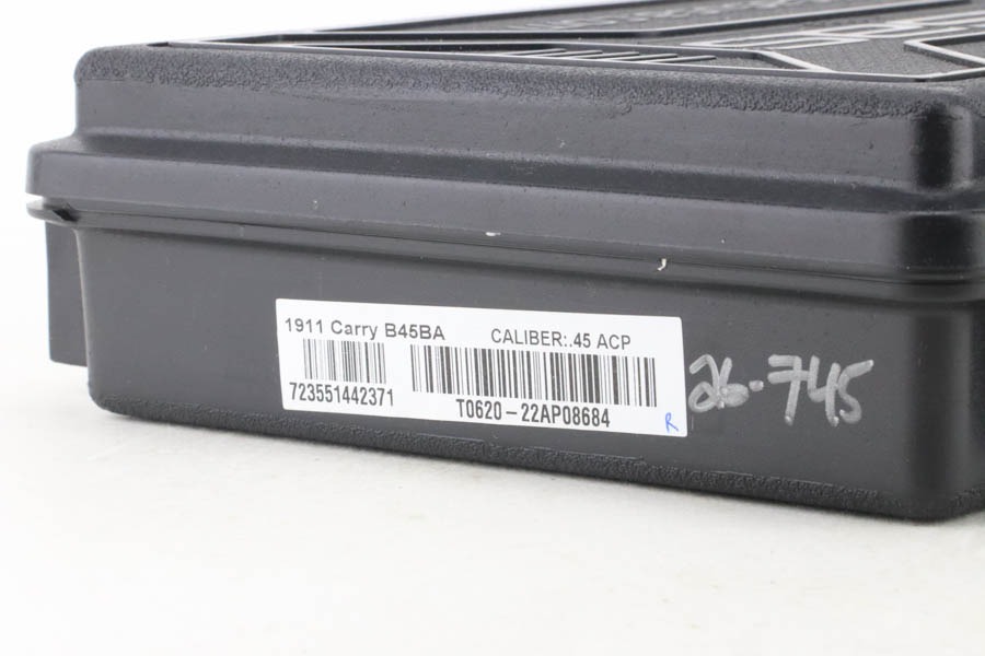 10/24/24 – This is a new-in-box TISAS 1911 Carry B45BA Pistol, chambered in .45 ACP. Nice two-tone matte gray and black finish with black grips. Comes in its original box with all of its extras. The gun is in like-new condition with no signs of use or wear. Manufacturer SKU 723551442371.
