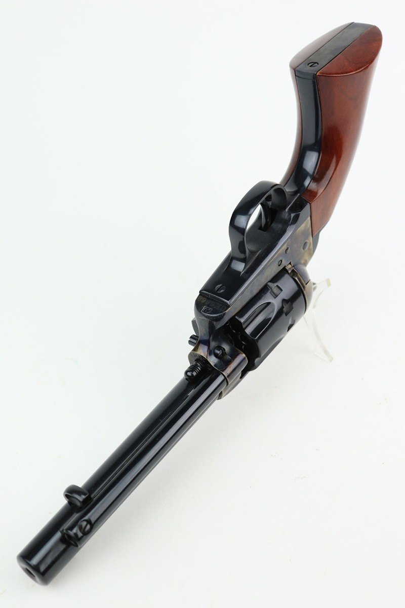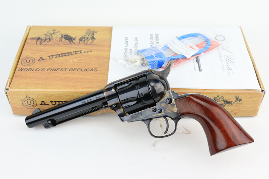 4/22/22 – This is an unfired Uberti M1873 (Model 4025 Cattleman N12) revolver in the original box. It’s chambered for .22LR and has a 5.5in barrel. 12 shot cylinder. Comes with the original manual and basic paperwork. Uberti lock included. FFL required.