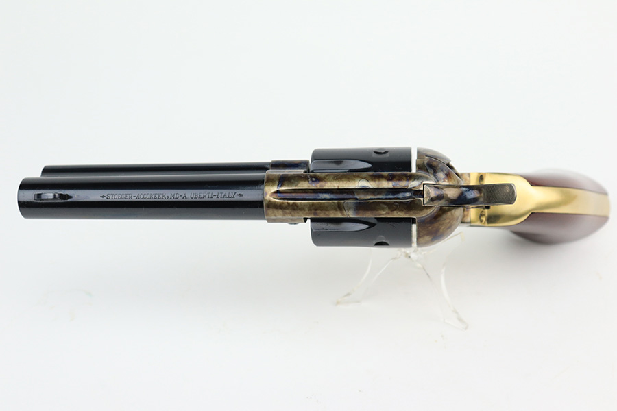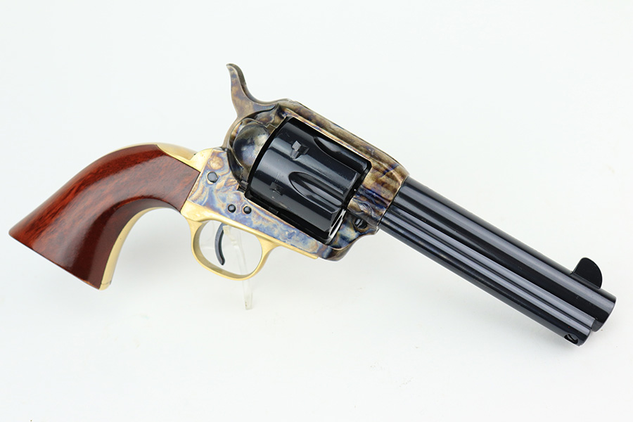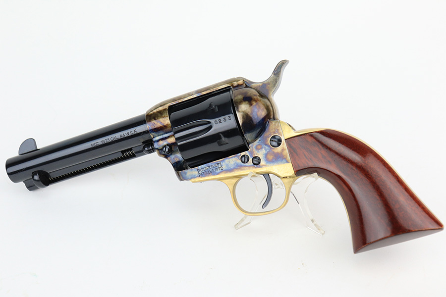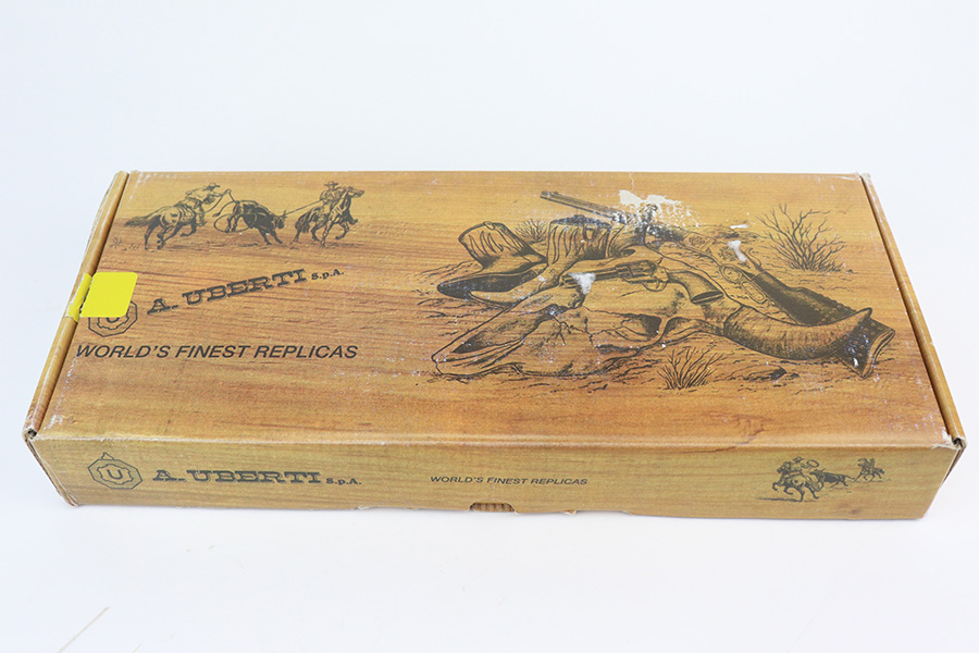 4/22/22 – This is an unfired Uberti M1873 in its original box. Barrel is 4.75in and chambered for .44-40. Case hardened frame and polished blue barrel. Comes with the original manual and papers. FFL required.