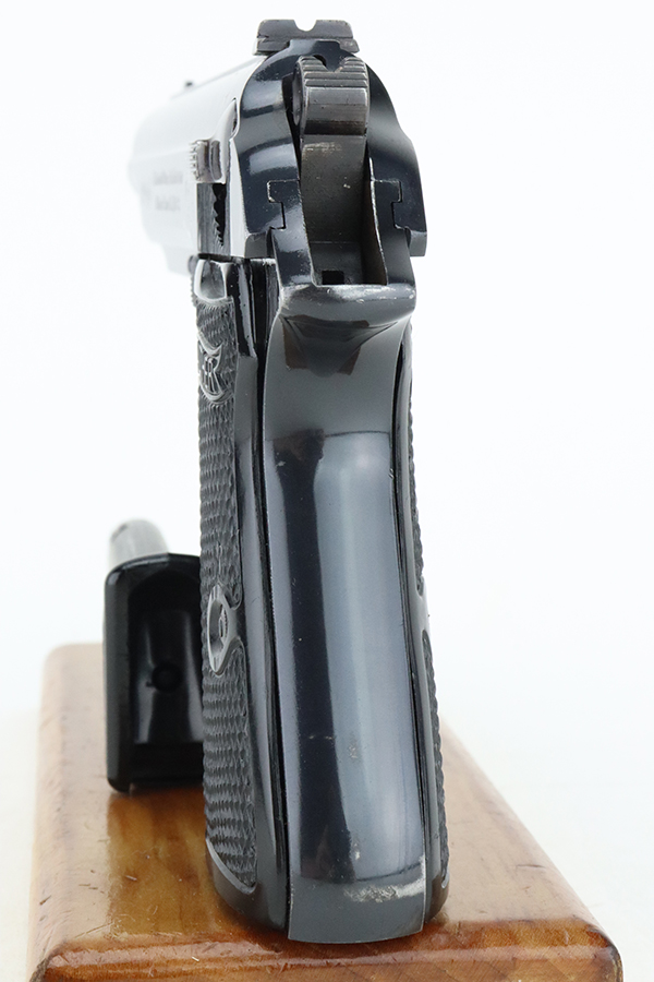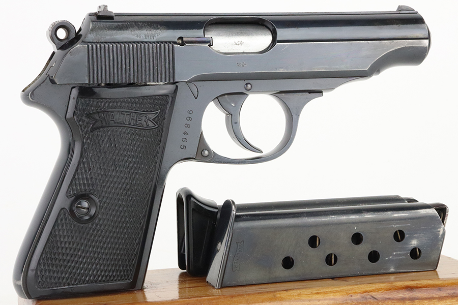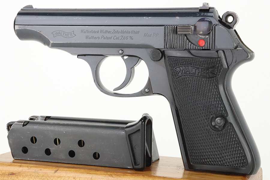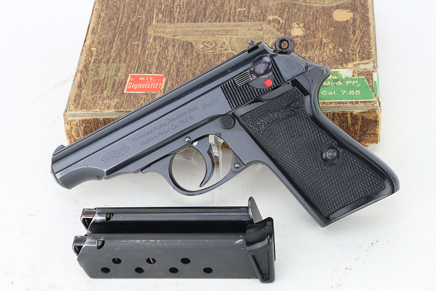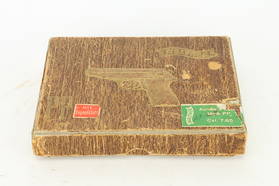 05/15/2024 – For sale is a commercial Walther PP produced in 1937 with its original box. This handgun is in 98% condition but there is some pricking to note to the right of the rear sight, behind the ejection port and some holster wear on the side. This handgun is all matching and the bore is bright and good rifling but there are some minor signs of wear. This handgun comes with a spare magazine, cleaning rod, the original cleaning cloth, manual, and early Walther cleaning tin. The box also matches the pistol serial number.