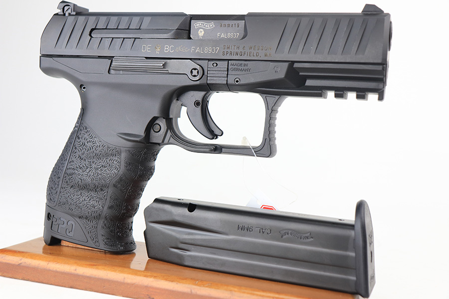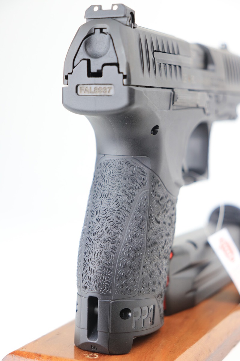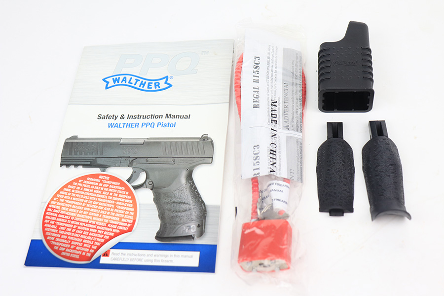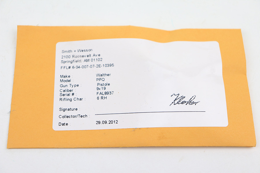 2/3/22 – This is a NIB Walther PPQ with the original box and extras. Our consignor bought this one factory new and never fired it. Comes with spare magazine, loader, matching box, matching test target, manual, grip extensions and the original test casing. Date code indicates this one was made in 2012. FFL required.