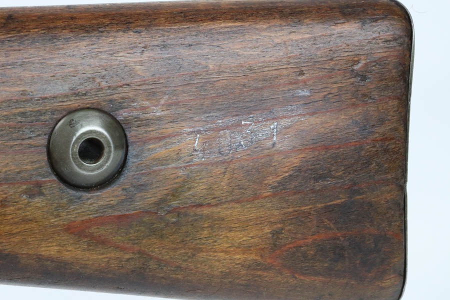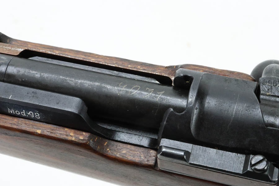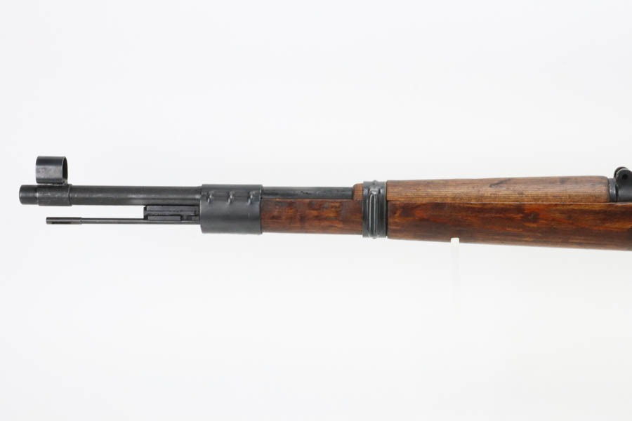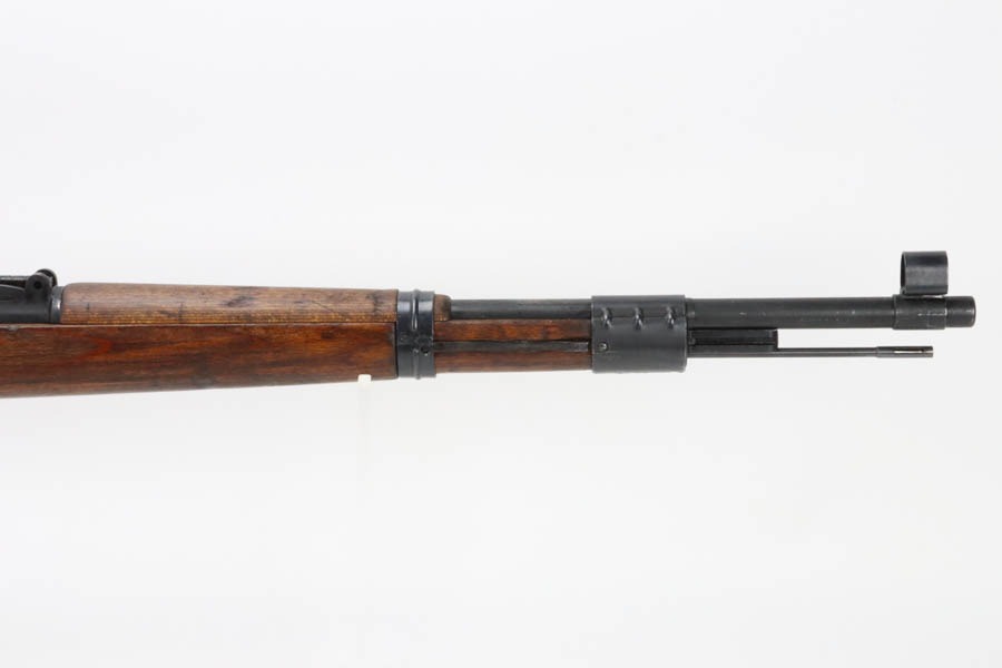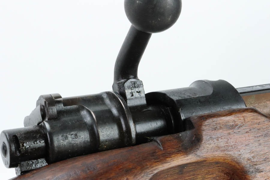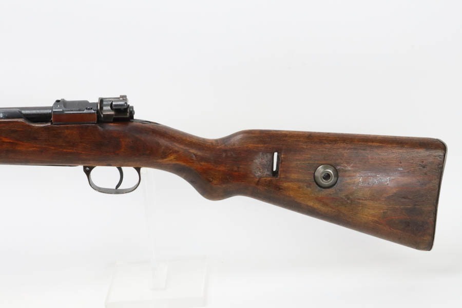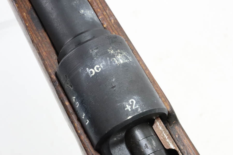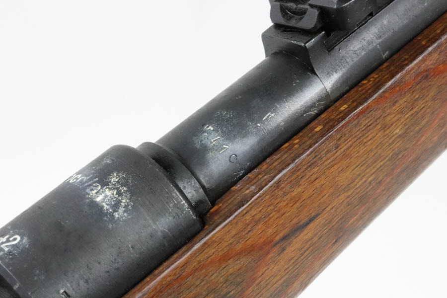 11/4/24 – For sale is a K98k made by Gustloff Werke and Mauser in 1942. The rifle had been captured by Russian forces and refurbished. The rifle has the typical dark, almost black finish seen on Russian Capture rifles and the bolt has been force-matched to the receiver with e-pencil. The stock is in good condition with the serial number stamped on the side to match the receiver. There are some hair line cracks towards the buttplate visible. The bore is bright towards the beginning but gets dark towards the muzzle but has good rifling. There is an import mark on the bottom of the barrel.
