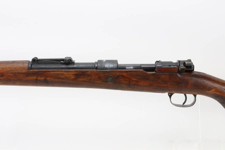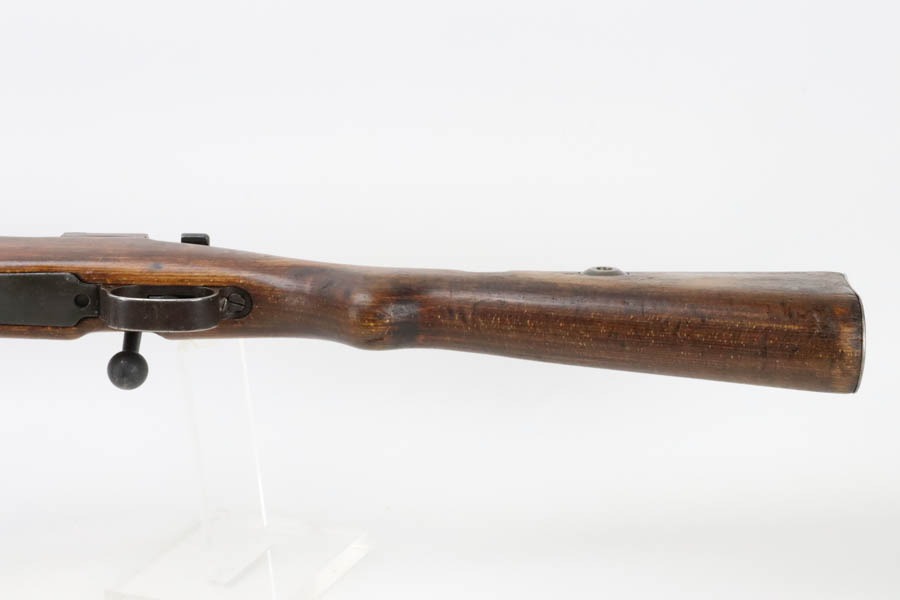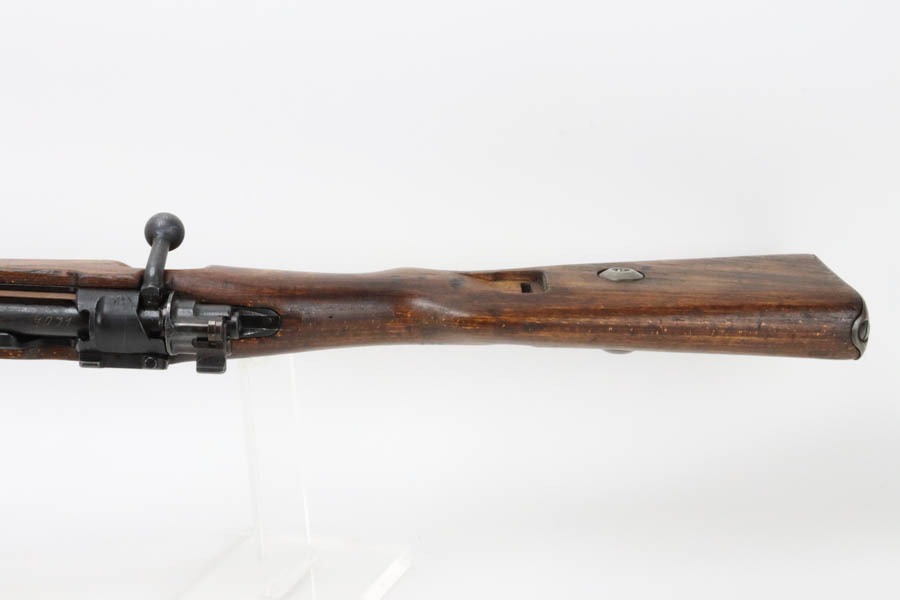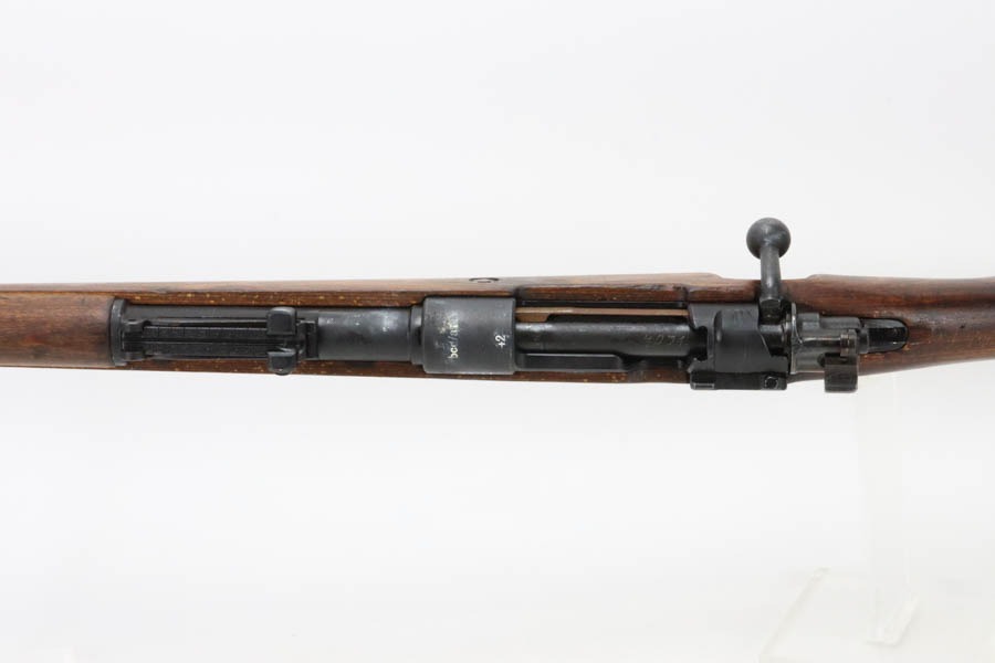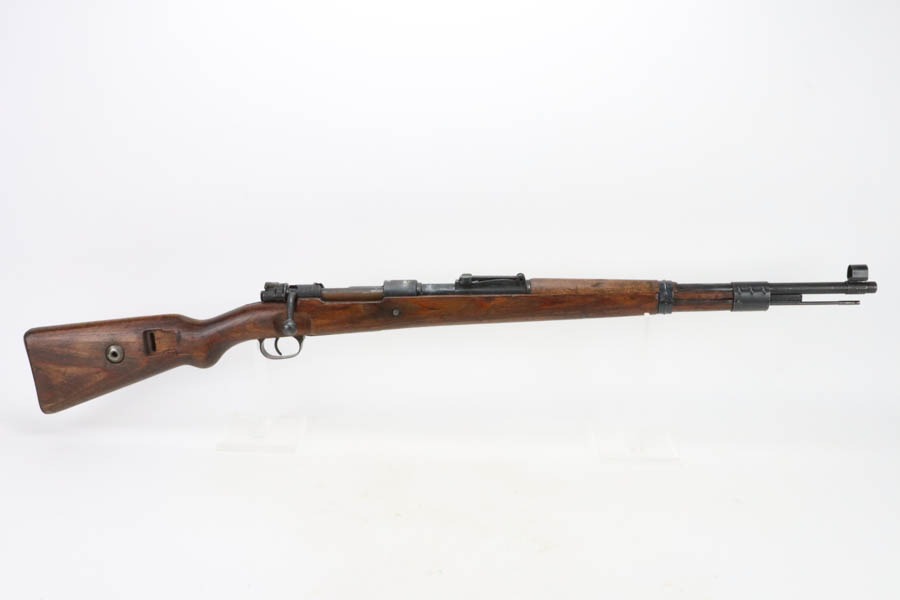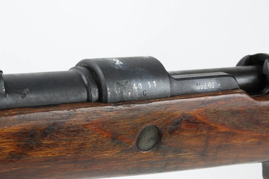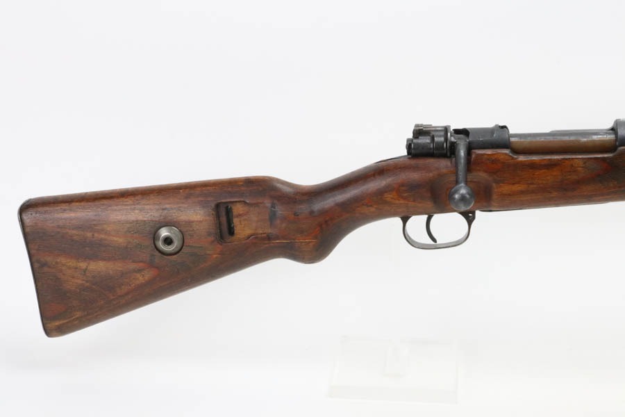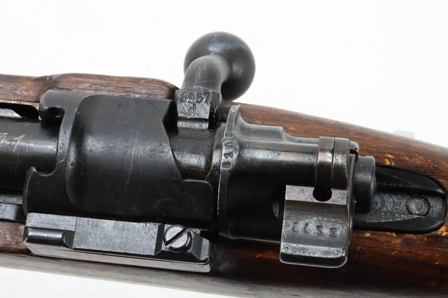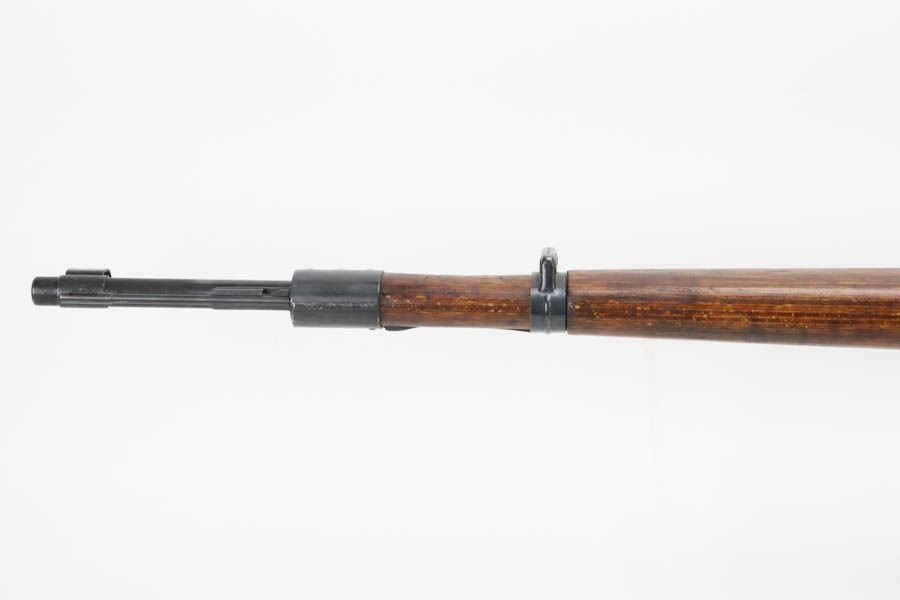 11/4/24 – For sale is a K98k made by Gustloff Werke and Mauser in 1942. The rifle had been captured by Russian forces and refurbished. The rifle has the typical dark, almost black finish seen on Russian Capture rifles and the bolt has been force-matched to the receiver with e-pencil. The stock is in good condition with the serial number stamped on the side to match the receiver. There are some hair line cracks towards the buttplate visible. The bore is bright towards the beginning but gets dark towards the muzzle but has good rifling. There is an import mark on the bottom of the barrel.