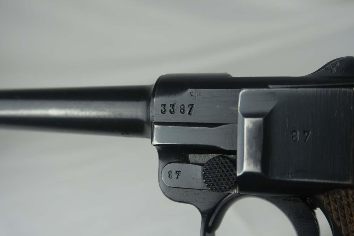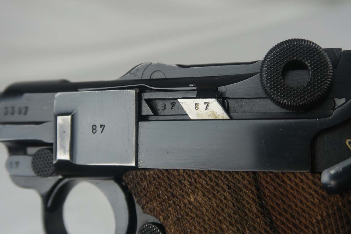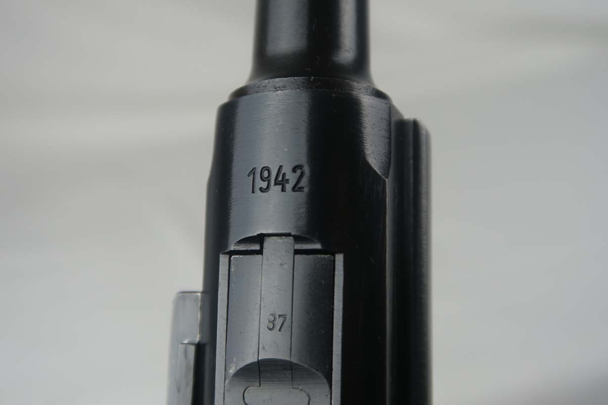 SOLD – Nice 1942 Police E/L Mauser Banner Luger – Match Mag