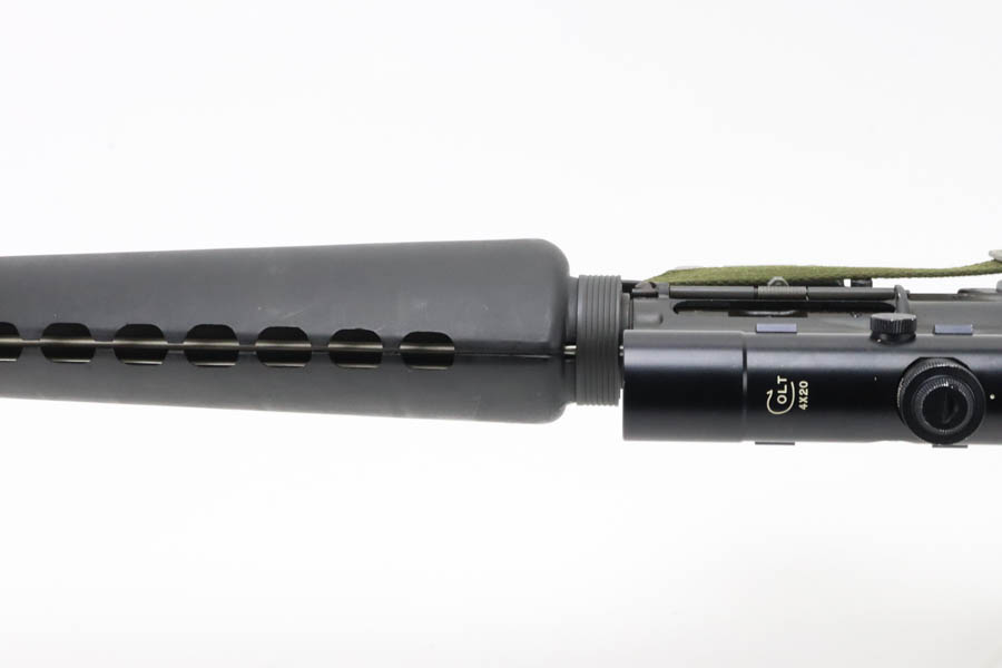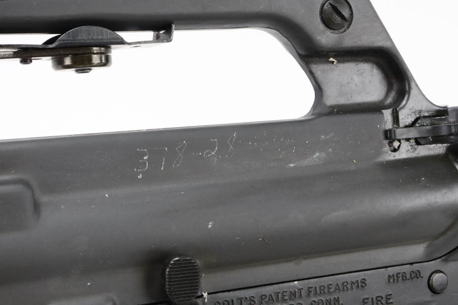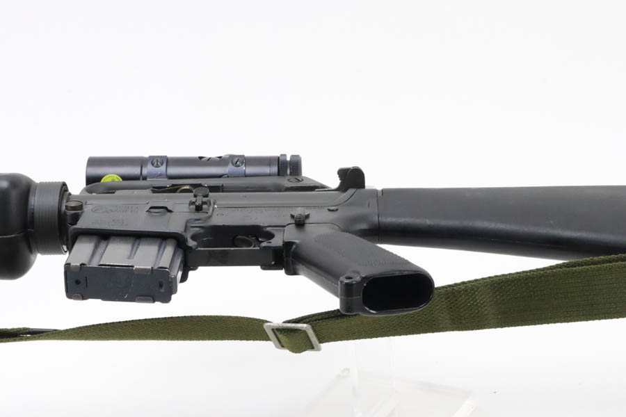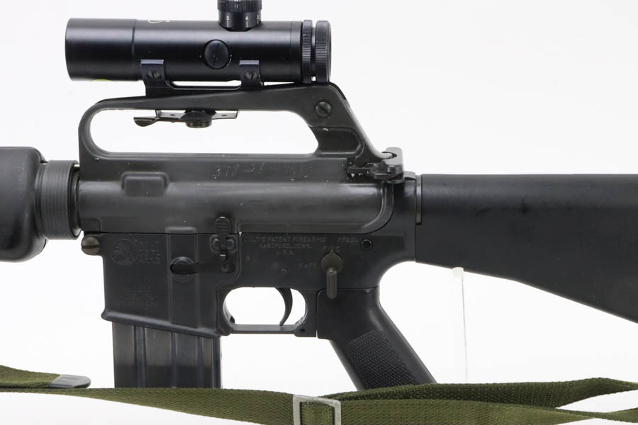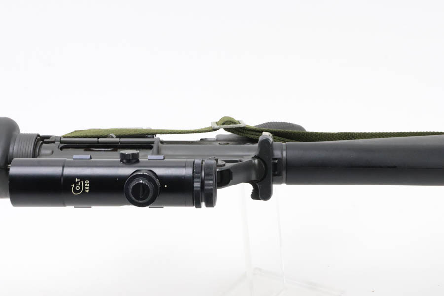 06/03/2024 – For sale is a Colt SP1 Rifle chambered in .223 Remington produced in 1974. This rifle comes equipped with a Colt 4×20 scope. The rifle is in great condition with an overall rating of 98%. There are some scratches on the finish from handling and use. The upper receiver and lower receiver do not match each other but the upper receiver is properly proofed for Colt Sp1. The upper receiver also has some numbers etched into it. The bore is mirror bright and excellent. The rifle comes with one Colt 20 round magazine and a canvas sling. The optic lens is clear but has a slight yellowish tint to it.