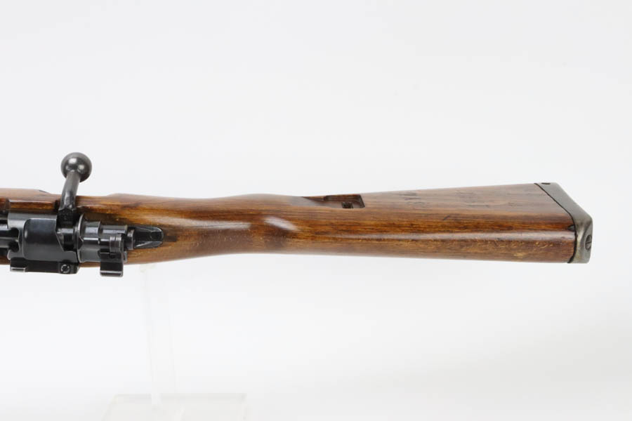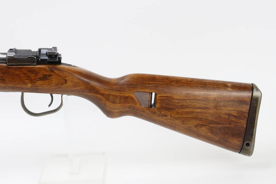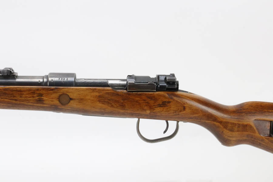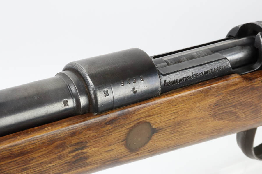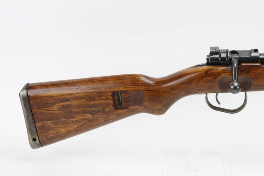 06/26/2024 – For sale is a Czech K98k made by the BRNO arsenal after WW2. These K98ks were assembled with leftover parts after the German surrender. The receiver has been scrubbed of any German markings. The rifle retains its original bluing but is browning with age. The stock is in great condition overall but has been lightly sanded. A previous owner has also bedded the action to this stock and over the stock recoil lug. The rifle uses leftover semi-Kriegsmodell parts like the stock and buttplate. The rest of the parts are late war K98k parts. The barrel is stamped dot/13 and a 45. The rifle is matching on the receiver and bolt and it is missing its cleaning rod. The stock is stamped SYL and 1963 which may be a rack number.