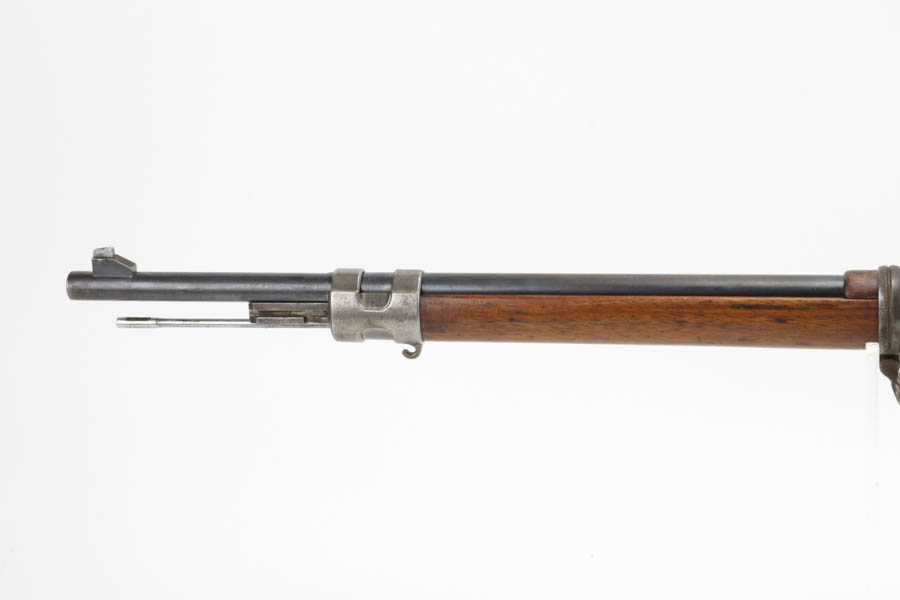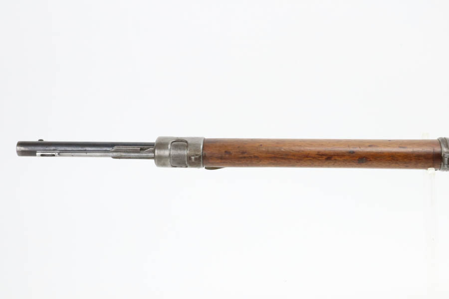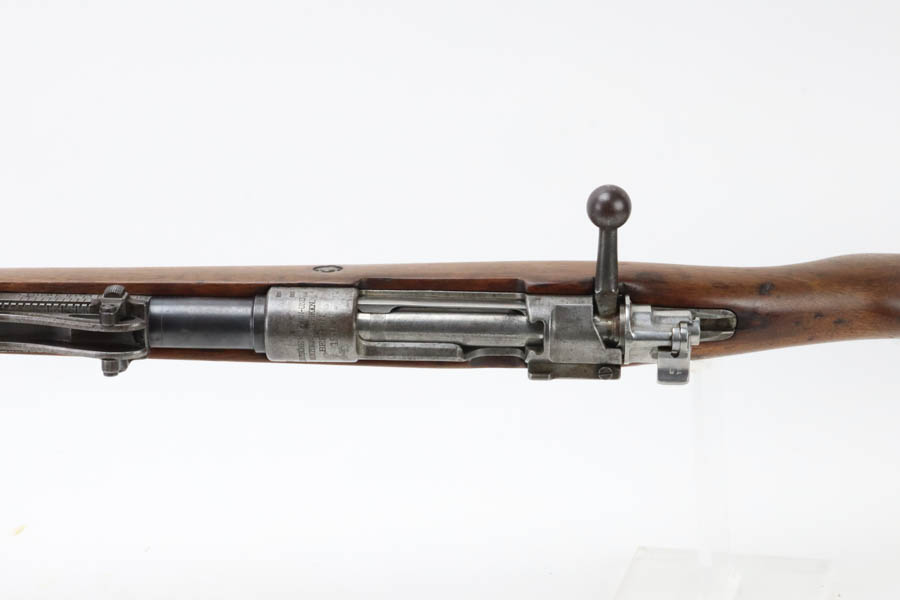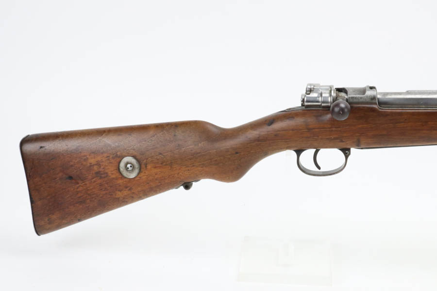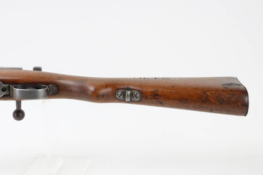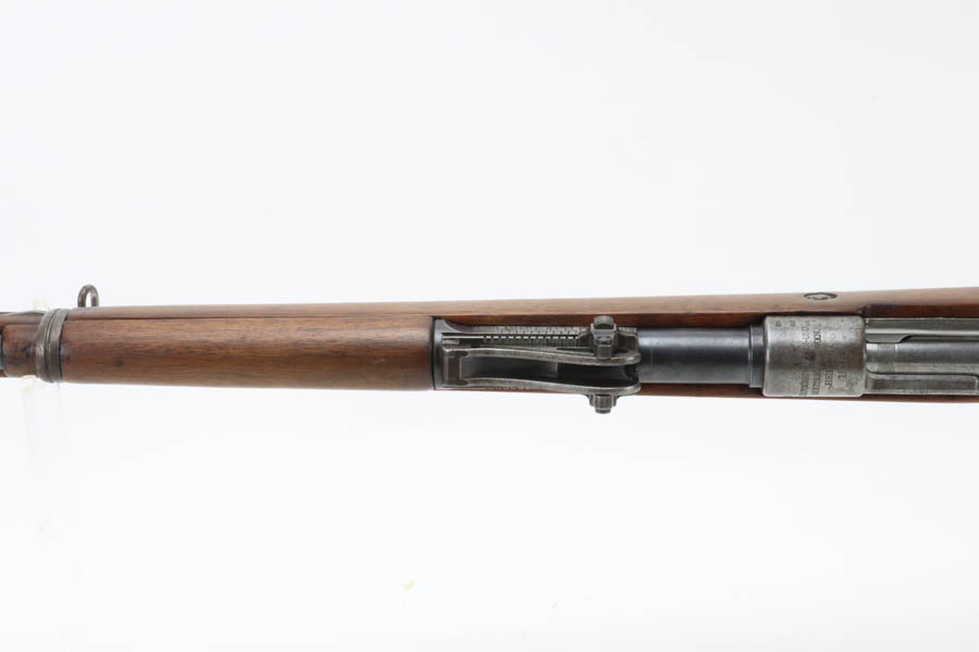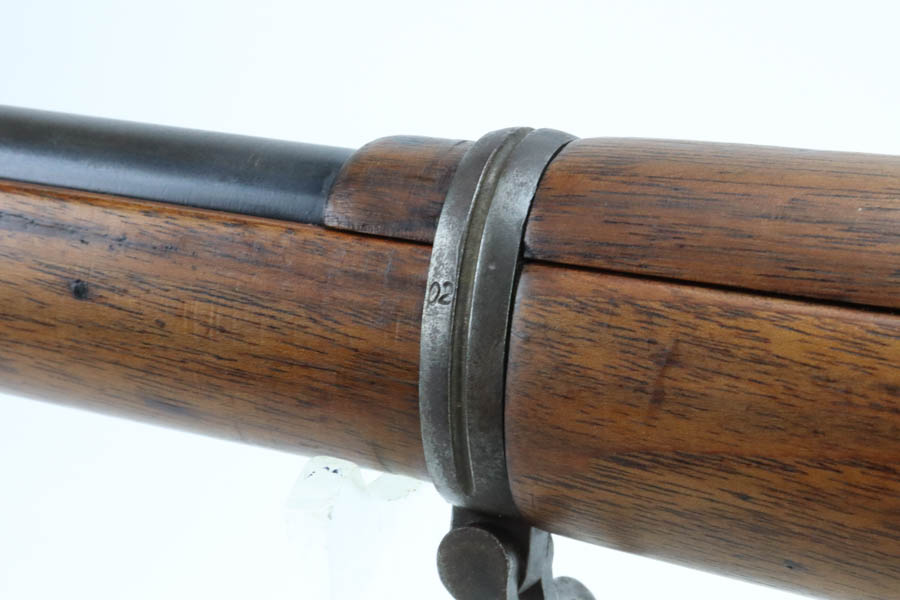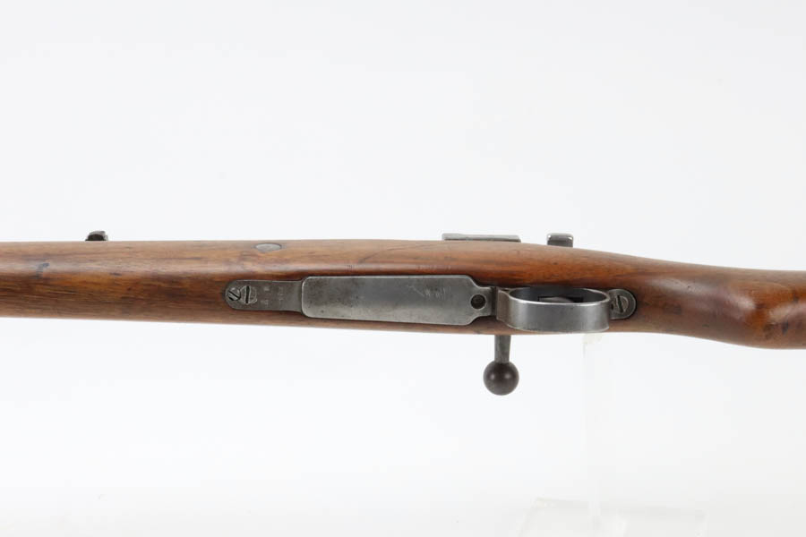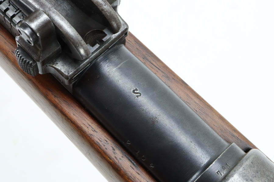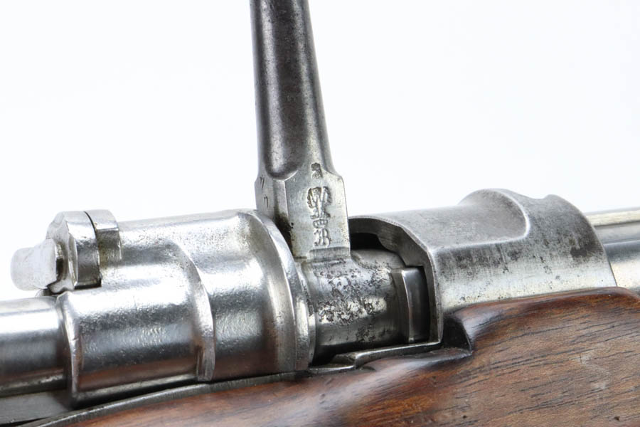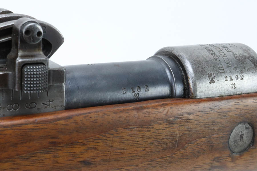 06/07/2024 – For sale is a Gewehr 98 Mauser made by DWM in 1915. This rifle is in an overall 90% condition. The receiver and bolt have some freckling and patina. The barrel still retains a nice bluing. The rifle is nearly matching throughout down to the action screws but the cocking piece is unnumbered and the cleaning rod is mismatched. The stock has been sanded and “C. Moore METS” was etched into the left side. The bore is fairly bright with great rifling but it has been counter-bored for about 1.5 inches from the muzzle.