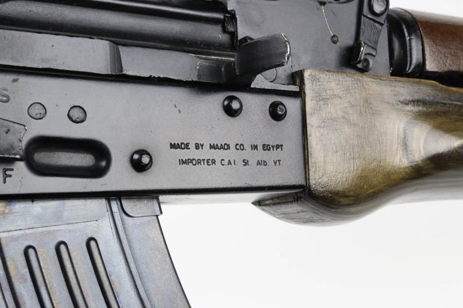 09/28/2024 – For sale is an Egyptian Maadi ARM rifle with a thumbhole stock. The Maadi ARM is an Egyptian AKM that originally was produced on original Soviet Machinery. This rifle is in a post-ban configuration with a thumbhole “sporter” style stock. The metal has a nice dark enamel finish with minimal wear. There are some minor handling marks visible. The wood furniture is in great condition but there is some wear on the top of the stock. The bore is bright with great rifling. The muzzle cap was originally tack welded in place for post-ban compliance and the prior owner had removed that weld.