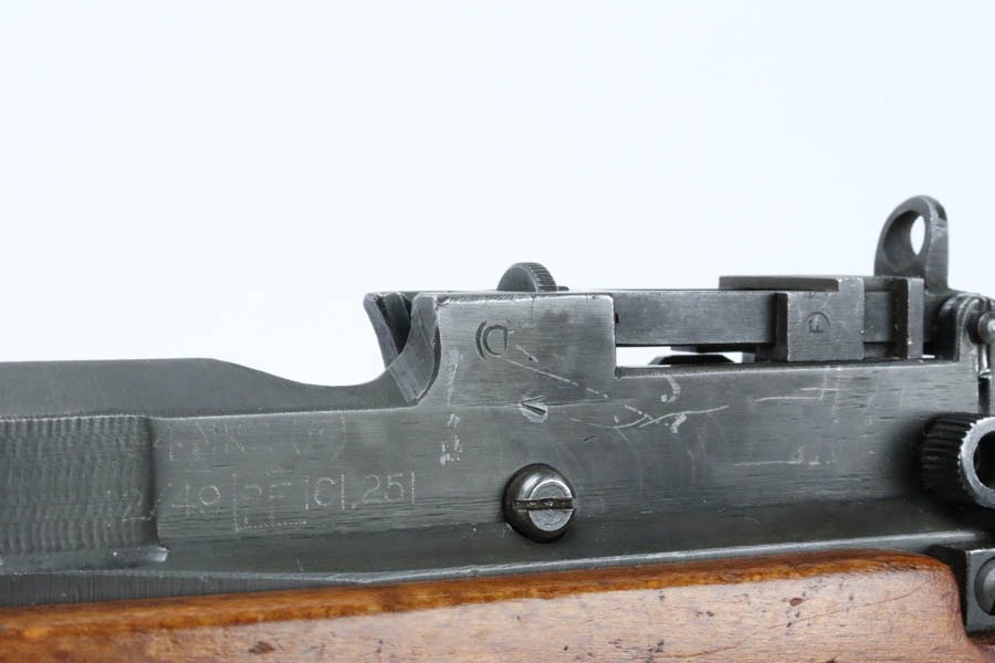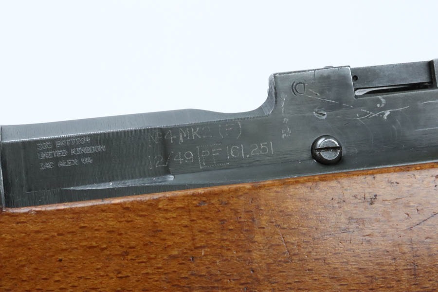 10/02/2024 – For sale is a nice British No4 MK2 Lee Enfield made by the Royal Ordnance Factory at Fazakerly in 1949. The rifle is in great condition with a nice smoothed parkerized finish. There are minor scratches and handling marks. The stock is clean with minor handling and pressure marks but there are no cracks or breaks. The rifle has matching serial numbers on the receiver, bolt, magazine, and forestock. The bore is fairly bright towards the beginning but gets darker at the muzzle. The spike bayonet and scabbard are in great condition. There is an import mark on the left side of the receiver.
