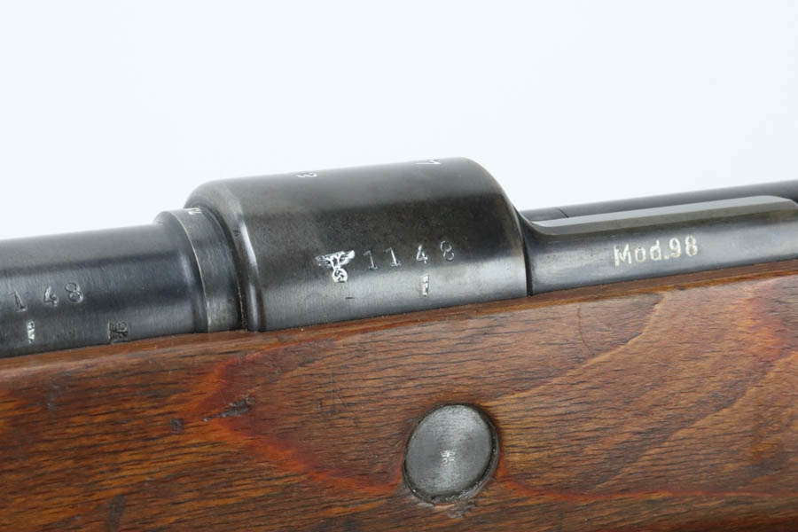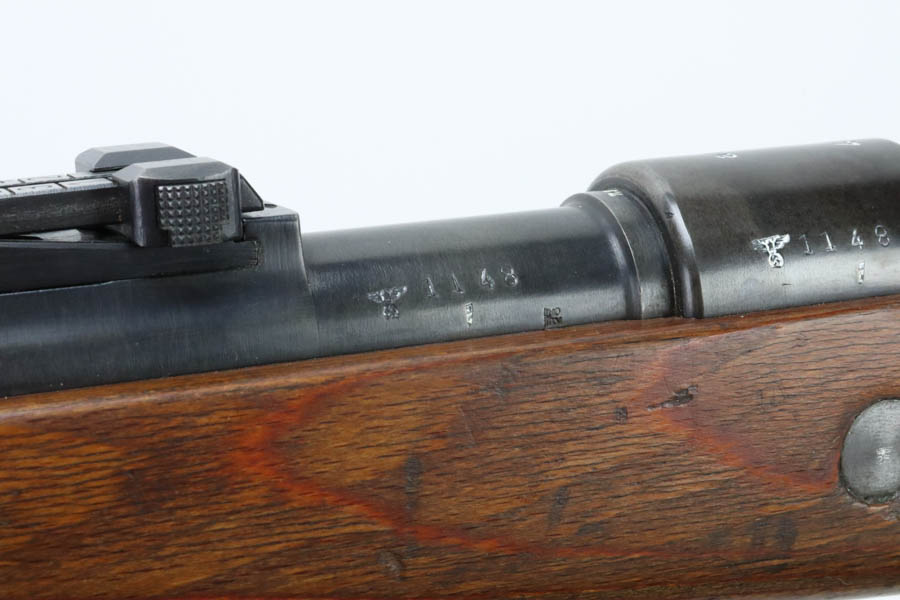09/09/2024 – For sale is a K98k Mauser made at the Mauser Borsigwalde Factory in 1941. The rifle is in great condition with nice bluing remaining on the metal with spots of wear. The rifle has matching serial numbers throughout but the barrel bands are suspect and could be renumbered. The stock is in great condition without any cracks or breaks. The serial number and Eagle proofs are stamped on the bottom. The bore is excellent and very bright. The rifle comes with a K98 Winter trigger.