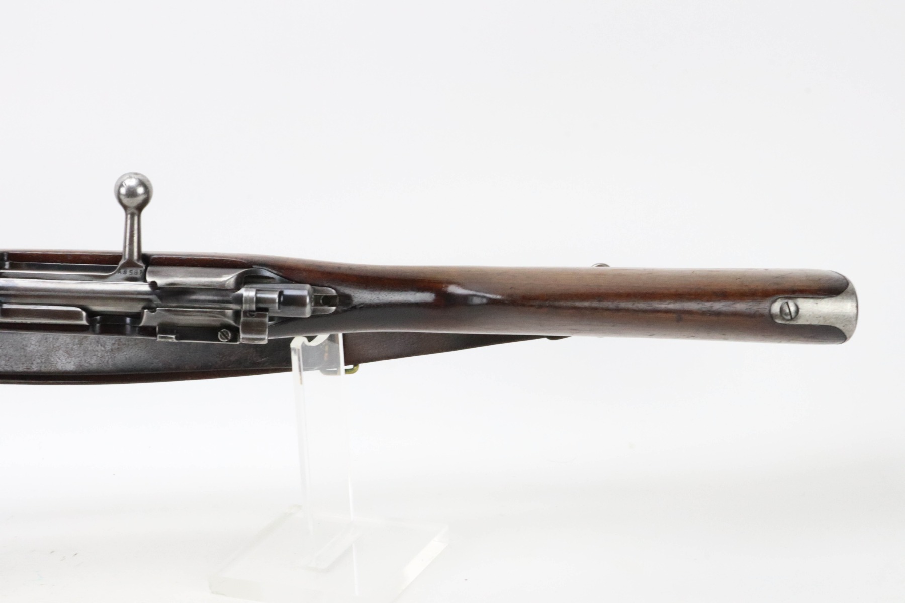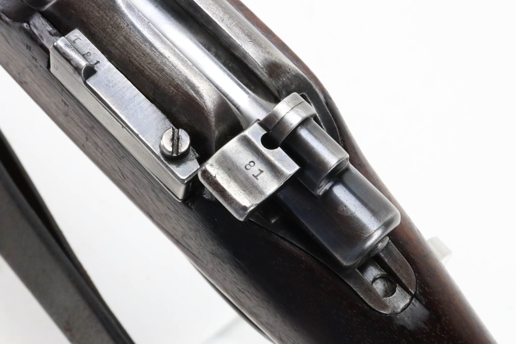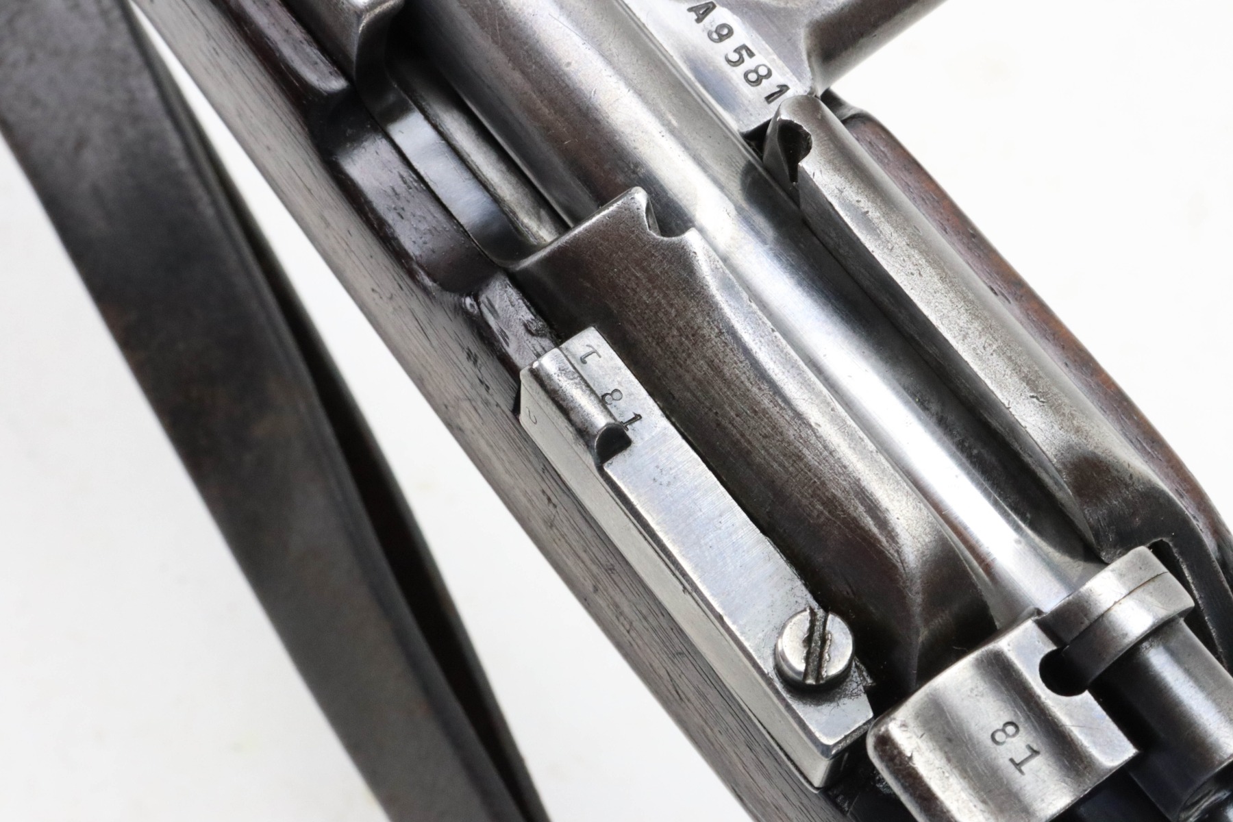 09/10/2024 – For sale is a Portugese Mauser Vergueiro rifle chambered in 8×57 Mauser. The rifle uses a Mannlicher bolt derived from the Gewehr 1888 and Mannlicher-Schönauer along with a Mauser style magazine. This rifle was updated prior to WW2 to the 04/39 spec which rechambered the rifles from 6.5×58 to 8×57 Mauser and a vent hole was drilled into the side. The rifle is in good condition overall with the metal turning grey and dark with age and most of the original finish worn away. The stock is in great condition without any major blemishes. The rifle has matching numbers throughout. The bore is bright with good rifling but is starting to turn darker at the muzzle.