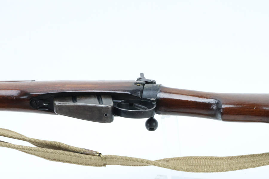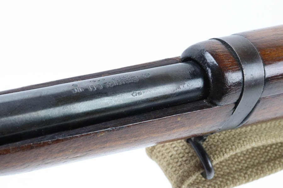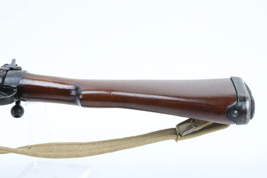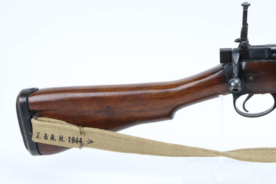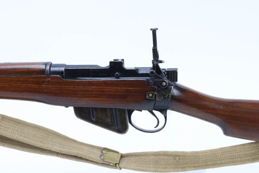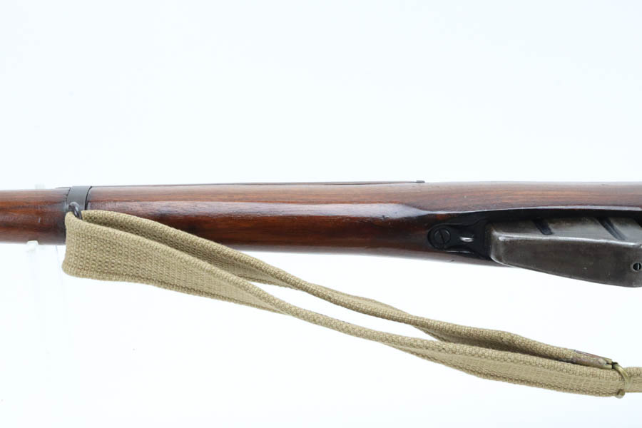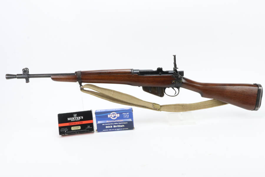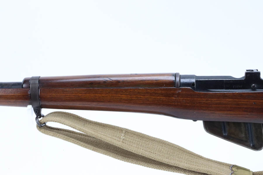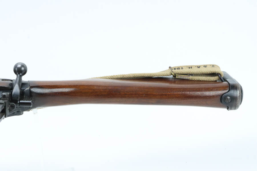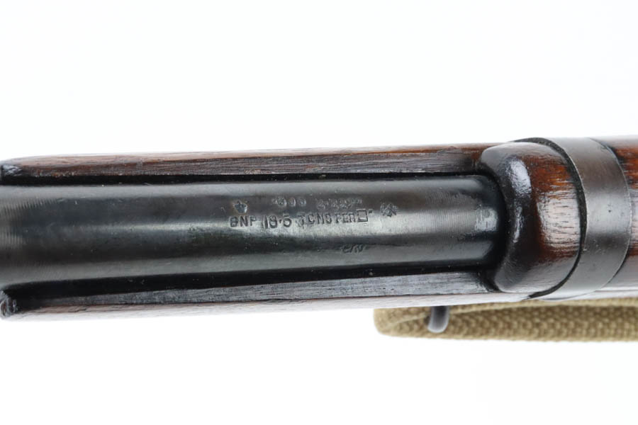 06/19/2024 – For sale is a No5 Mk1 “Jungle Carbine” used by the British Commonwealth during and after WW2. These carbines were designed as a shortened & lightened Lee Enfield rifle to make it easier to use in the jungles of Asia. This rifle has all the correct features for a No5 Mk1. The rifle is in good condition overall and has managed to avoid getting refurbished after WW2. The finish is fairly worn. The stock is smooth but has been refinished in the past. The bore is dark with good visible rifling. The rifle is mismatched. It comes with 40 rounds of PPU and Herters .303 ammo and a canvas sling.