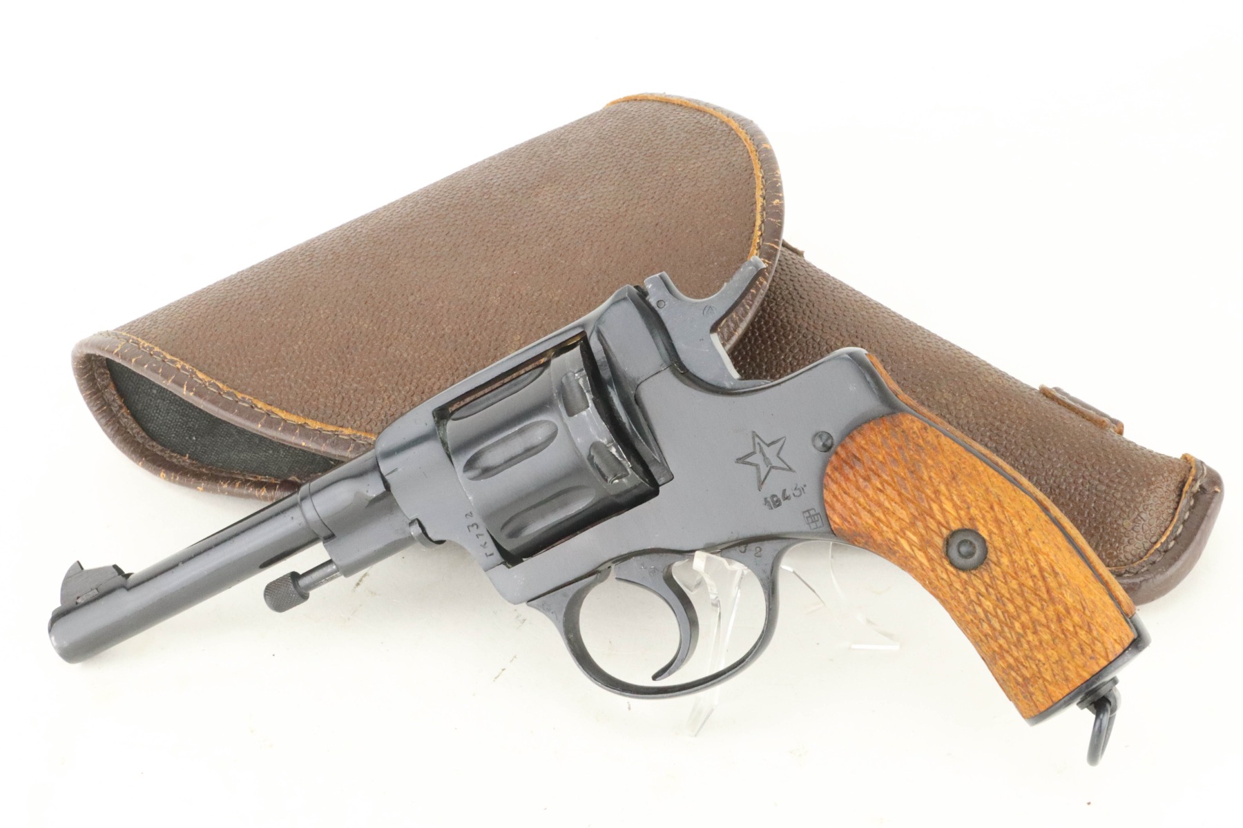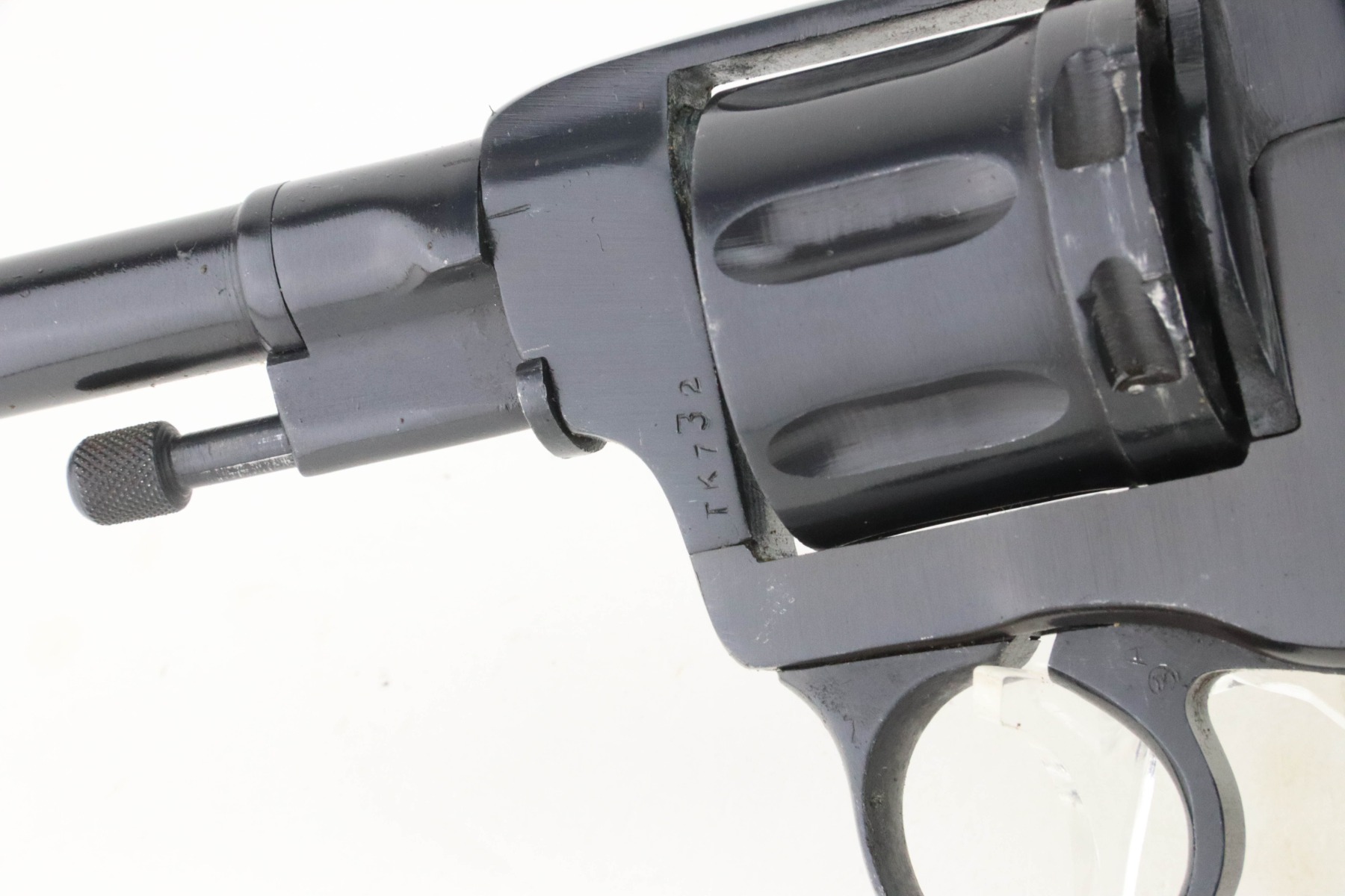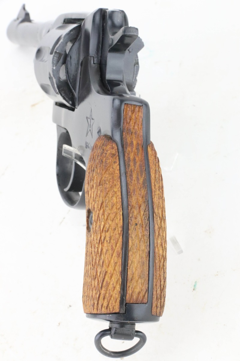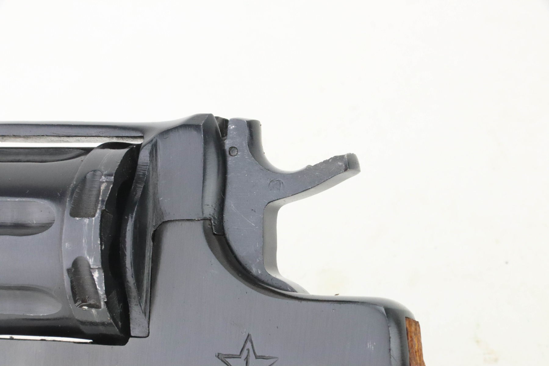 09/09/2024 – For sale is a Tula Nagant Model 1895 revolver chambered in 7.62 Nagant made in 1943. The revolver had undergone post war refurbishment and has the enamel finish applied to all the metal. The bore is very bright with good rifling. The revolver has matching numbers on the frame, cylinder, and trigger guard. The revolver comes with a post war holster.