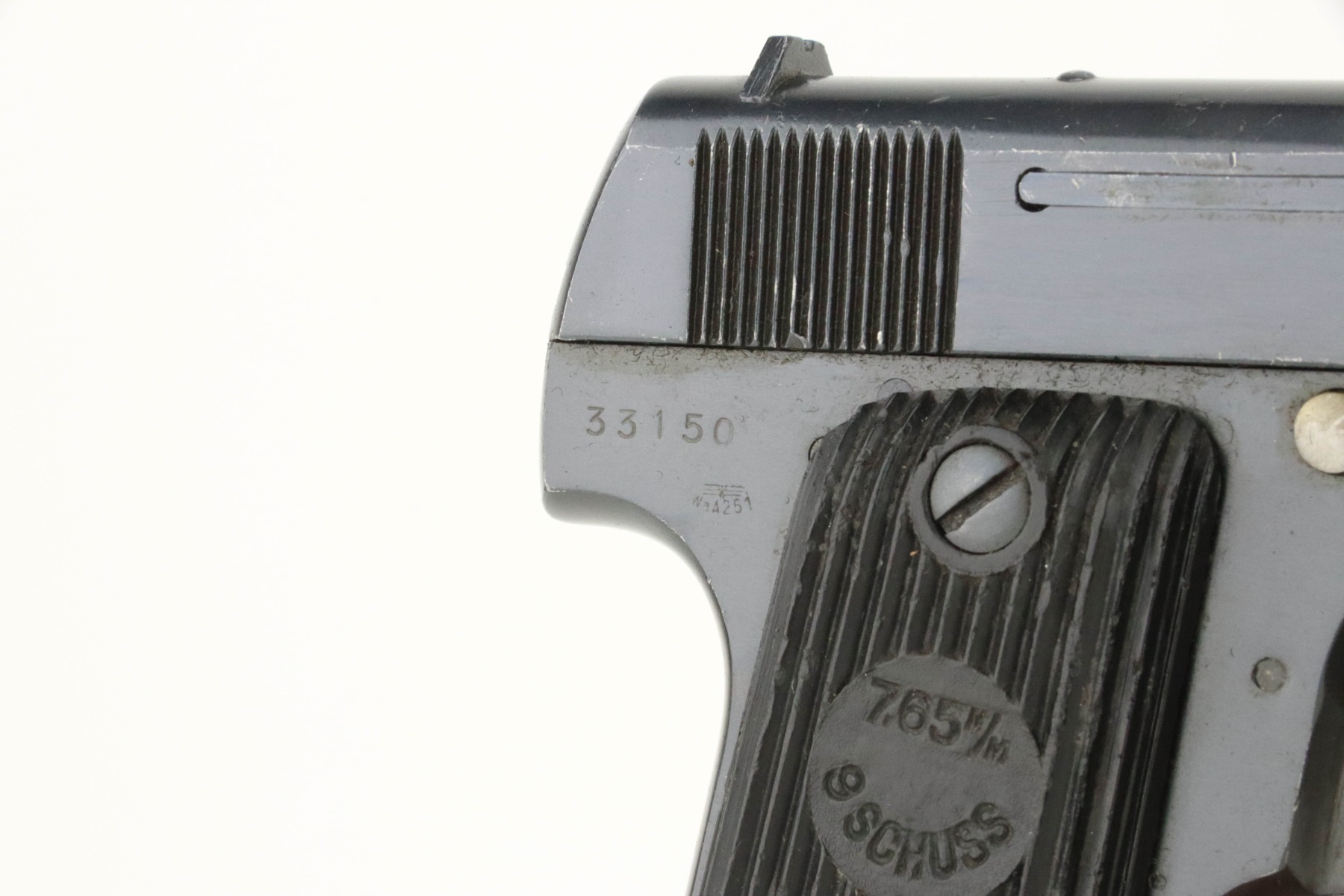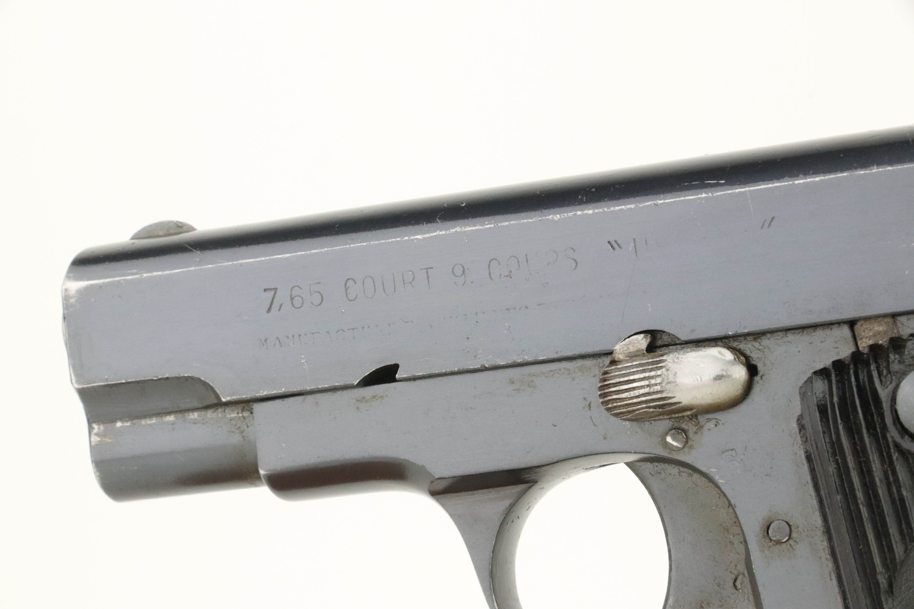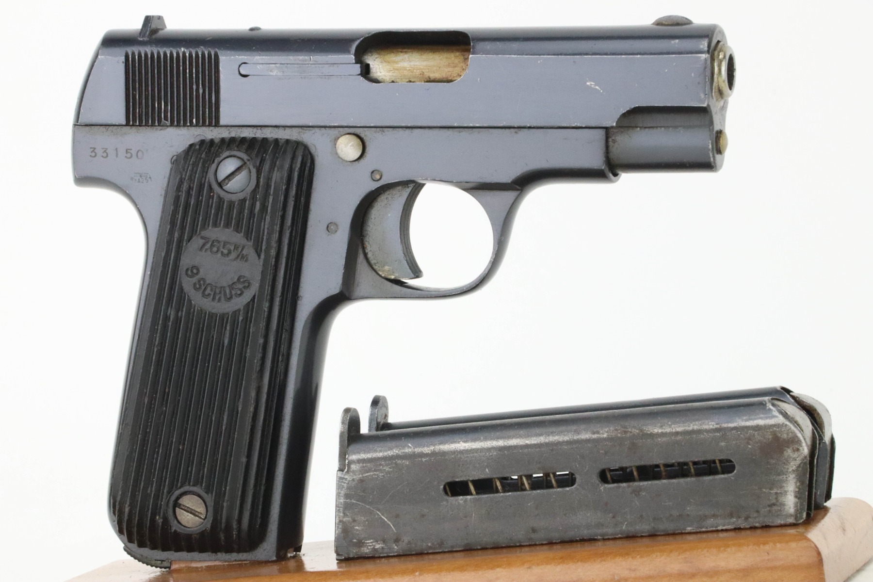 09/09/2024 – For sale is a Unique Model 17 pistol issued to the German army during WW2. The pistol is in great condition overall but we believe has been reblued some time in its past. The pistol has Eagle proofs on the back of the frame on the right side of the gun. The bore is bright with some signs of wear. The pistol comes with one spare magazine and a well worn holster.