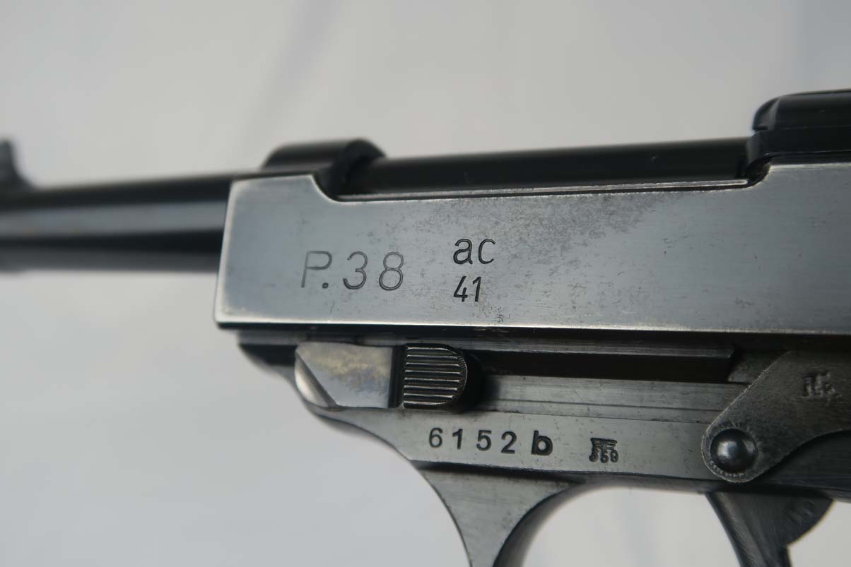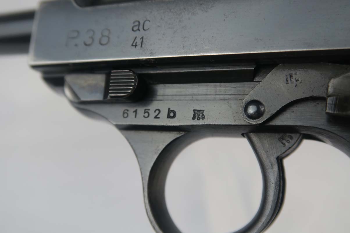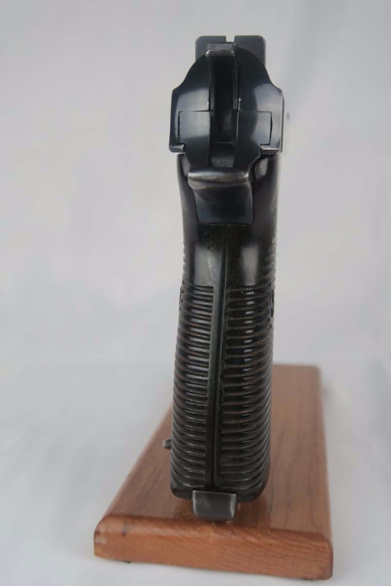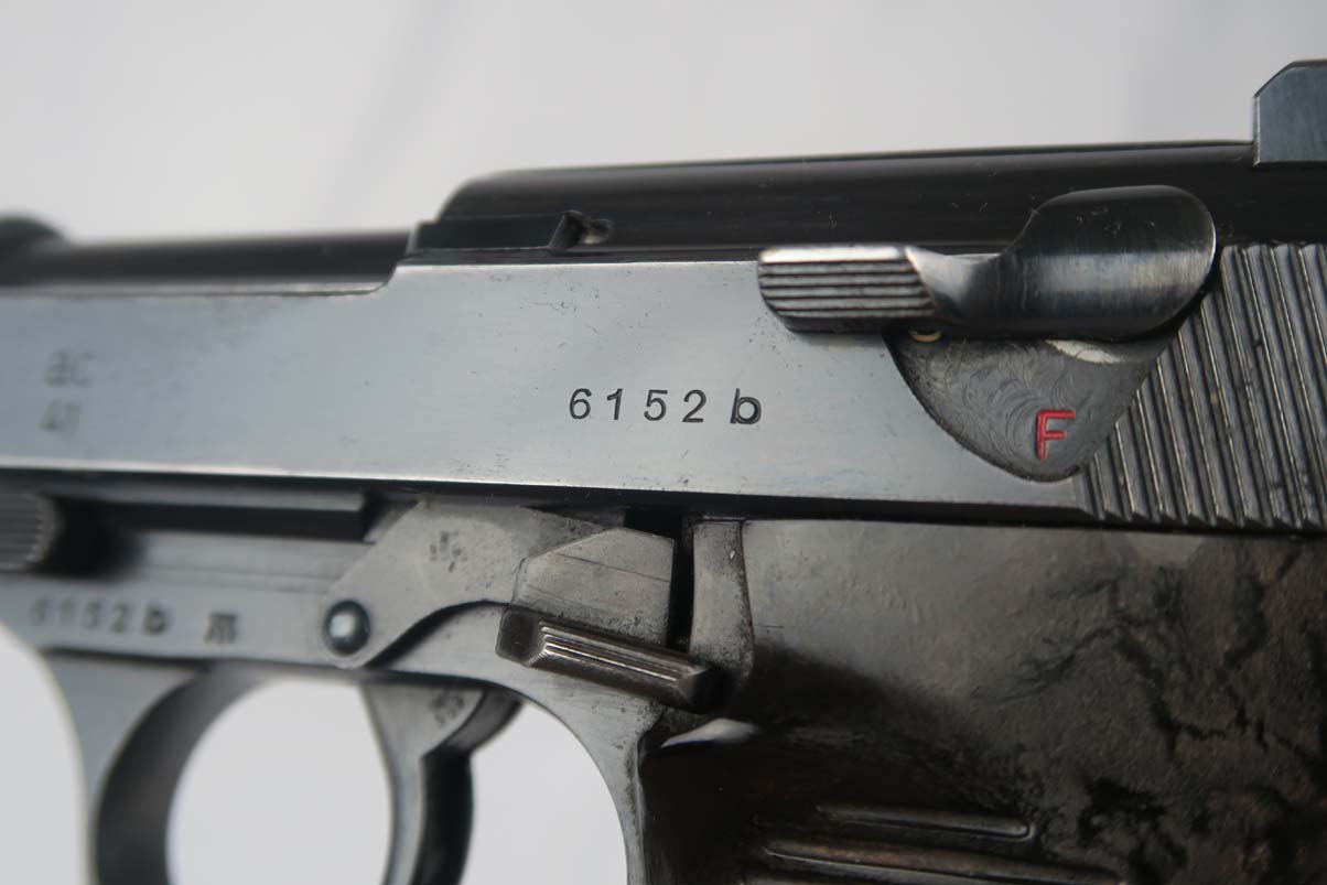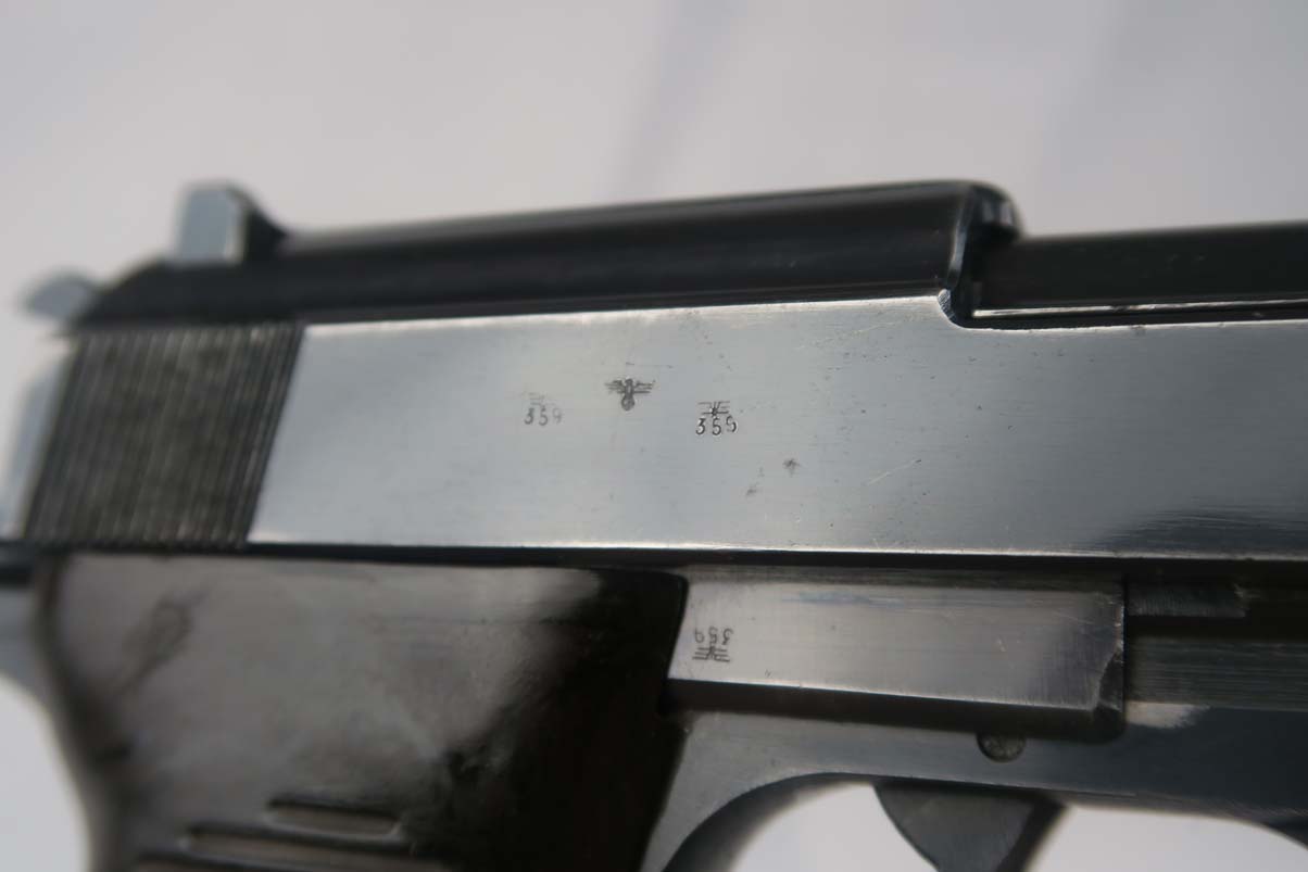 7/21/17 – This is a nice high-polish Walther ac 41. It is a second variation pistol with high-polish blue but no ‘ac’ proof on the trigger guards. It is all original and matching. All small parts are E/359 proofed, as they should be. Finish rates at about 95% with minor edge wear and some patina on the front strap. E/359 proofed grips and mag, as well. Excellent bore.
