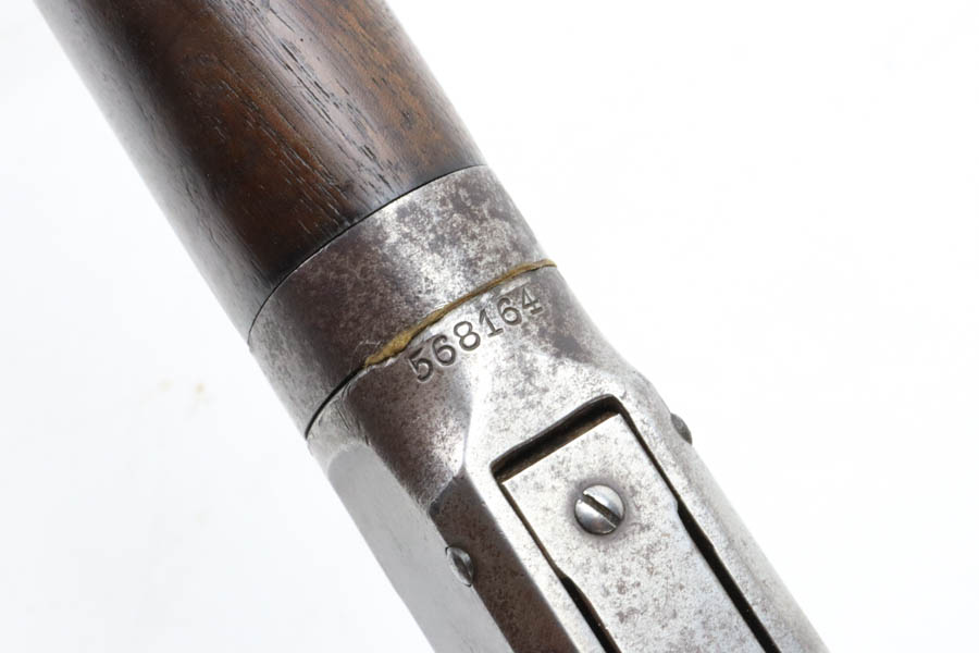 06/24/2024 – For sale is a Winchester Model 1894 made in 1911. This rifle has a full-length magazine tube and a 26″ barrel. The rifle is in good condition overall with the aged receiver browning with age and spots of oxidation. The barrel and magazine tube have their original bluing but spots of oxidation are visible. The stock and forestock are in great condition and have no cracks. The rifle is equipped with a tang rear sight but the spring is slightly weak and doesn’t lock into place easily. The bore is excellent for its age and well maintained. It is bright but fully frosted over with great rifling.