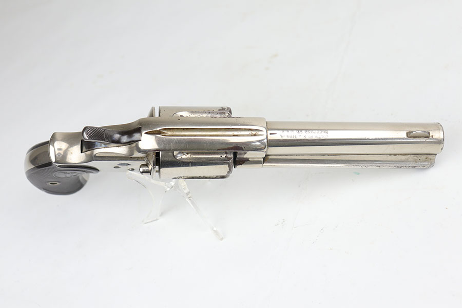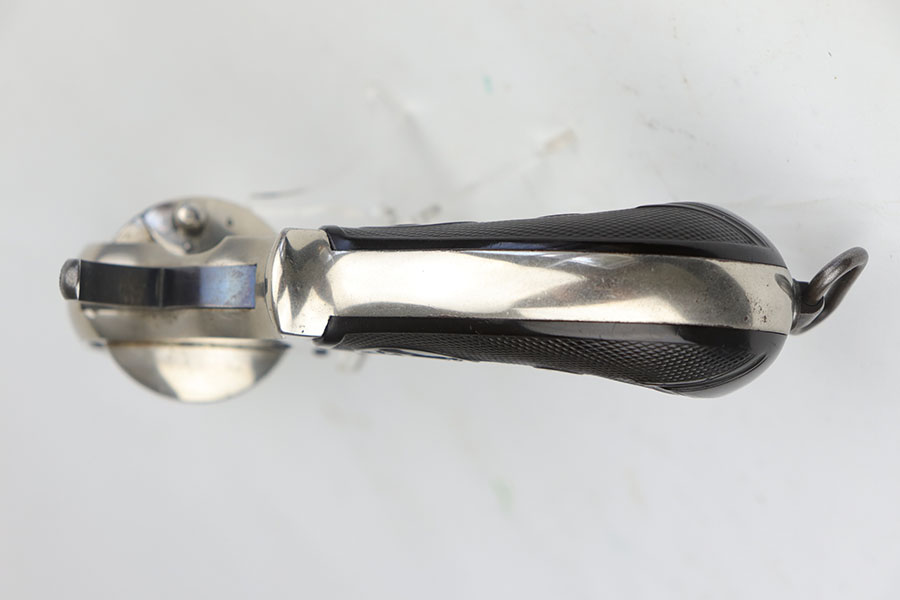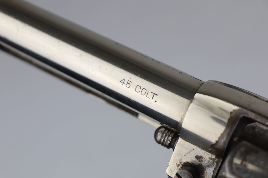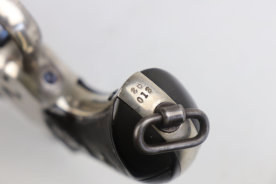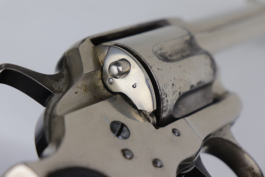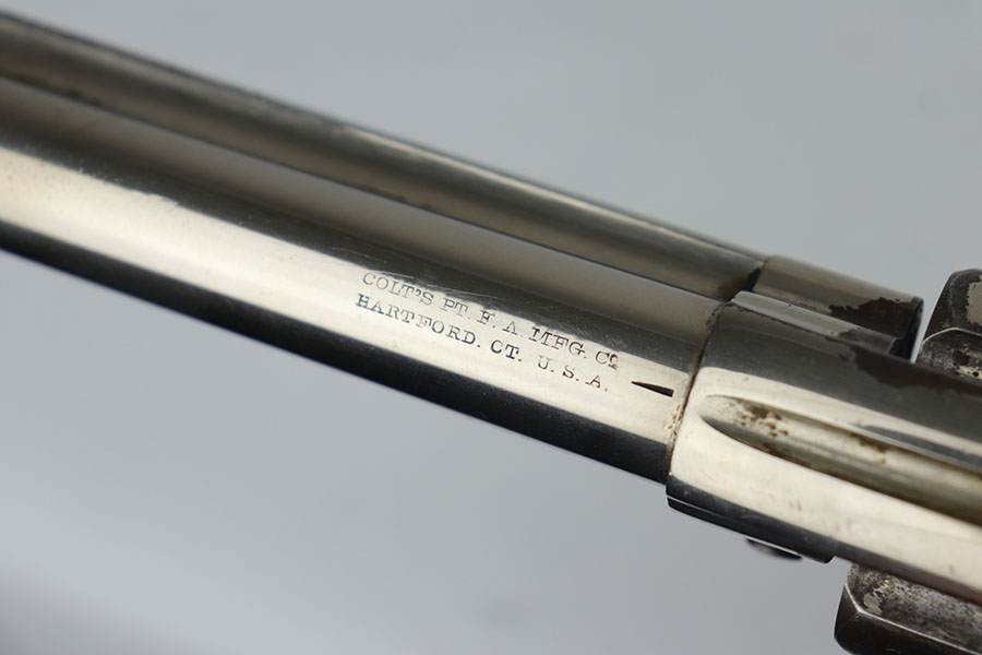 8/4/20 – This is an early 1878 Double Action Colt made in 1881, with original nickel finish. Antique so no license required. It has the desirable 4.75 inch barrel and comes in .45 caliber. The gun has excellent original grips. The nickel finish is better than most but still has worn away in just a few spots as can be seen in the photos. The hammer, trigger and screws/pins still have lots of blue finish to them. The action is very tight and timing is excellent. Also has a very good bore. Overall a very good shooter which is also an excellent collector grade Colt that was made in the 3rd year of production. We did not get a letter but it is factory nickeled.
