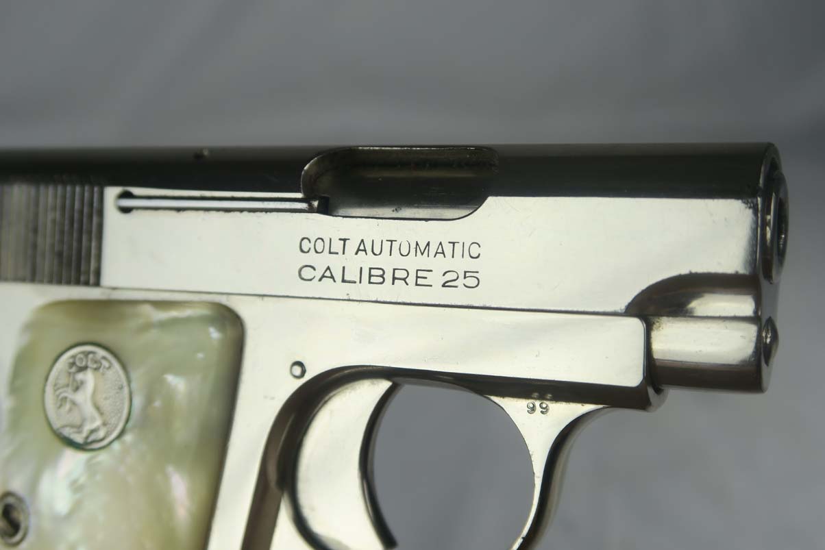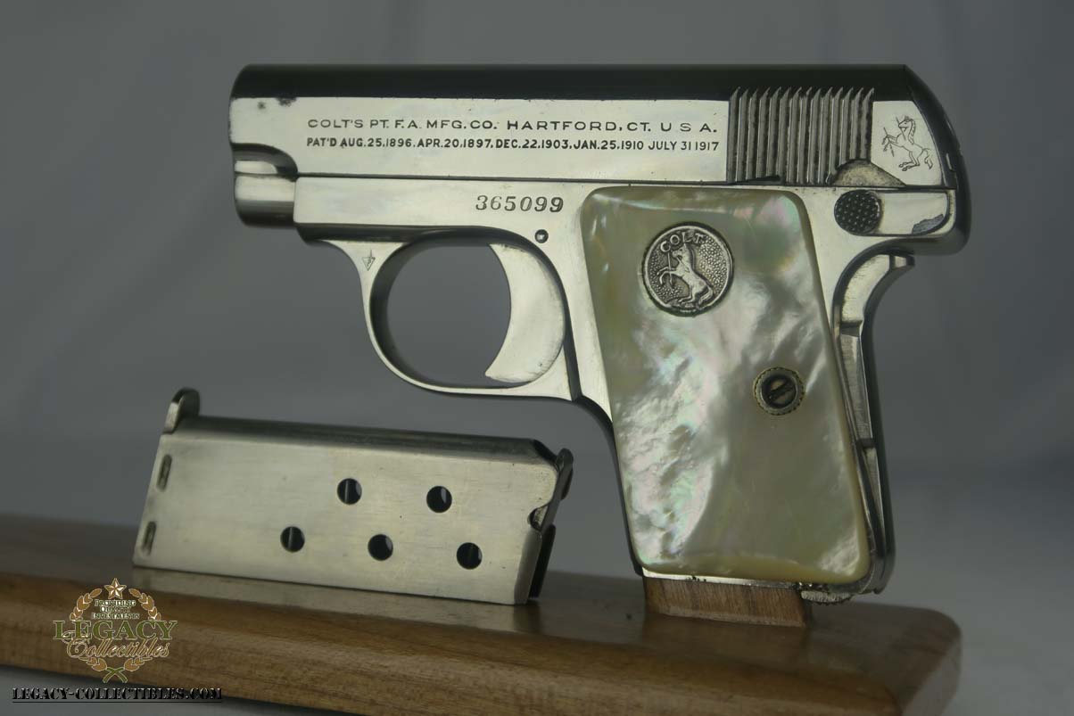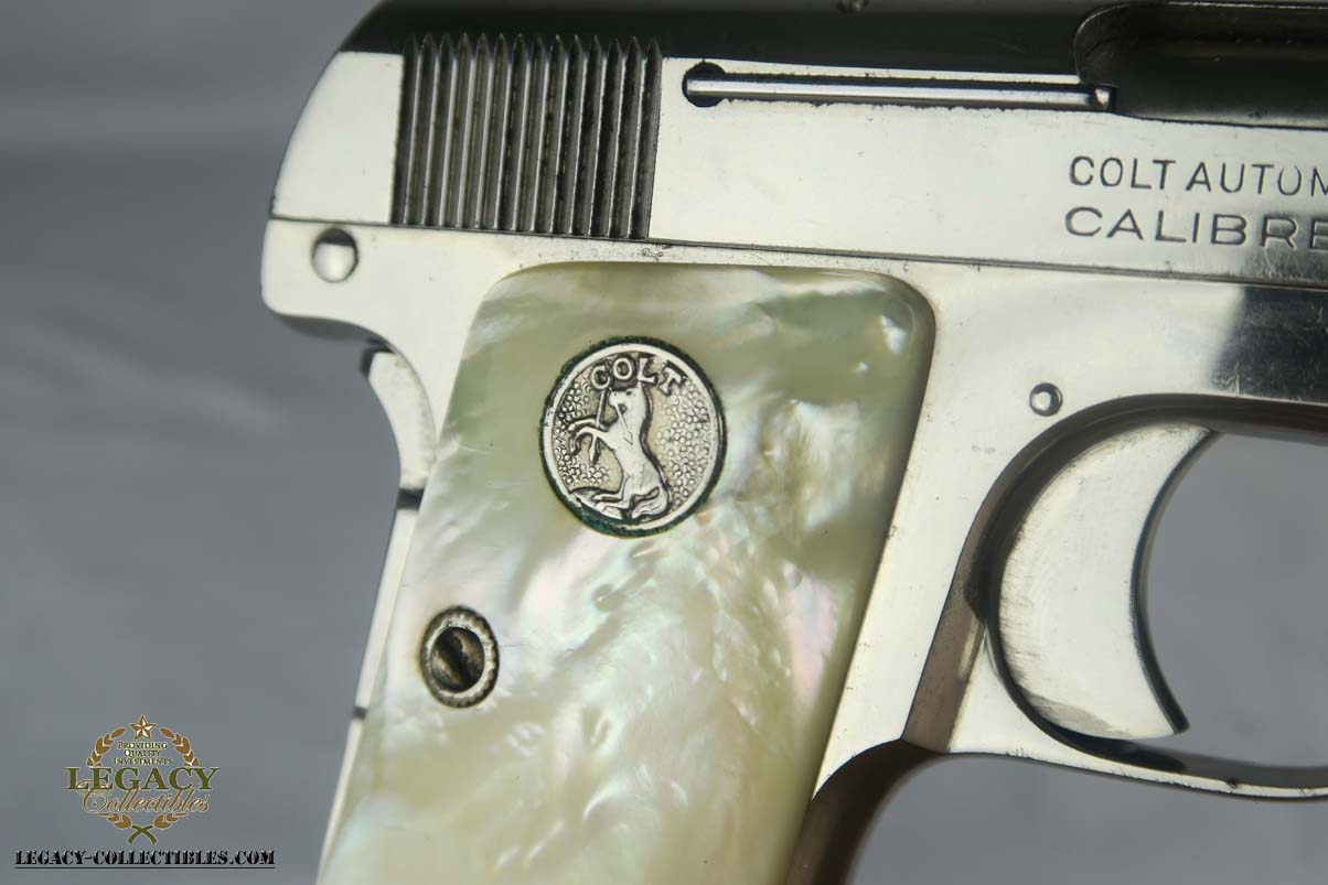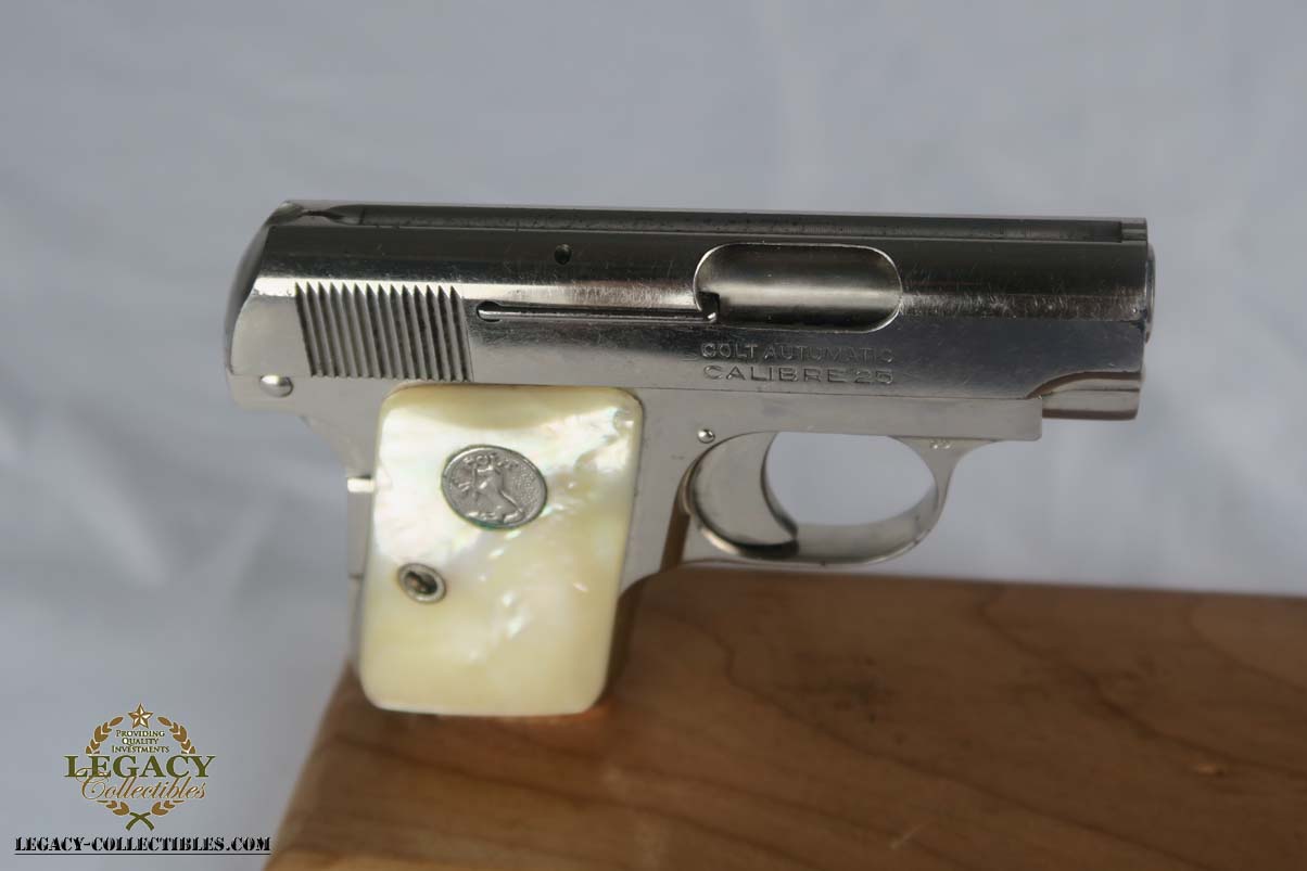 SOLD – Nickel Colt Model 1908 Vest Pocket – Pearl Grips