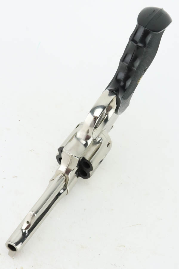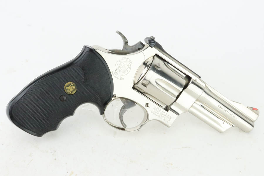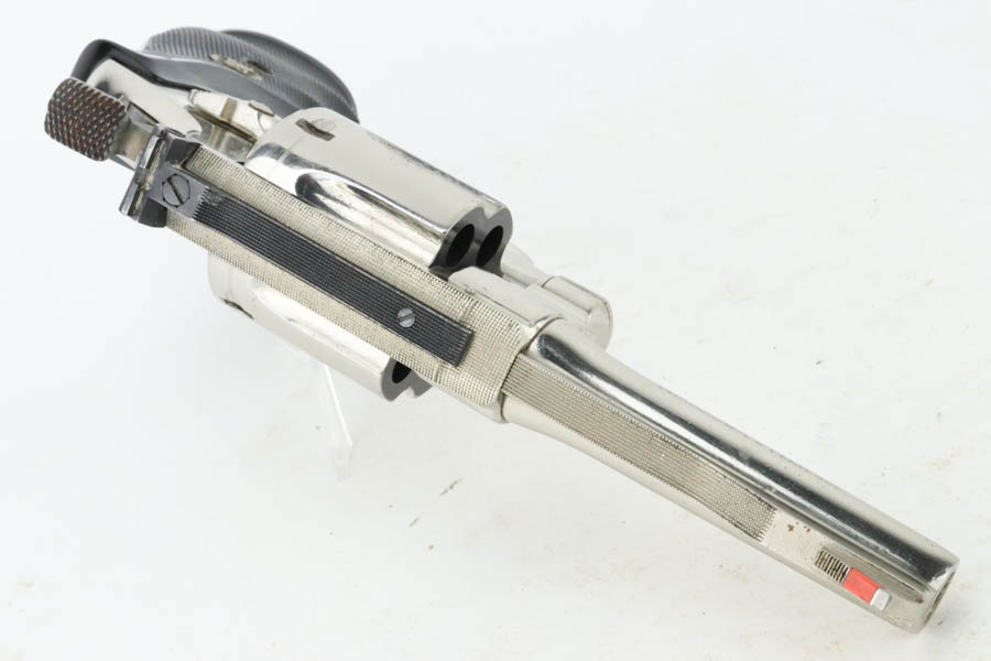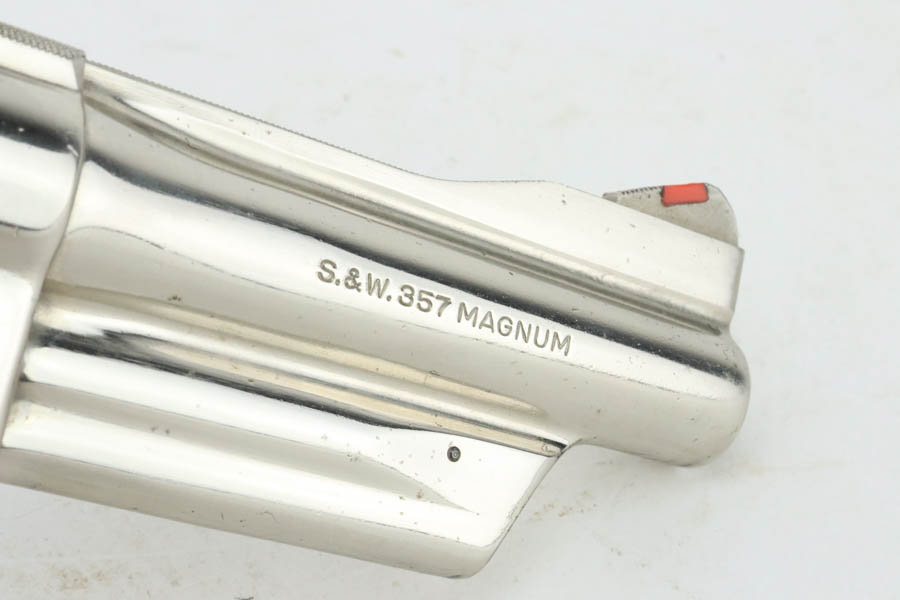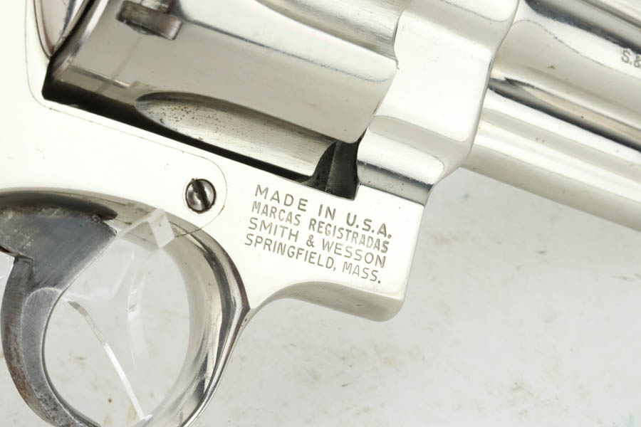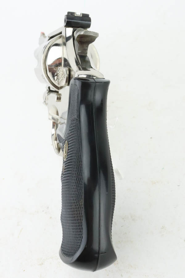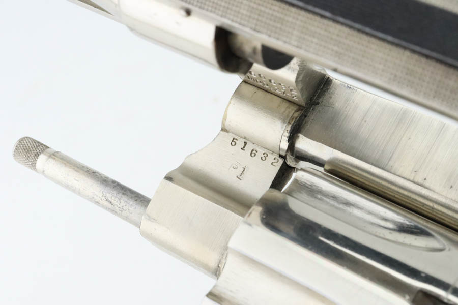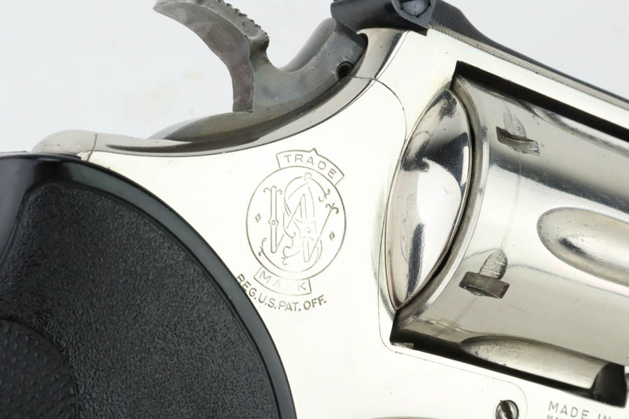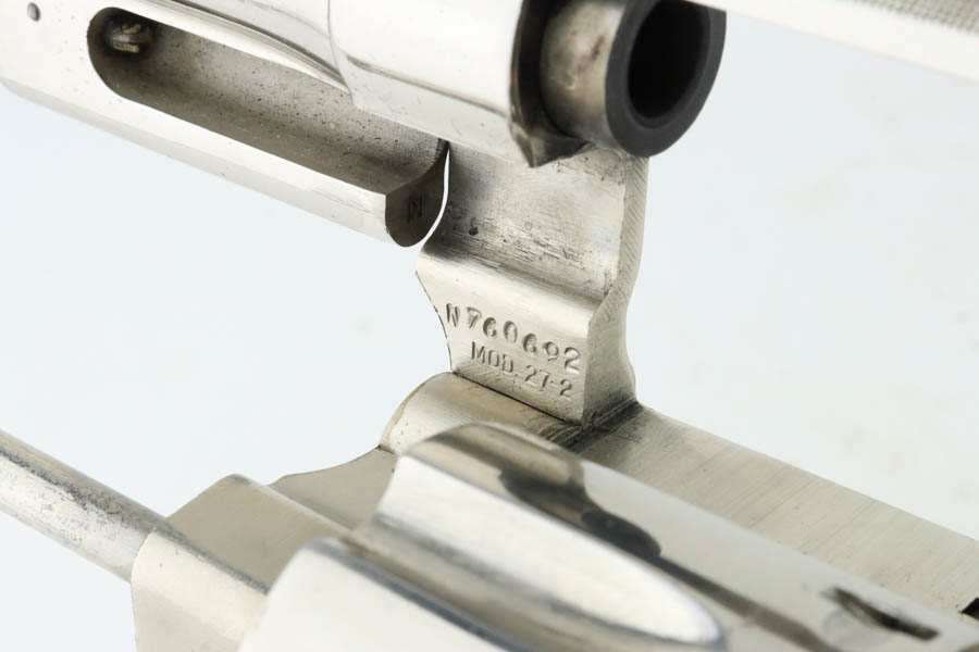 7/15/24 – This is a very nice example of a Smith & Wesson 27-2 Revolver from 1980. Chambered in .357 Magnum with a 4 1/8 inch barrel. It has retained nearly all of its shiny nickel finish, but there are some areas of light freckling here and there. Roll mark on the cylinder. Comes fitted with black rubber Pachmayr grips. Mint bore.