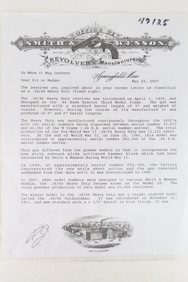 SOLD – Nickeled Smith & Wesson .38/44 Heavy Duty – With Factory Letter