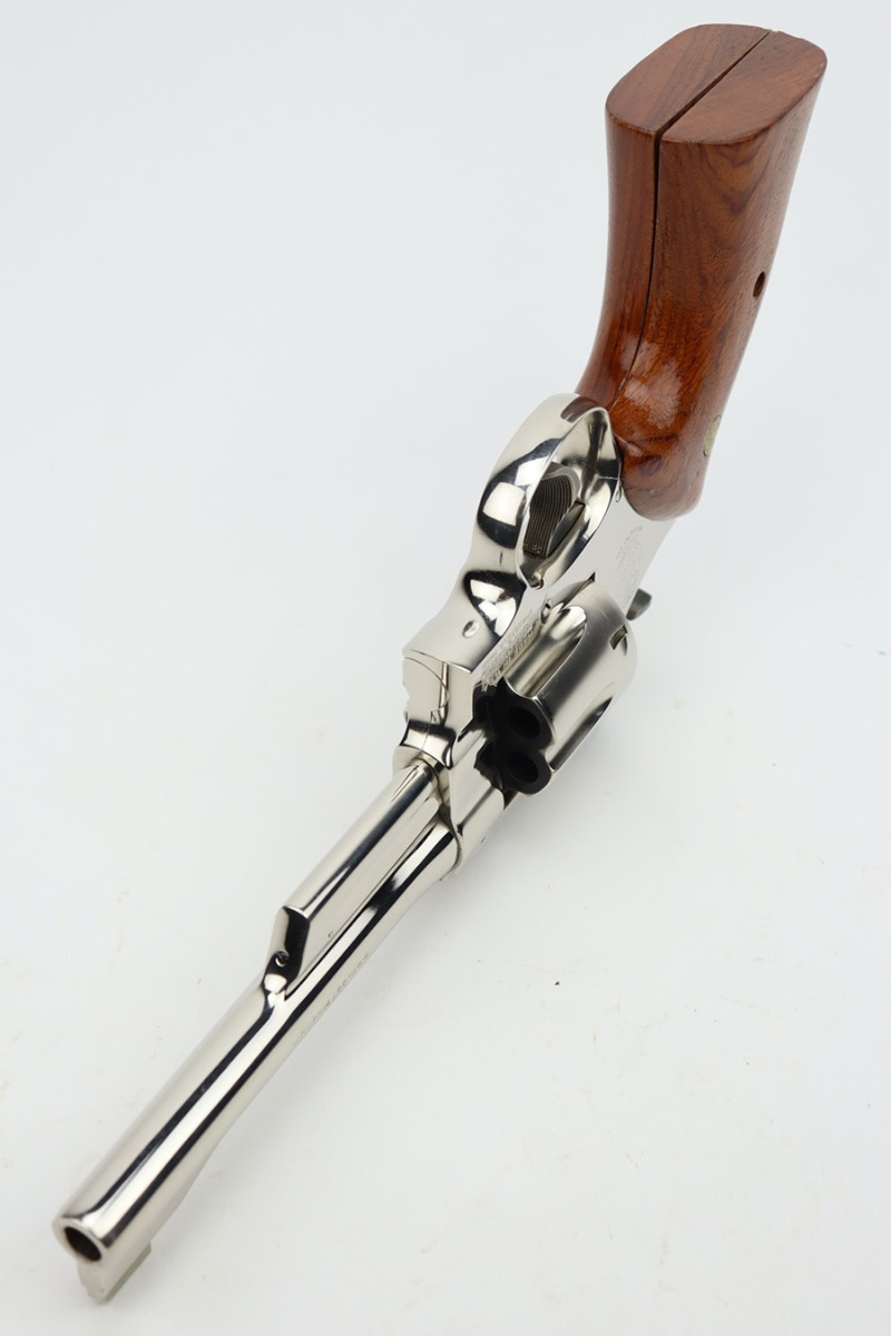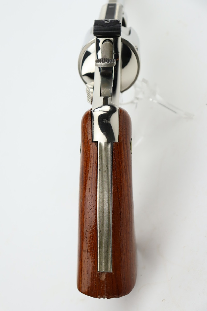 12/5/23 – This is a minty example of a S&W 27-2, manufactured in 1978 and chambered in .357 Magnum. 6″ barrel. The gun is minty with just some tiny micro-scratches here and there and a very light roll mark on the cylinder. Fitted with excellent wood grips. Near-mint bore.