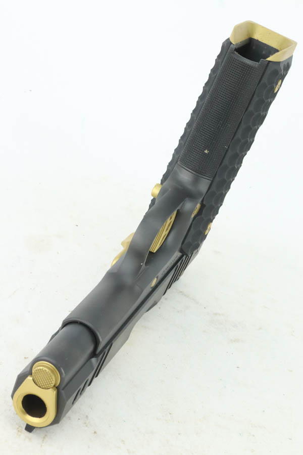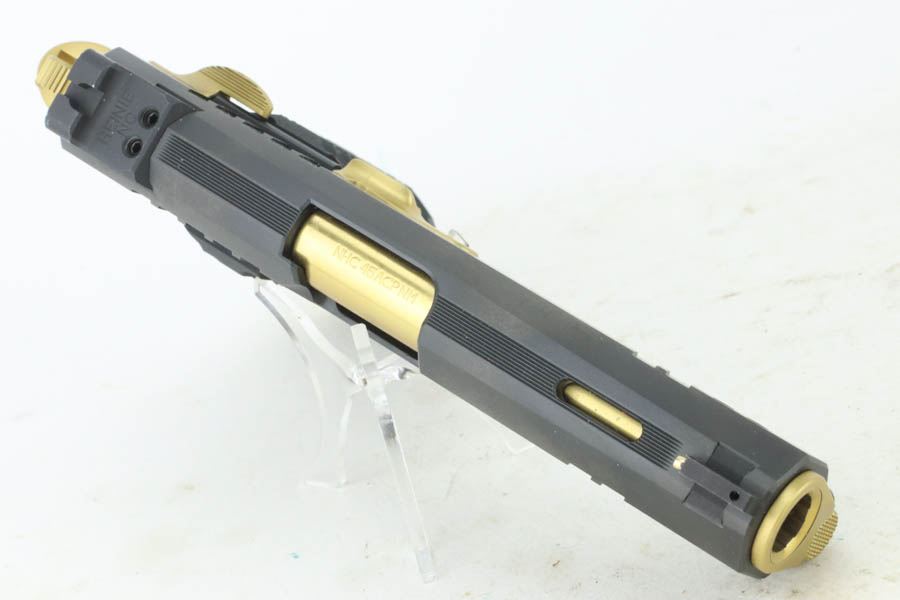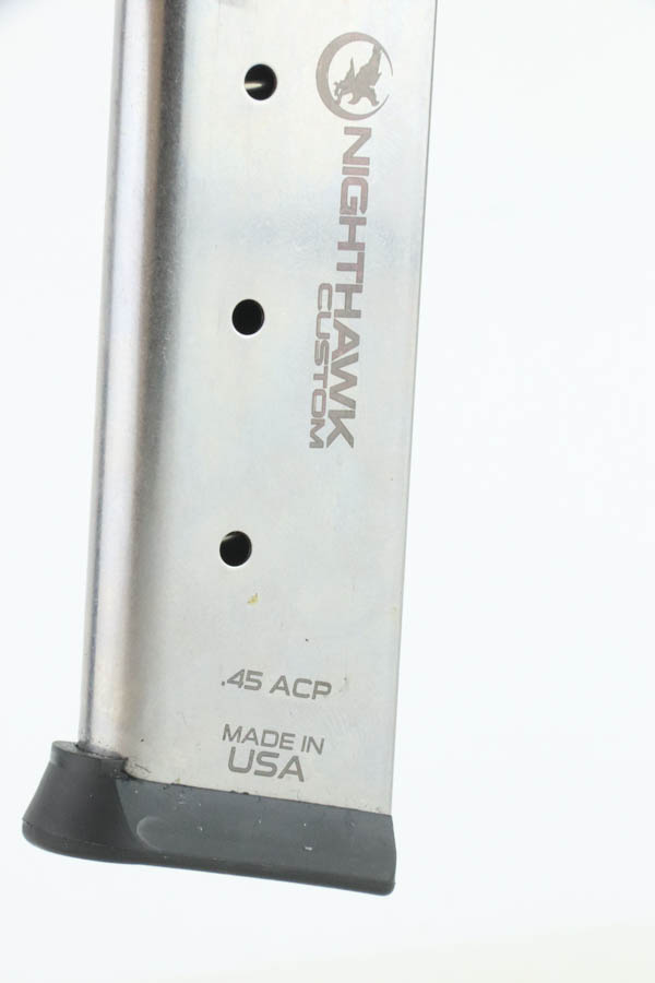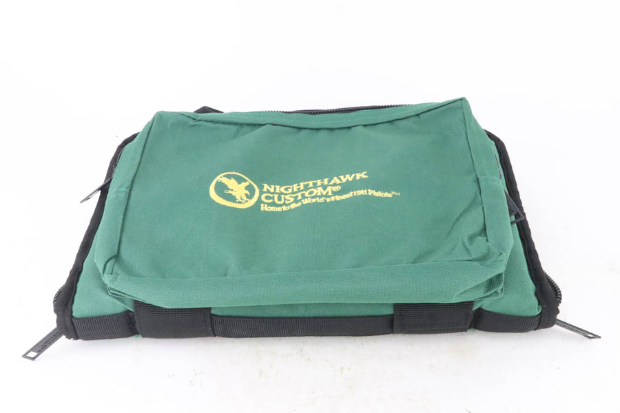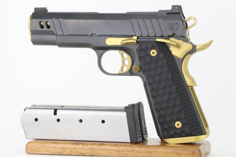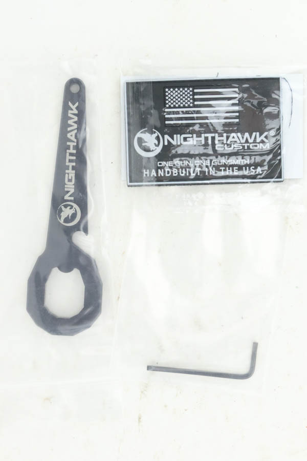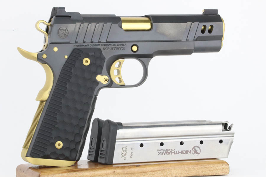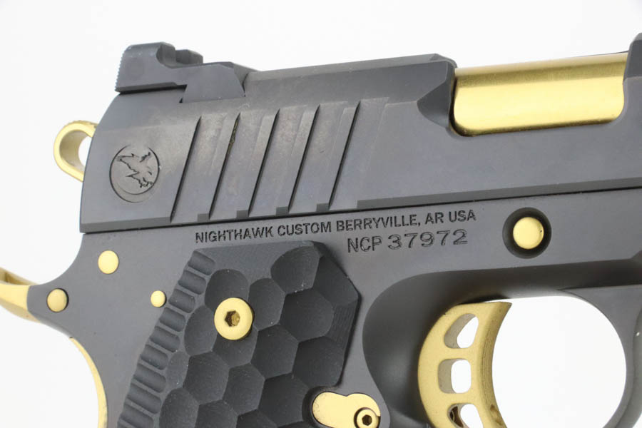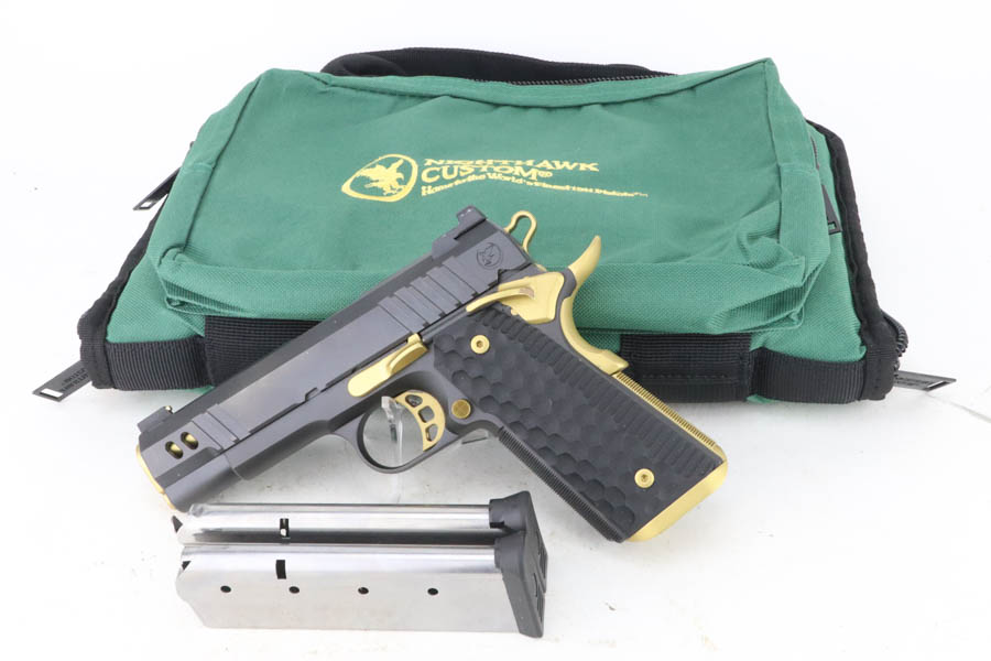 7/24/24 – This a beautiful example of a Nighthawk Custom TR4 1911, chambered in .45 ACP NM. This one has a matte black finish with gold-gilded small parts. Fitted with scalloped black composite grips. It comes with its original soft case, owners manual, sales papers, tool, and two magazines. The gun is mint with virtually no signs of wear or use except for one small spot of wear on the thumb safety. Minty bore.