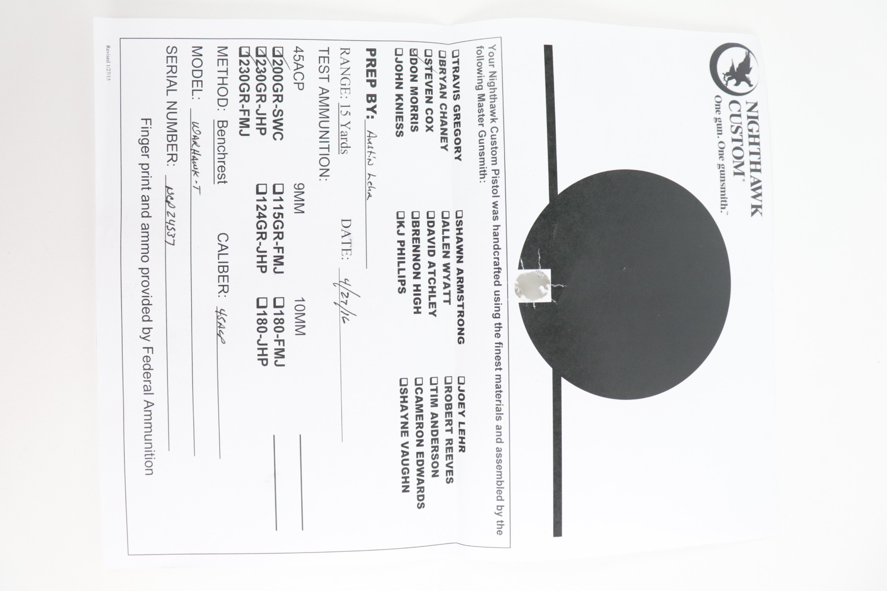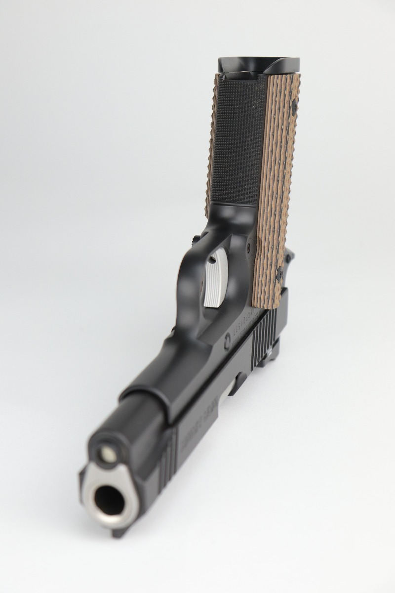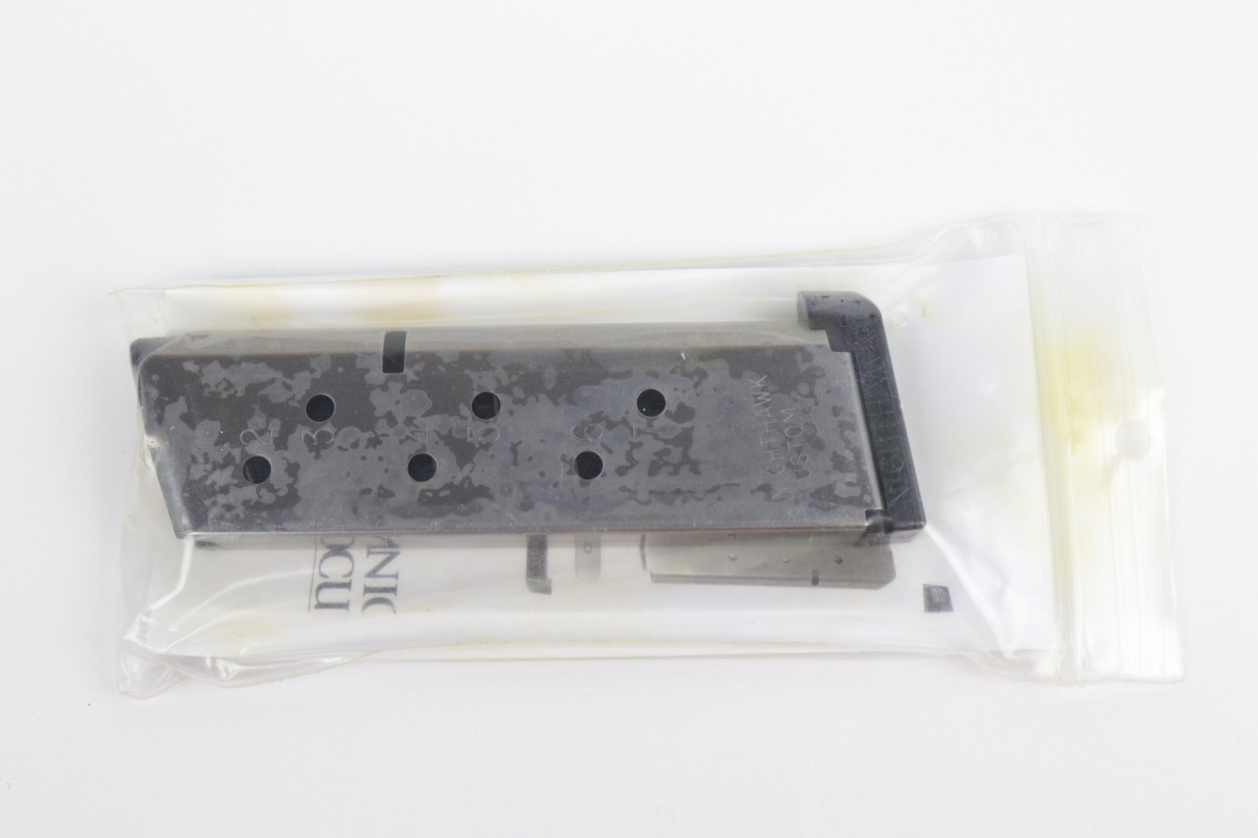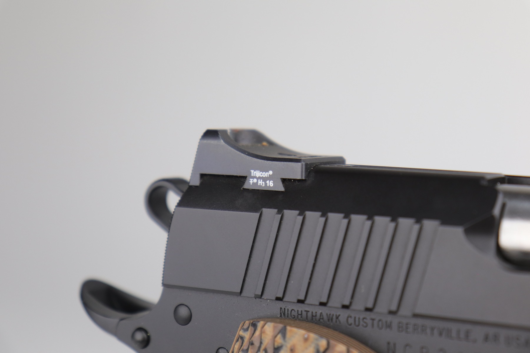 12/10/20 – This is a mint, like-new Nighthawk Custom War Hawk Compact Pistol, chambered in .45 ACP. 4.25″ barrel. It comes with the original soft range case, two 7-rd magazines, paperwork (including owners manual), tools, gun oil, and original test fire shell. The gun is fully functional and there are no apparent signs of wear. Mint bore. Here is a description from the website: In conjunction with the design of the full size War Hawk® Recon and War Hawk® Government, we developed a carry gun built to Nighthawk’s exacting standards, the War Hawk® Compact. This model has many of the same features as the full size model. The slide has the same unique multi-faceted slide top and top serrations that come to an arrow point as the full size model. The Compact model also incorporates the EVERLAST™ Recoil System that allows shooters to go over 10,000 rounds without a recoil spring change. This model is the first model to include our brand new, fully machined Officer size, one piece mainspring housing /magwell. This model comes standard with Heinie Slant Pro night rear sight and a Tritium front sight well as a solid aluminum match-grade trigger. The War Hawk Compact is not only a beautiful gun, but a great choice for a daily carry weapon.
