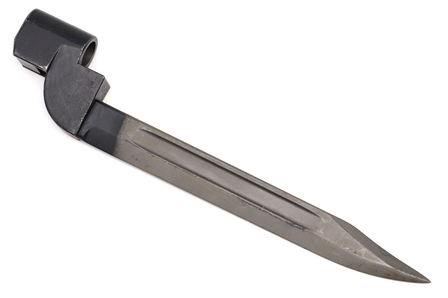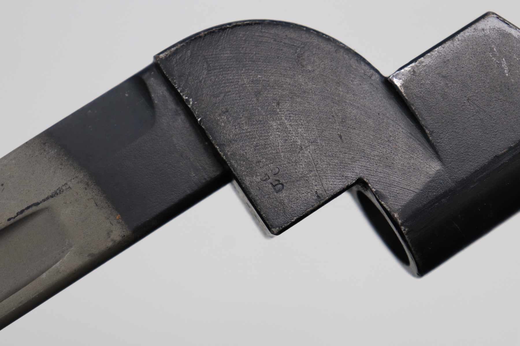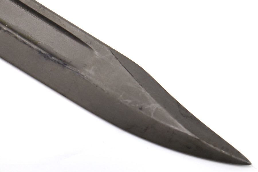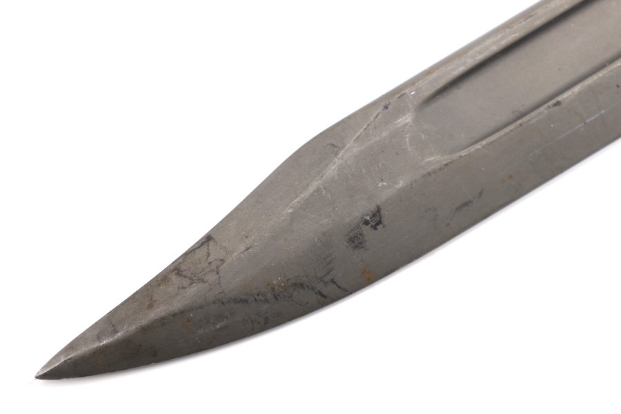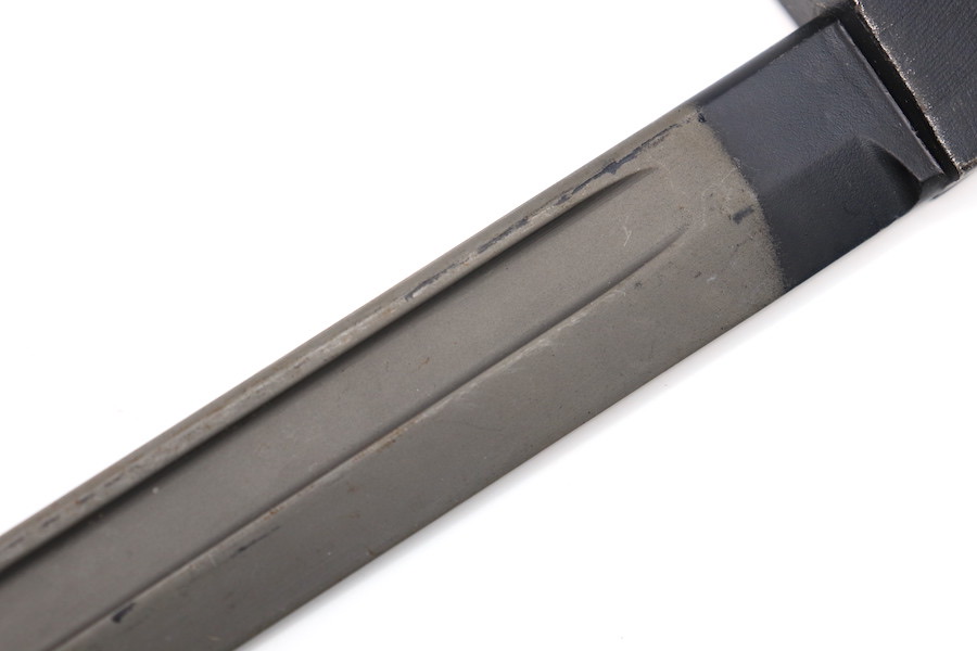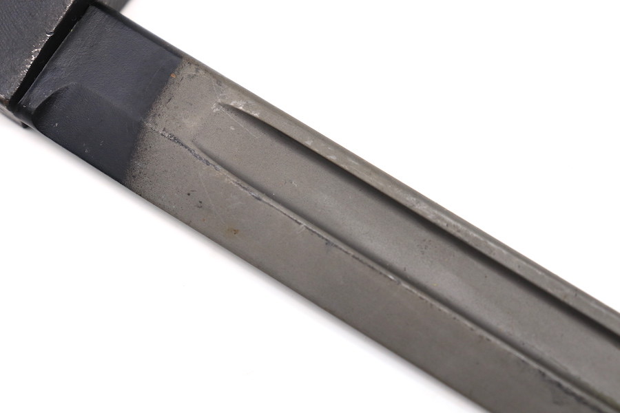 9/12/23 – This is a great condition example of No9 Mk1 British bayonet. Overall no major issues, just minor use wear near the tip. The socket is stamped (P) 1949 making it a final year production bayonet.