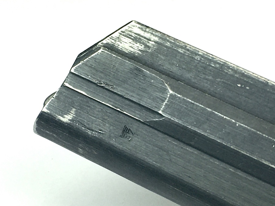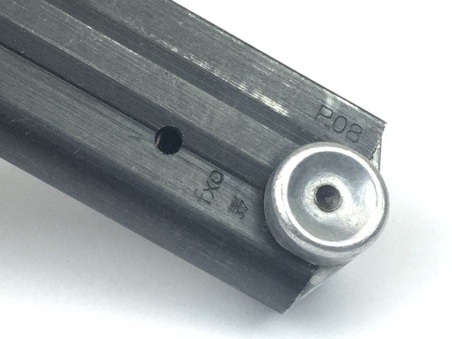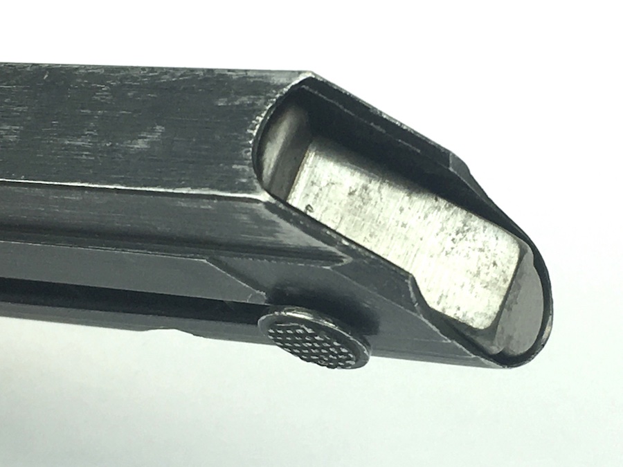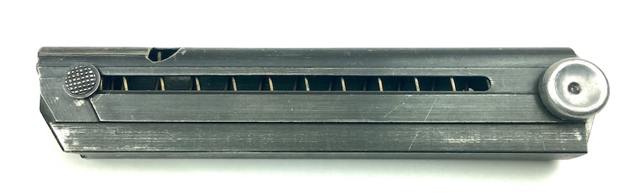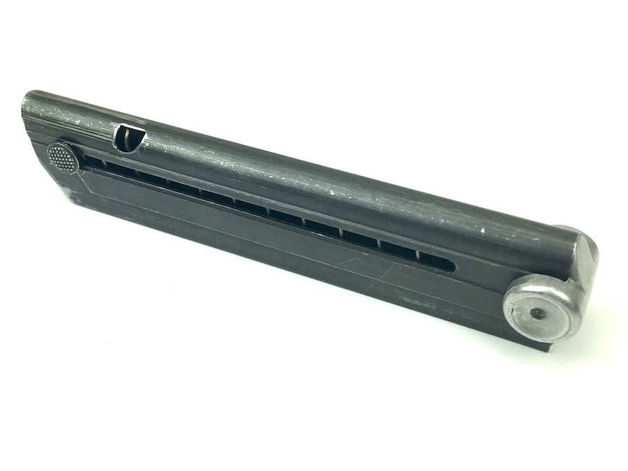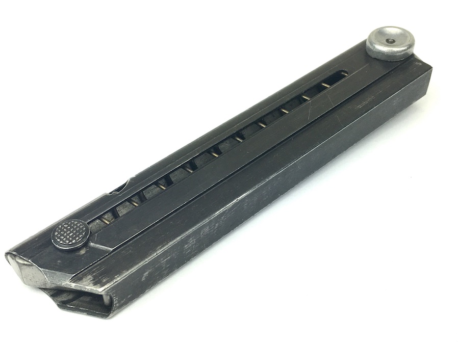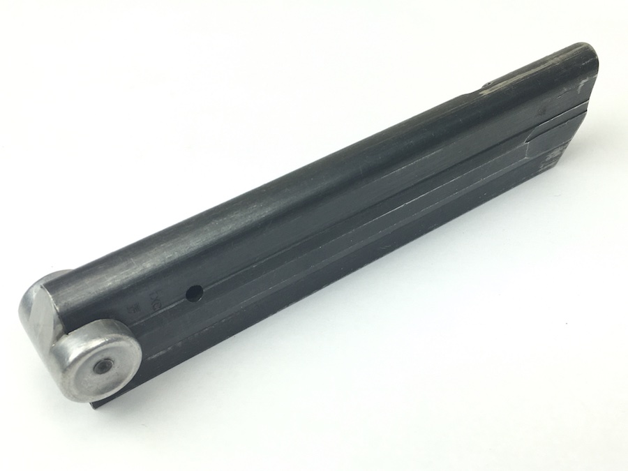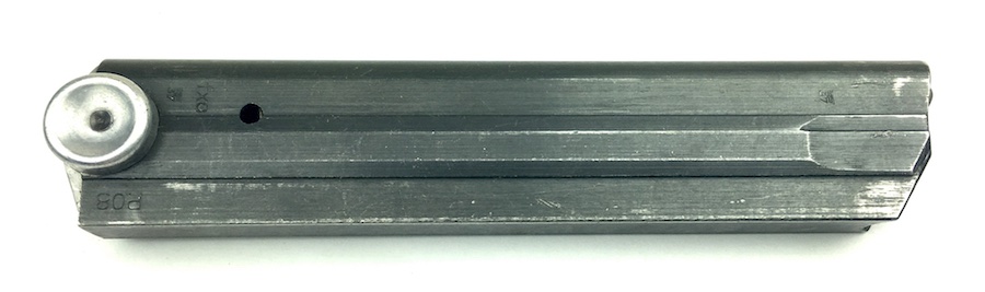 11/5/19 – This is an original WW2 production luger magazine with an aluminum base that has no serial number. The magazine is in very nice condition overall with no major flaws, rust , or pitting. The side of the tube is “fxo” “P.08”. FXO is a code for Haenel, who made high quality magazines during WW2. All original and fully functional.