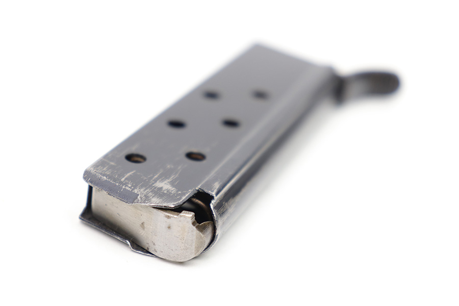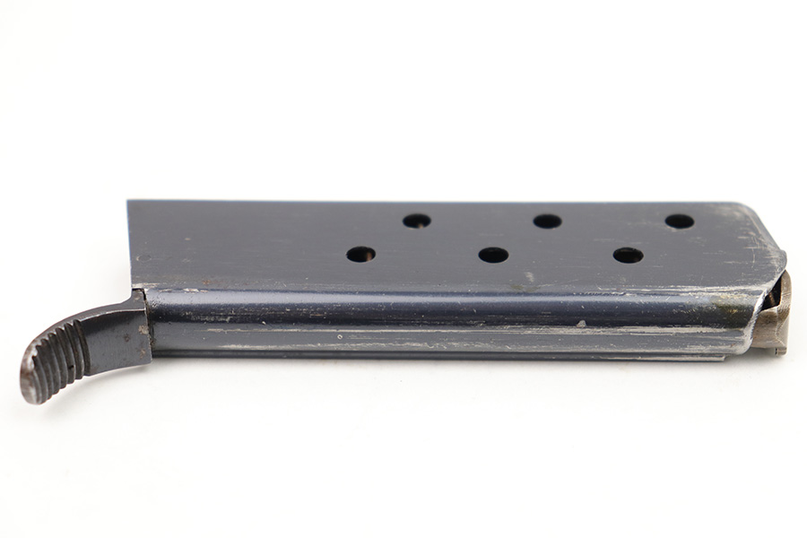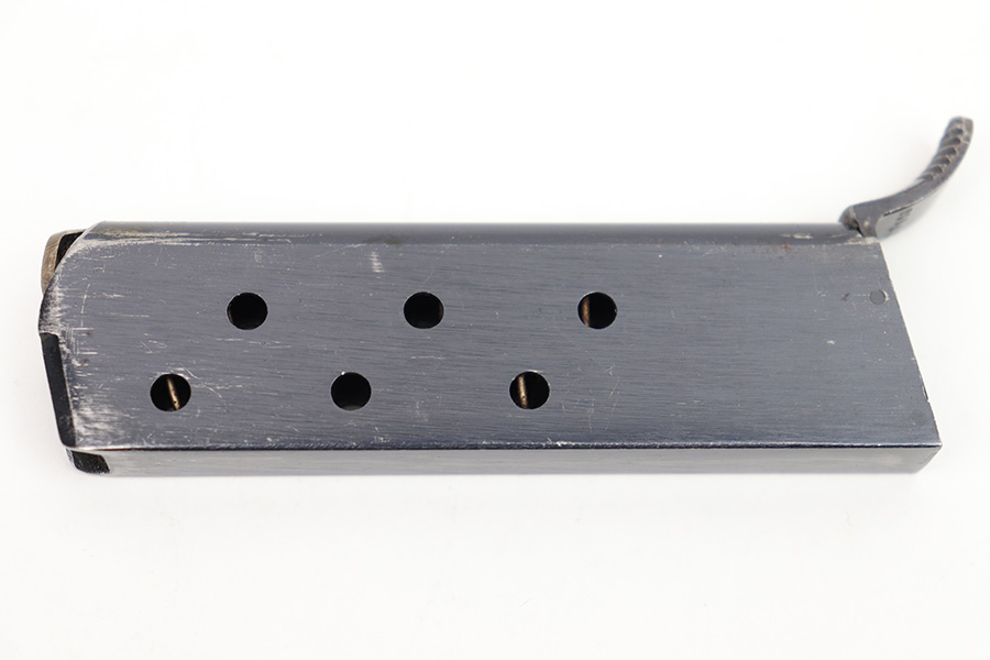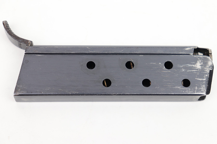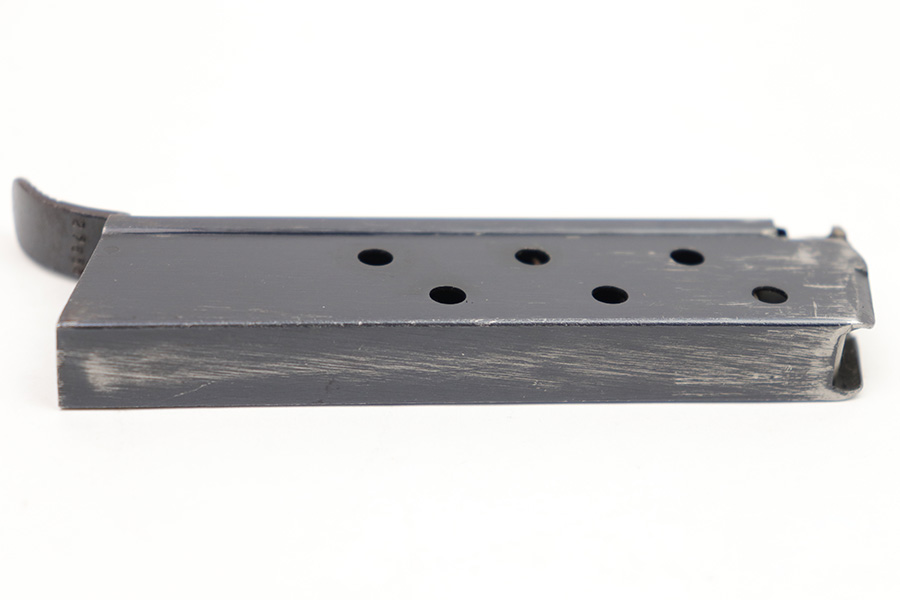 2/7/23 – This is a numbered Femaru 37M magazine from WW2. The base of the magazine is numbered on the interior of the finger extension, as shown. The magazine has all original blued finish mostly intact with some mild finish loss but no rust or pitting. The spring is strong and fully functional.