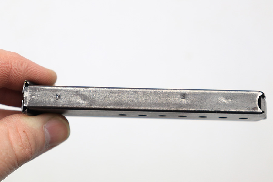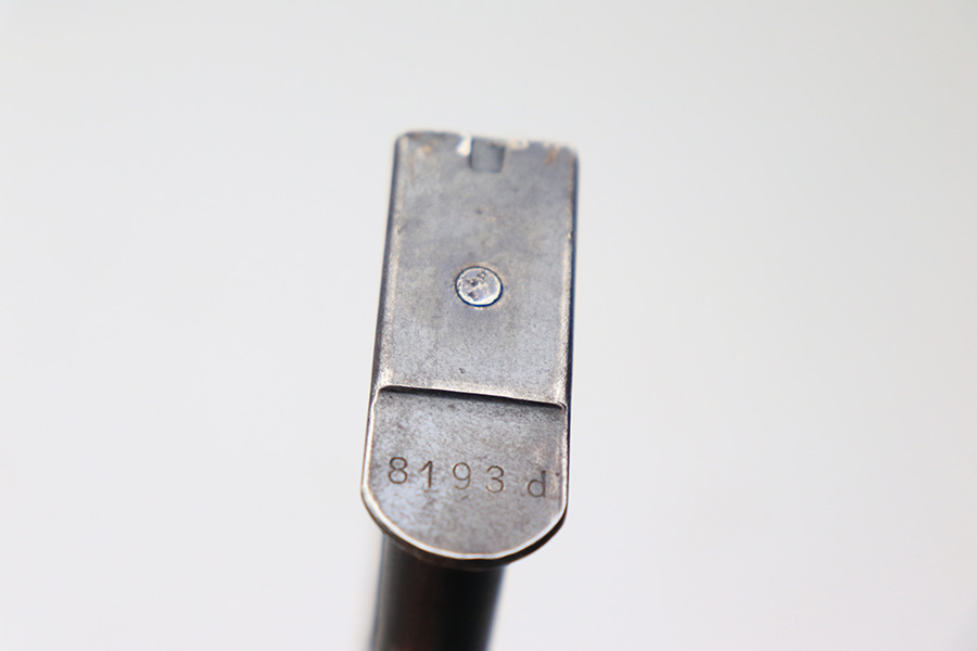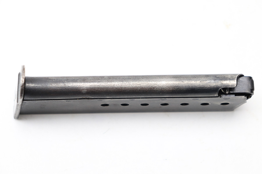 4/25/22 – This is an early AC 40-42 P.38 magazine. The magazine has two eagle 359 proof stamps on the spine and a serial numbered base. The base is stamped “8193d”. The magazine is all original with some mild finish loss throughout the tube, but no rust or pitting. The spring is strong and fully functional.