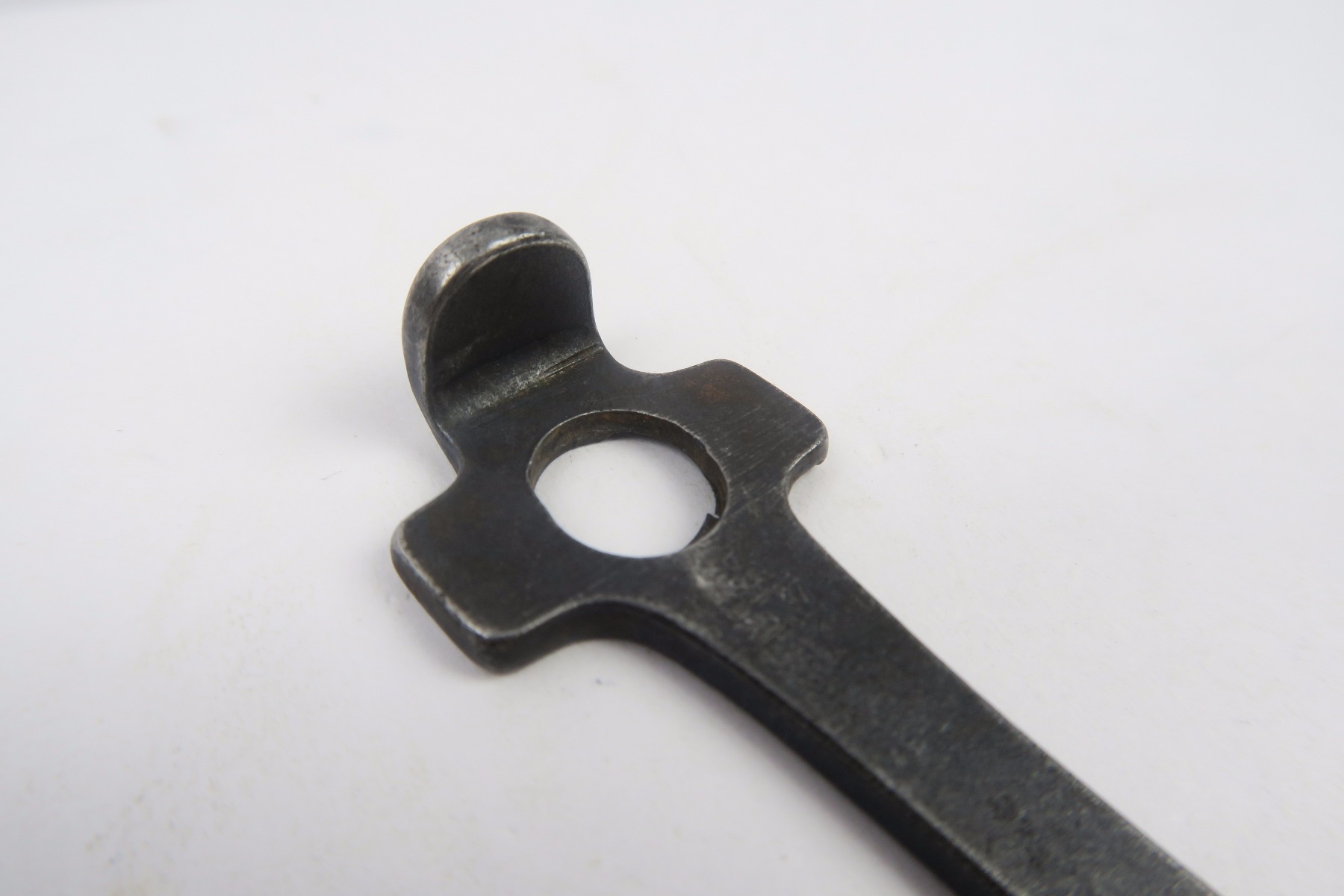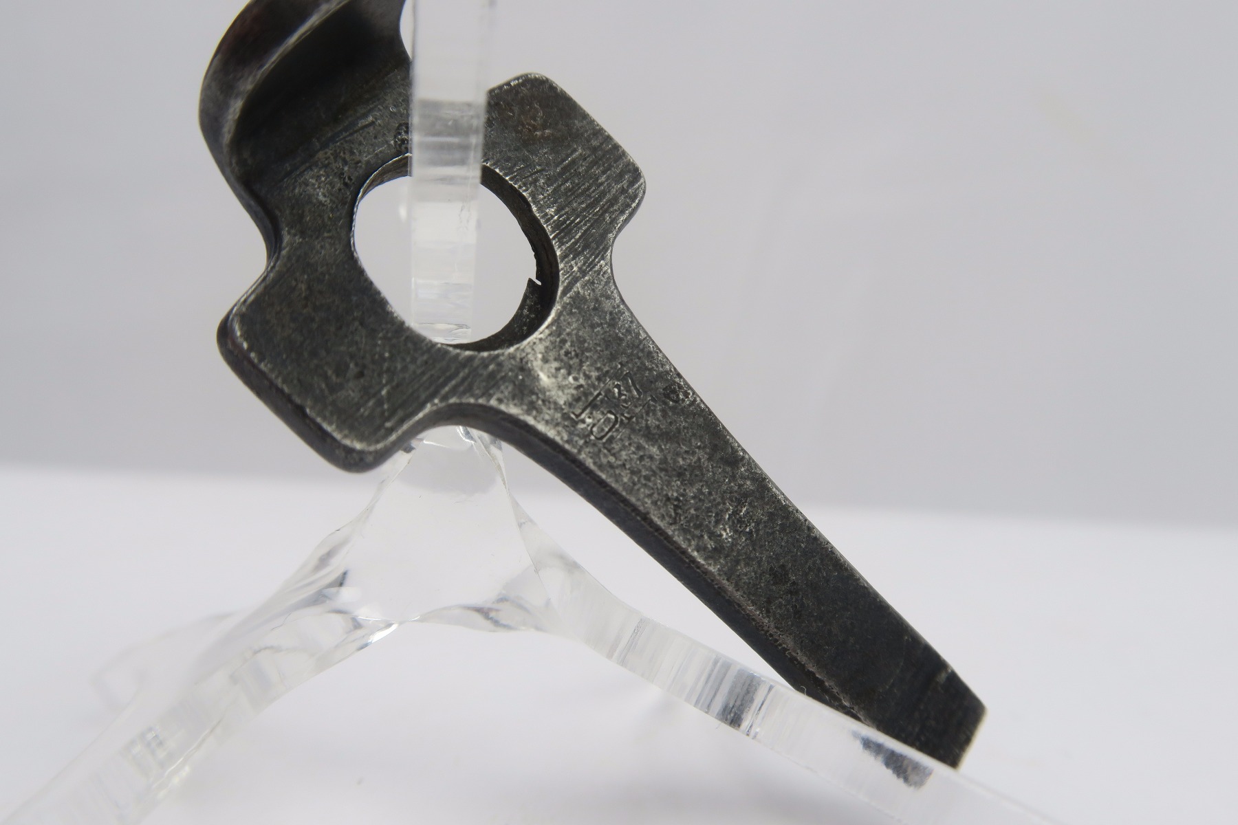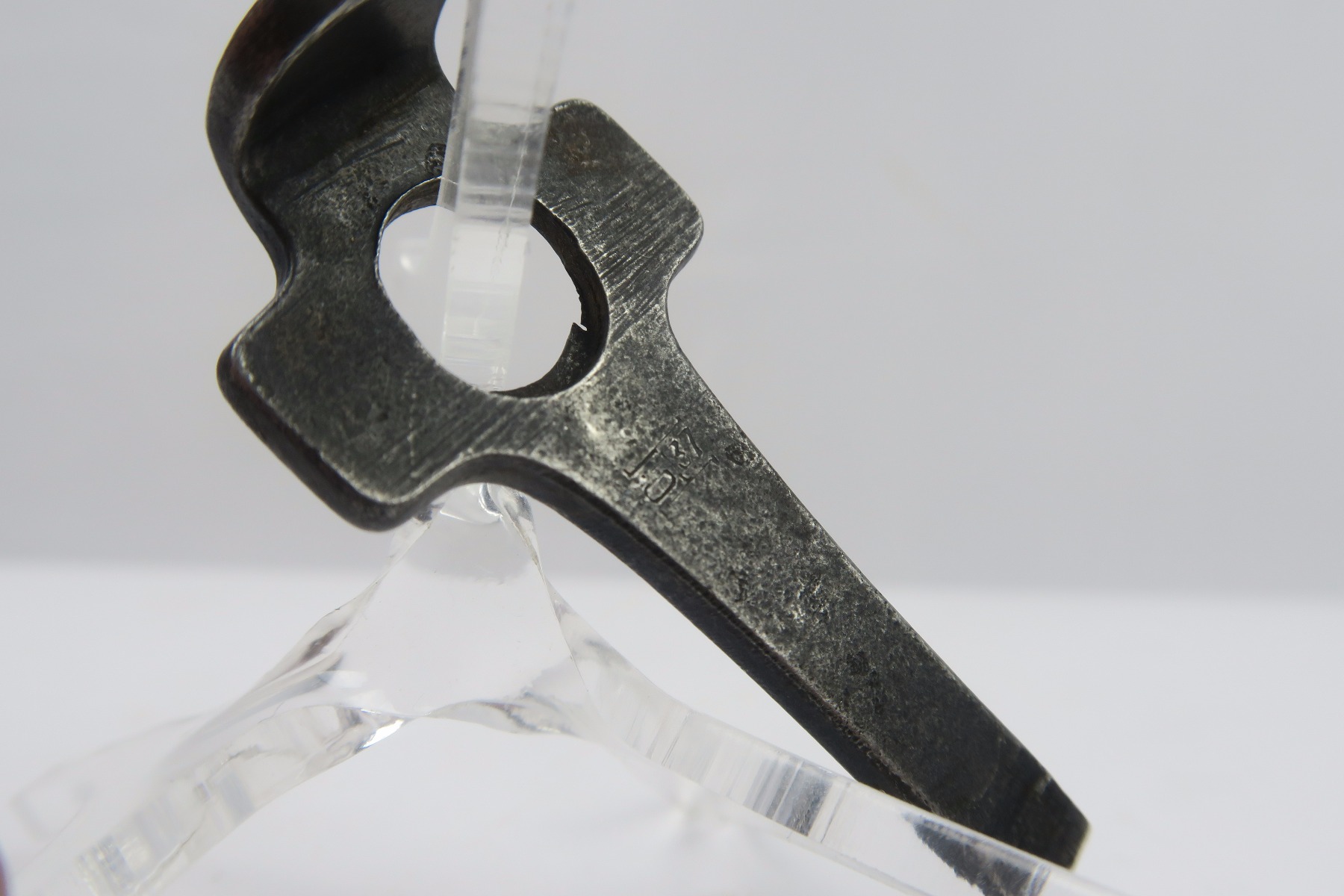 12/4/17 – This is an original 1934 production, scarce Luger tool. The tool is stamped with a faint (yet completely original) “O/37” stamp. The backside of the tool is stamped “1177” which is a unit stamp or serial number (we’re not sure). The tool is in great shape with only some minor use/aging wear and light rust discoloration. Guaranteed original and authentic.